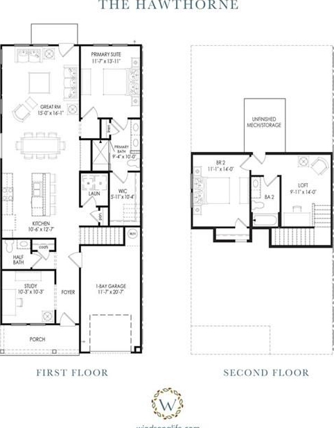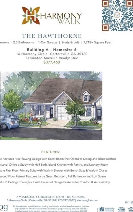Welcome to Windsong's newest townhome community in Cartersville! All homes offer the primary bedroom on the main floor, with thoughtfully crafted, open floorplans and quality finishes. This end unit Hawthorne has a secondary bedroom and full bath on the main level, a wonderful island kitchen with soft close cabinet doors opening to the large dining area and great room. The inviting owner's suite features a large low-threshold shower with bench seat, designer tile floor and walls with shampoo niche. Second floor features large guest bedroom, full bathroom and loft space for second living area. 9' ceilings throughout the main level. Insulated garage doors, irrigation system - all of the top quality features you expect to find in a Windsong Community!