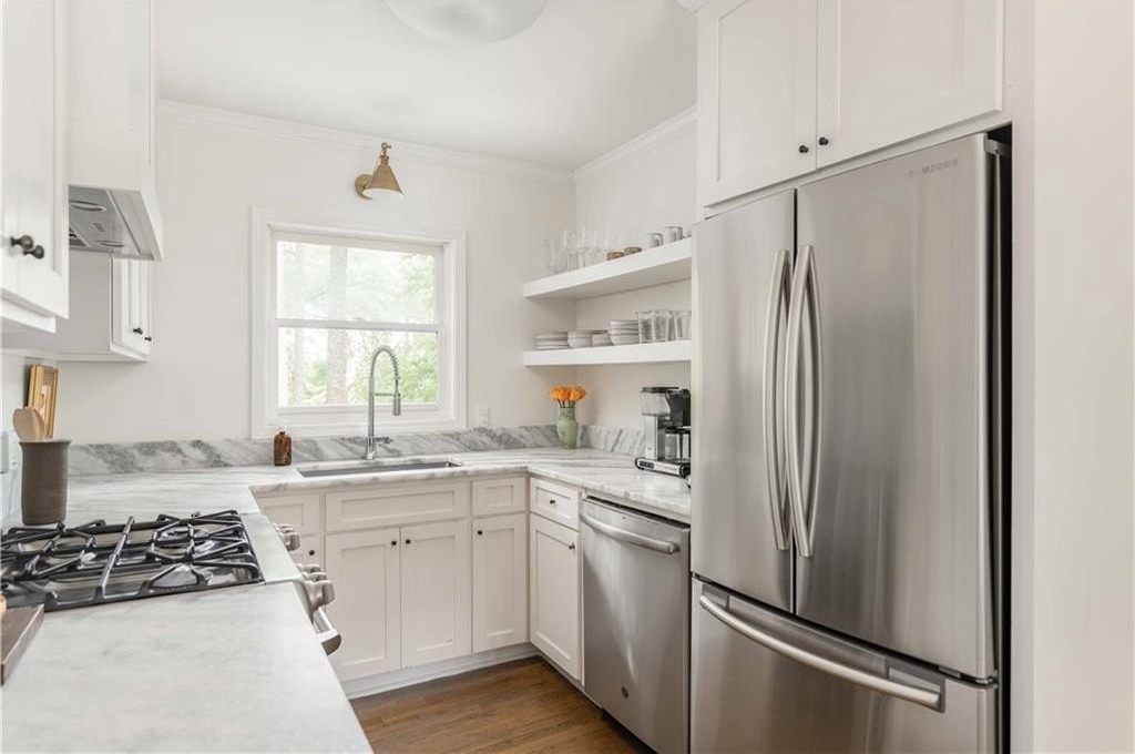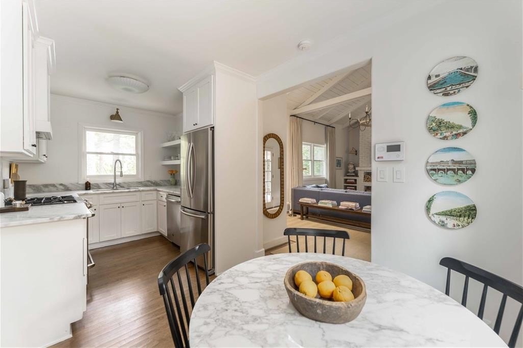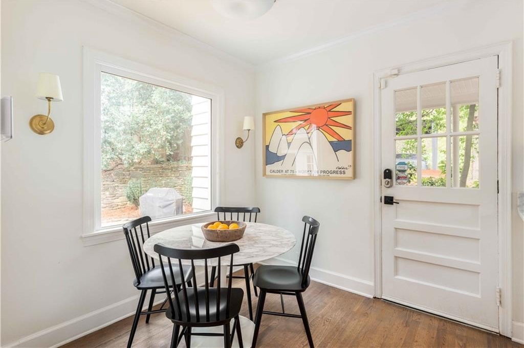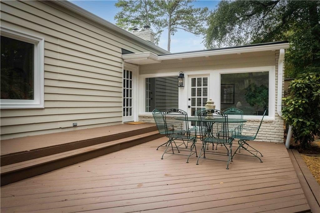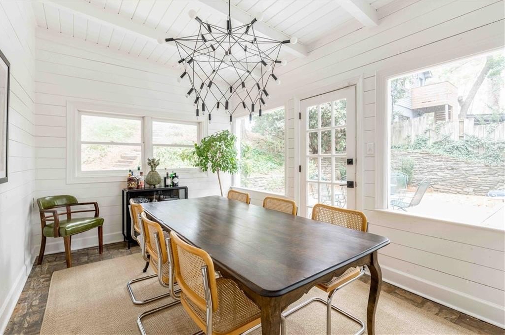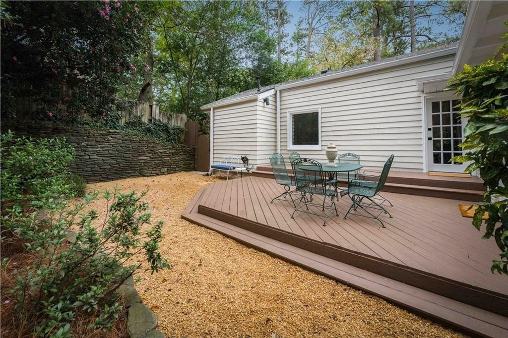 There’s something instantly captivating about 982 Cardova Drive—a home that feels as though it were lifted from the pages of Architectural Digest, yet lives with the ease and comfort of a modern storybook cottage. Nestled in highly sought-after Martin Manor, this 1950 charmer has been artfully reimagined, blending timeless character with thoughtful, designer-curated style. Inside, the vaulted, beamed ceiling in the family room makes a stunning first impression—an architectural centerpiece that feels both dramatic and inviting. A second living area just beyond the family room offers versatility and charm, easily serving as a dining space or cocktail lounge. Off the dining area, a door opens to the backyard, where you’ll find a newly stained deck that expands the home’s entertaining footprint and overlooks a large, private backyard—perfect for al fresco dinners, morning coffee, or fall celebrations. Featuring carefully chosen details that make everyday living feel elevated, the renovated kitchen showcases classic marble countertops, open shelving, stainless-steel appliances, a gas range, and a cozy breakfast nook. Flawless flow connects these spaces beautifully, making it ideal for hosting—from intimate dinners to lively gatherings. Down the hall, a touch of wallpaper adds warmth and personality, while two bedrooms share a timelessly updated bathroom accented by a marble-topped vanity, subway-tiled shower, and a linen closet for extra storage. One of the guest bedroom closets has been cleverly converted into a desk area, perfectly suited for working from home. Laundry is conveniently located in the hallway, and a one-car carport adds practicality without compromising curb appeal. Recent updates bring peace of mind and lasting value: a new roof, gutters, and water heater (all completed in 2021), plus a new HVAC system installed in 2020. Beyond its charm, this home offers unbeatable convenience. Martin Manor is one of Atlanta’s most connected neighborhoods, providing easy access to Buckhead, Midtown, and every corner of the city. Local favorites like Taqueria del Sol and Little Bangkok are just moments away, with parks, trails, and city amenities close by. Charming, elevated, and entirely one-of-a-kind—982 Cardova Drive is more than a home. It’s a place to fall in love, to gather, and to make memories for years to come.