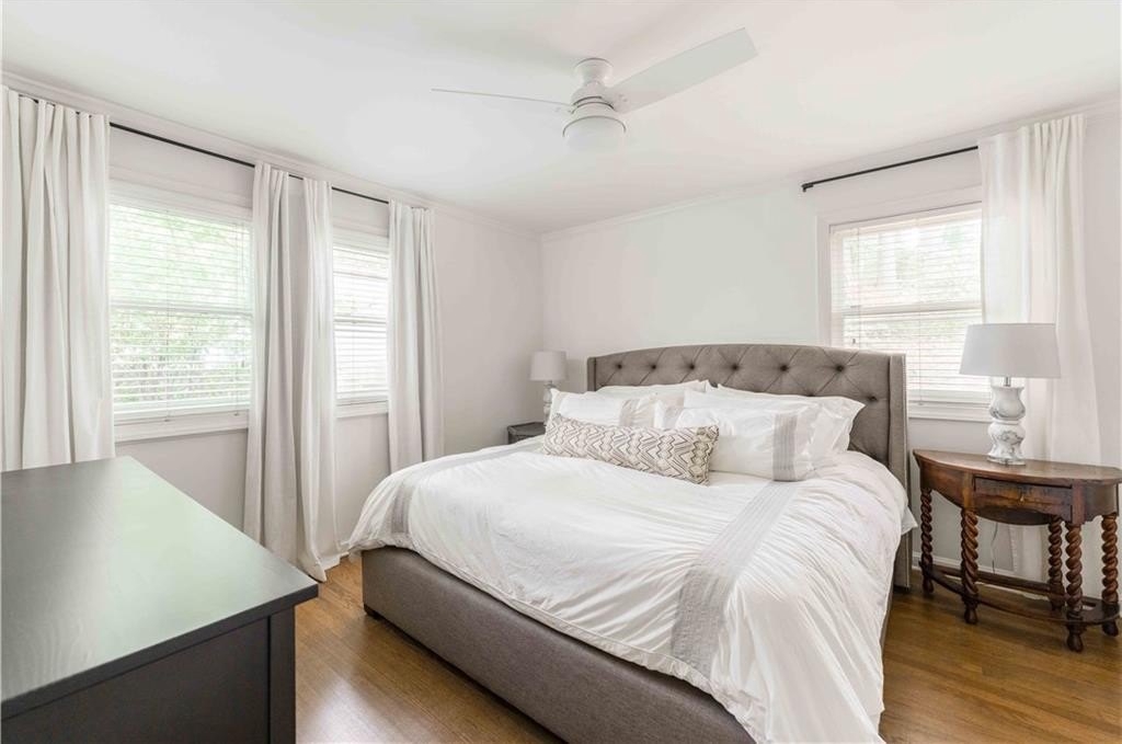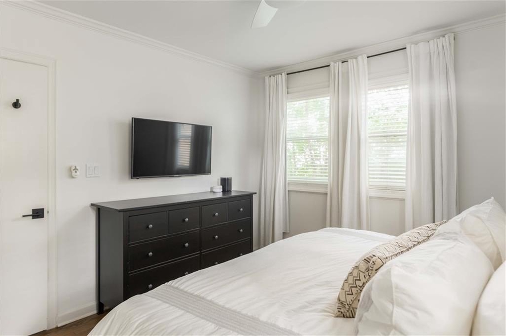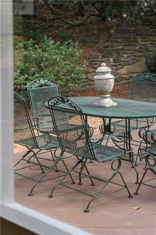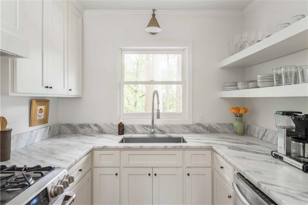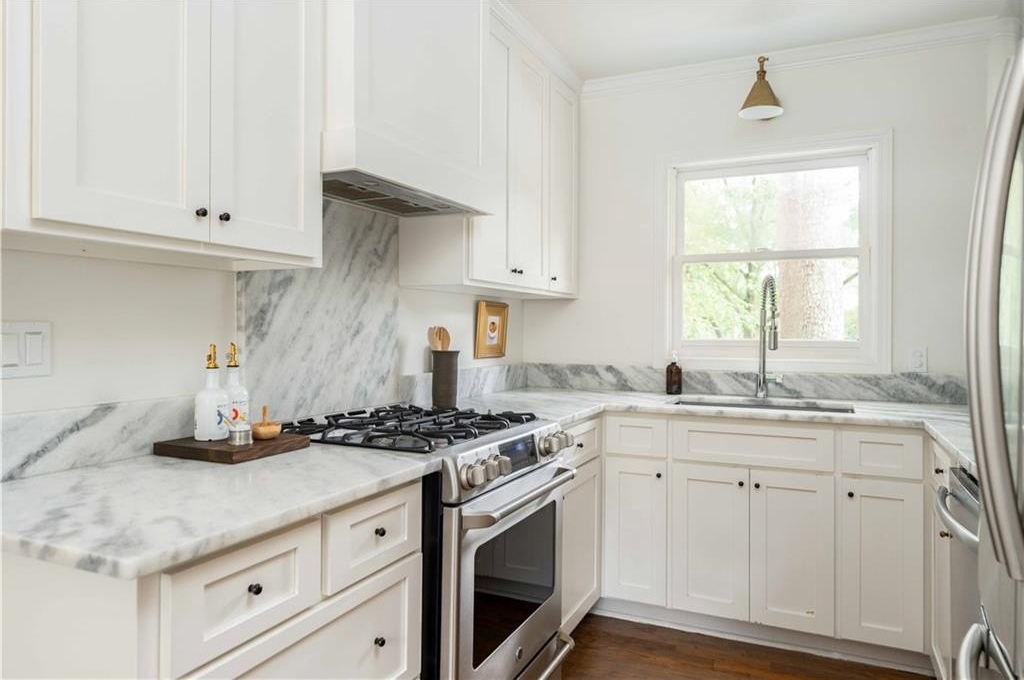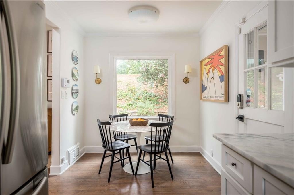 There’s something instantly captivating about 982 Cardova Drive—a home that feels as though it were lifted from the pages of Architectural Digest, yet lives with the ease and comfort of a modern storybook cottage. Nestled in highly sought-after Martin Manor, this 1950 charmer has been artfully reimagined, blending timeless character with thoughtful, designer-curated style. Inside, the vaulted, beamed ceiling in the family room makes a stunning first impression—an architectural centerpiece that feels both dramatic and inviting. A second living area just beyond the family room offers versatility and charm, easily serving as a dining space or cocktail lounge. Off the dining area, a door opens to the backyard, where you’ll find a newly stained deck that expands the home’s entertaining footprint and overlooks a large, private backyard—perfect for al fresco dinners, morning coffee, or fall celebrations. Featuring carefully chosen details that make everyday living feel elevated, the renovated kitchen showcases classic marble countertops, open shelving, stainless-steel appliances, a gas range, and a cozy breakfast nook. Flawless flow connects these spaces beautifully, making it ideal for hosting—from intimate dinners to lively gatherings. Down the hall, a touch of wallpaper adds warmth and personality, while two bedrooms share a timelessly updated bathroom accented by a marble-topped vanity, subway-tiled shower, and a linen closet for extra storage. One of the guest bedroom closets has been cleverly converted into a desk area, perfectly suited for working from home. Laundry is conveniently located in the hallway, and a one-car carport adds practicality without compromising curb appeal. Recent updates bring peace of mind and lasting value: a new roof, gutters, and water heater (all completed in 2021), plus a new HVAC system installed in 2020. Beyond its charm, this home offers unbeatable convenience. Martin Manor is one of Atlanta’s most connected neighborhoods, providing easy access to Buckhead, Midtown, and every corner of the city. Local favorites like Taqueria del Sol and Little Bangkok are just moments away, with parks, trails, and city amenities close by. Charming, elevated, and entirely one-of-a-kind—982 Cardova Drive is more than a home. It’s a place to fall in love, to gather, and to make memories for years to come.