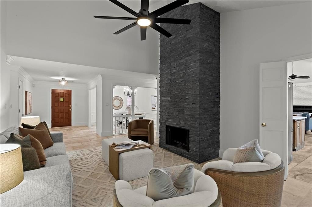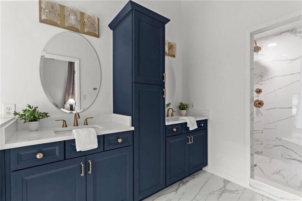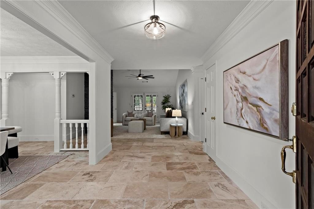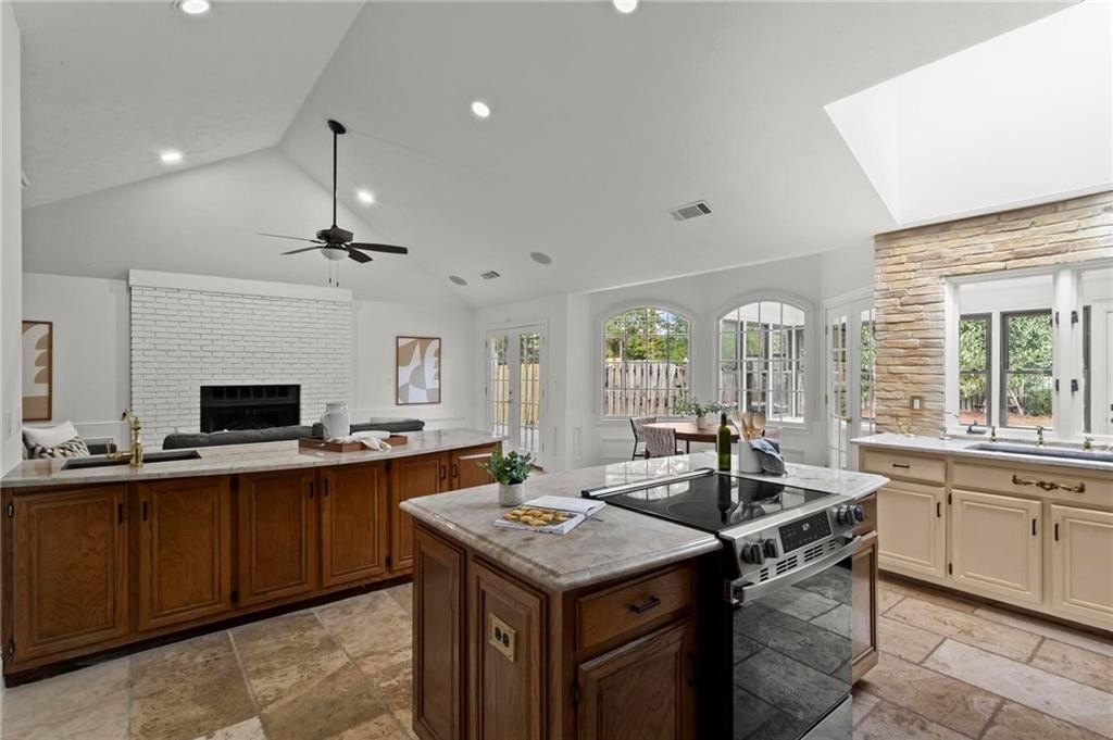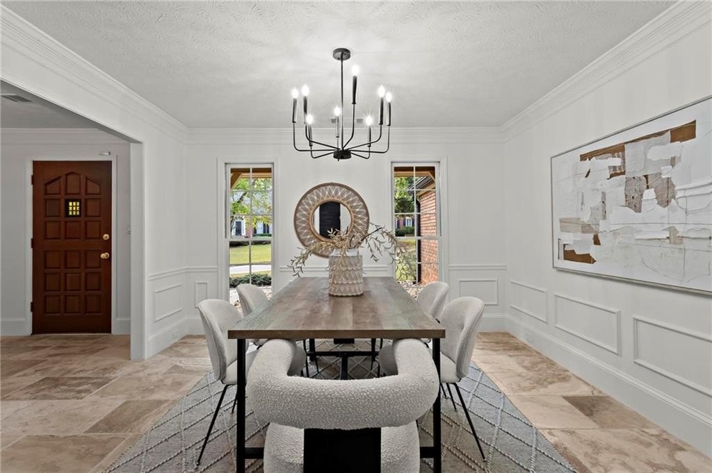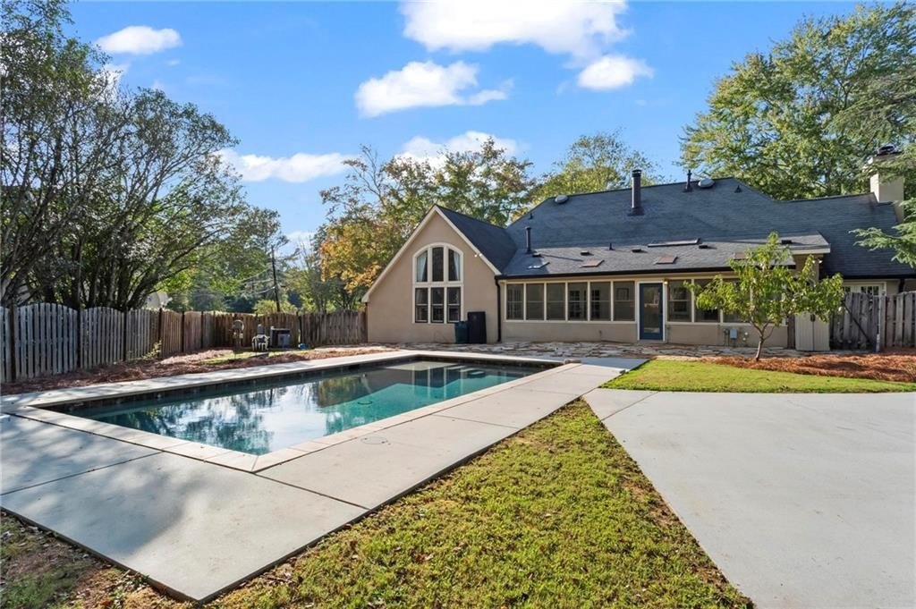 Experience timeless elegance in this stunning English Tudor-style 5-bedroom, 5-bathroom ranch home with a fully finished basement, situated on a spacious corner lot in the prestigious Peachtree Station neighborhood of Peachtree Corners. This beautifully maintained residence features a brand new Gunite saltwater pool and a thoughtfully updated interior, blending classic Tudor charm with modern convenience. The expansive master suite offers vaulted ceilings and a spa-like, fully renovated bathroom with a luxurious double shower. The oversized kitchen is a true centerpiece, featuring rich brick accents, stone countertops, a cozy keeping room with a fireplace, and a sunlit breakfast area. The newly finished terrace level offers full in-law or Au Pair suite potential with a full kitchen, gorgeous bathroom, bedroom, laundry hookups, private exterior entrance, and a chair lift for added accessibility. Additional highlights include a bright sunroom, vaulted ceilings throughout, a HUGE dining room open to the family room, an RV parking pad (perfect for recreational vehicles or outdoor play), and a spacious front yard. Located in one of Peachtree Corners' most active and friendly swim/tennis communities—with optional membership and no mandatory HOA—this home offers an unbeatable lifestyle. Just steps from the 223-acre Simpsonwood Park and the Peachtree Corners YMCA, and minutes from the newly revamped Forum, Town Center, fantastic dining, shopping, and lively summer concerts. Zoned for top-rated schools, including Simpson Elementary, Picnkneyville Middle, and Paul Duke STEM, with prestigious private schools nearby. This is more than a home—it's a lifestyle. Don’t miss your chance to own one of the finest homes in Peachtree Corners. Schedule your private tour today!