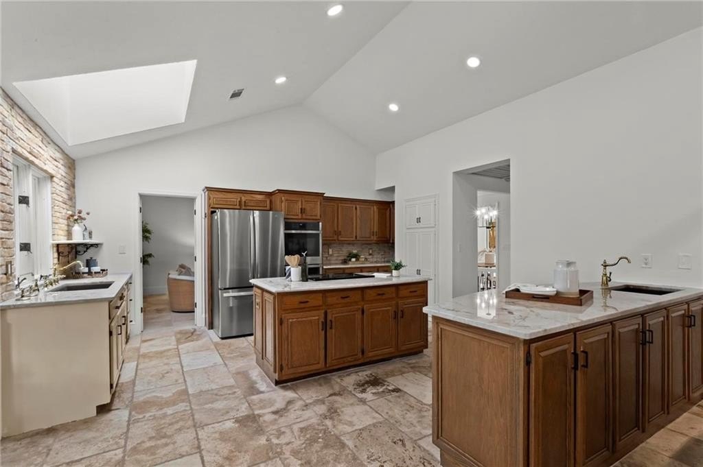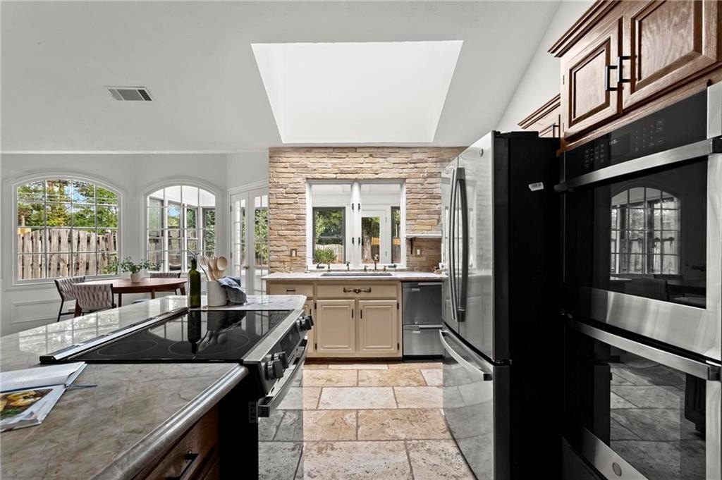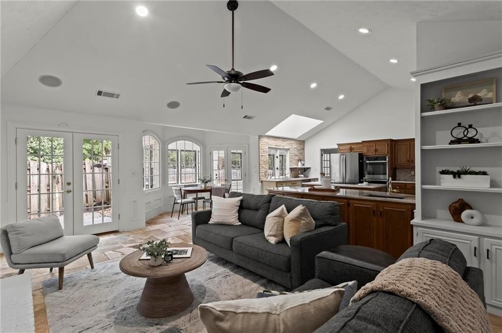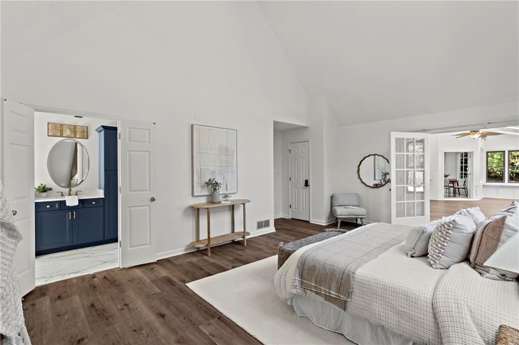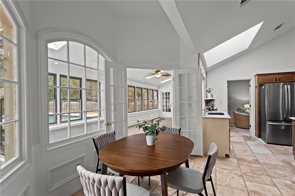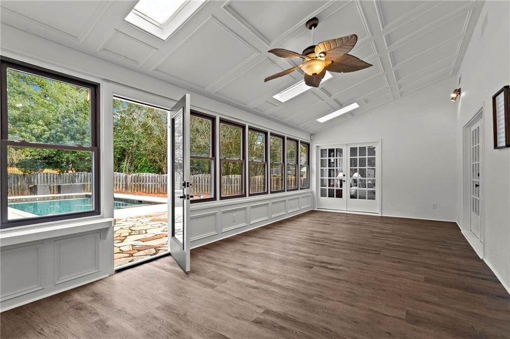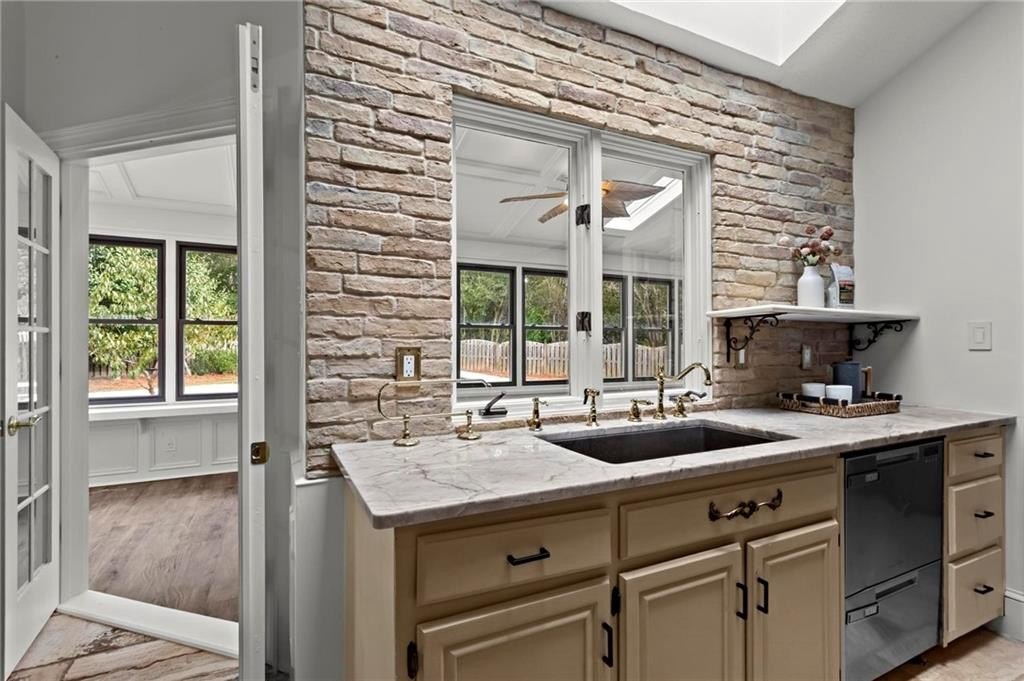 Experience timeless elegance in this stunning English Tudor-style 5-bedroom, 5-bathroom ranch home with a fully finished basement, situated on a spacious corner lot in the prestigious Peachtree Station neighborhood of Peachtree Corners. This beautifully maintained residence features a brand new Gunite saltwater pool and a thoughtfully updated interior, blending classic Tudor charm with modern convenience. The expansive master suite offers vaulted ceilings and a spa-like, fully renovated bathroom with a luxurious double shower. The oversized kitchen is a true centerpiece, featuring rich brick accents, stone countertops, a cozy keeping room with a fireplace, and a sunlit breakfast area. The newly finished terrace level offers full in-law or Au Pair suite potential with a full kitchen, gorgeous bathroom, bedroom, laundry hookups, private exterior entrance, and a chair lift for added accessibility. Additional highlights include a bright sunroom, vaulted ceilings throughout, a HUGE dining room open to the family room, an RV parking pad (perfect for recreational vehicles or outdoor play), and a spacious front yard. Located in one of Peachtree Corners' most active and friendly swim/tennis communities—with optional membership and no mandatory HOA—this home offers an unbeatable lifestyle. Just steps from the 223-acre Simpsonwood Park and the Peachtree Corners YMCA, and minutes from the newly revamped Forum, Town Center, fantastic dining, shopping, and lively summer concerts. Zoned for top-rated schools, including Simpson Elementary, Picnkneyville Middle, and Paul Duke STEM, with prestigious private schools nearby. This is more than a home—it's a lifestyle. Don’t miss your chance to own one of the finest homes in Peachtree Corners. Schedule your private tour today!