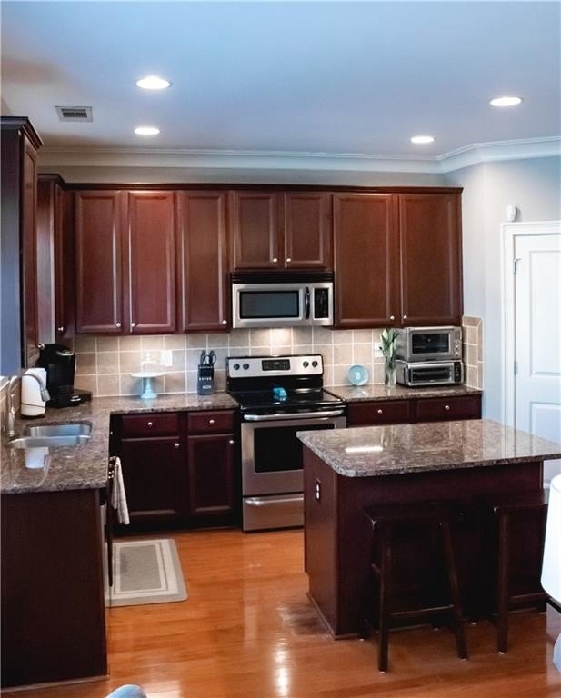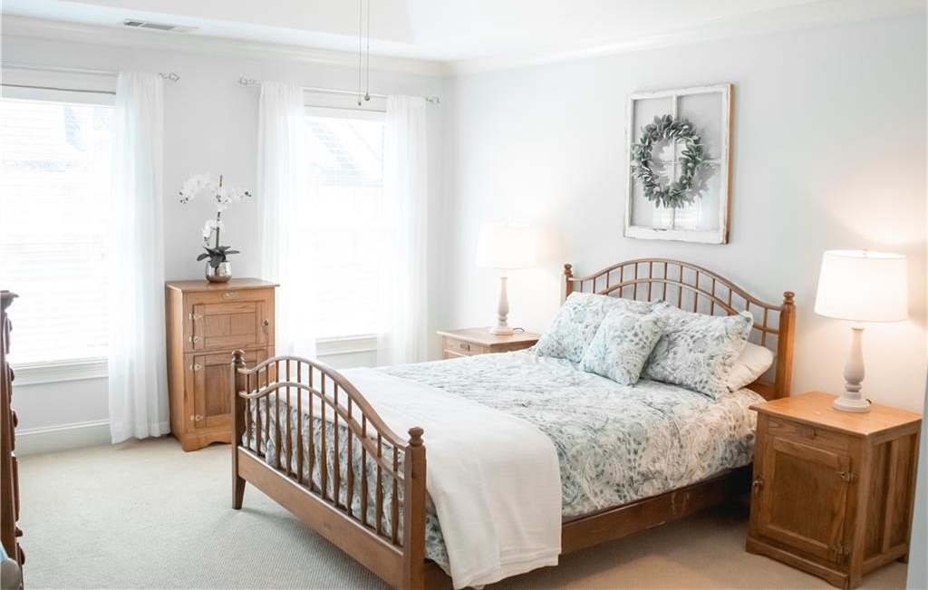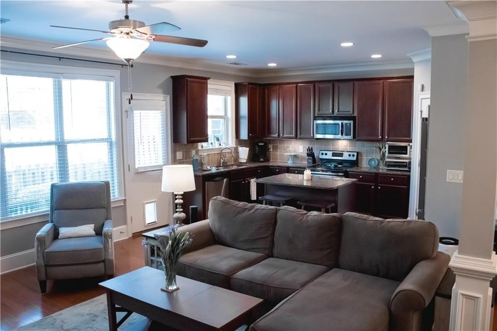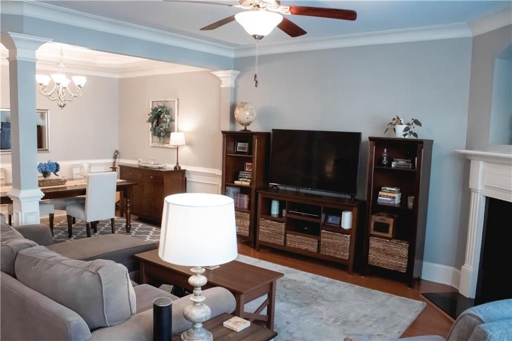 Elegant Brick Craftsman in the Heart of Peachtree Corners! Just minutes from The Forum, this home blends timeless design with everyday convenience in one of Metro Atlanta's most desirable communities. Step inside to a move-in ready interior with gleaming hardwood floors, soaring 9' ceilings, and detailed architectural finishes including custom moldings, designer columns, and tray ceilings. The open-concept layout flows effortlessly, centered around a cozy fireplace and filled with natural light. Gourmet Kitchen Designed for both function and style, the chef's kitchen features Granite countertops, Glazed 42" cherry cabinetry, Stainless steel appliances, center island with bar seating, ideal for entertaining. Seamless flow into the family and dining rooms. The king-sized primary suite offers a peaceful escape with a tray ceiling, spa-inspired bath featuring dual vanities, a soaking tub, a tiled shower, and a spacious walk-in closet. Roomy guest suite with private patio, tray ceilings and crown molding. Fenced patio perfect for summer gatherings or quiet evenings outdoors Enjoy the ease of HOA-covered amenities ($400/month), including exterior structural maintenance, Landscaping ,and Termite protection. HVAC is only 1 year old and the roof is less than 3 years old. Unbeatable Location, moments from premier dining, shopping, and entertainment at The Forum, with easy access to major highways for a quick commute throughout Metro Atlanta.