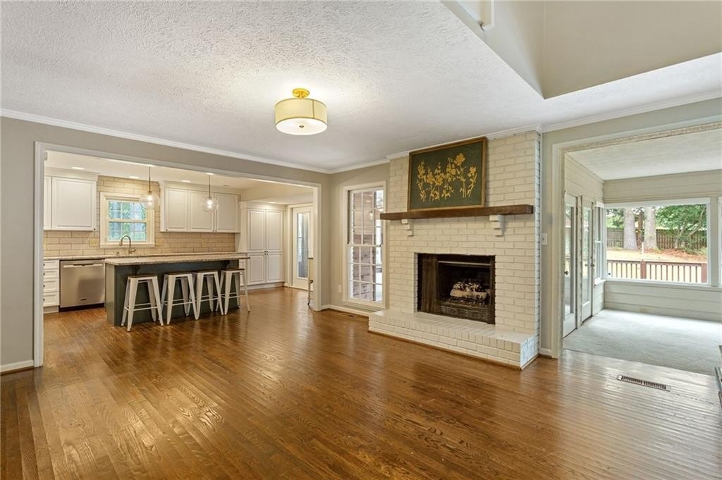 As you enter, a welcoming foyer with hardwood floors and crown molding sets the tone for refined everyday living. To your left lie formal living and dining rooms, perfect for greeting guests or hosting holiday gatherings. Ahead, the cozy fireside family room draws you in, warm and welcoming.