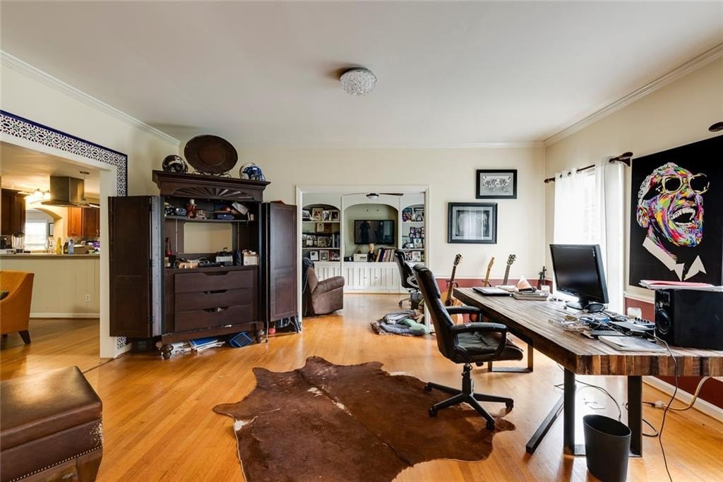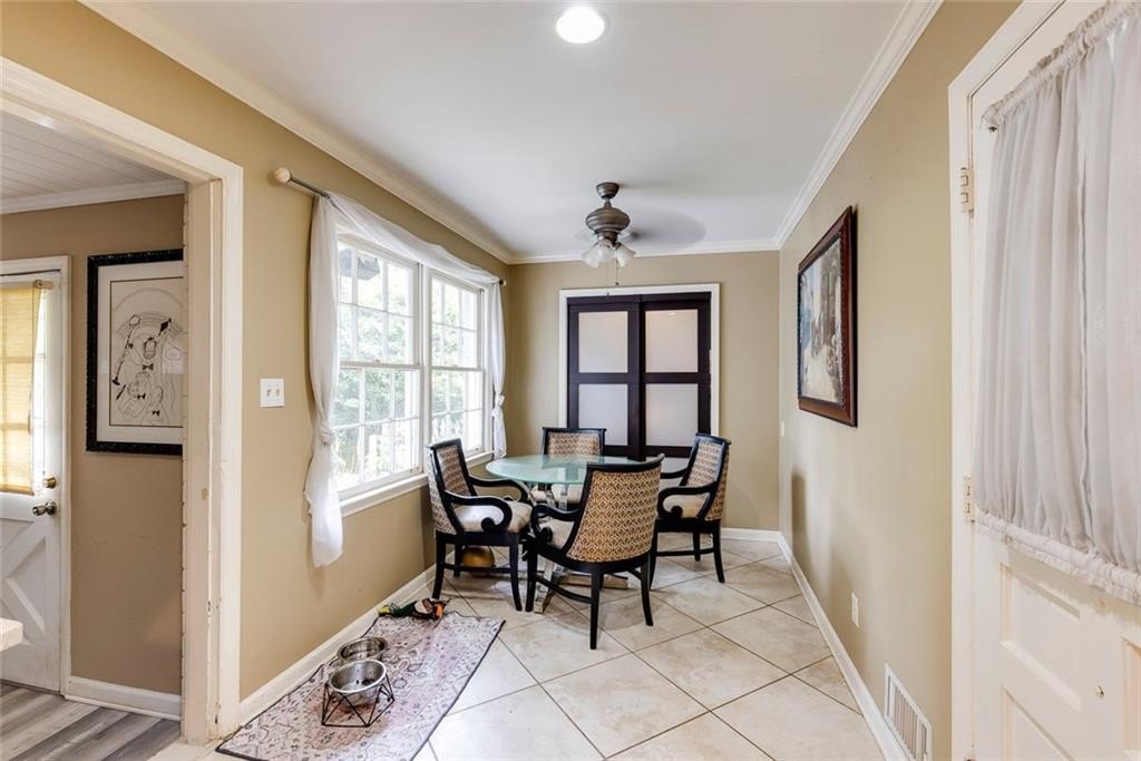 Outdoor living includes a deck, covered porch, and fenced yard surrounded by mature trees. Don’t miss the opportunity to call this classic Sandy Springs gem your next home!