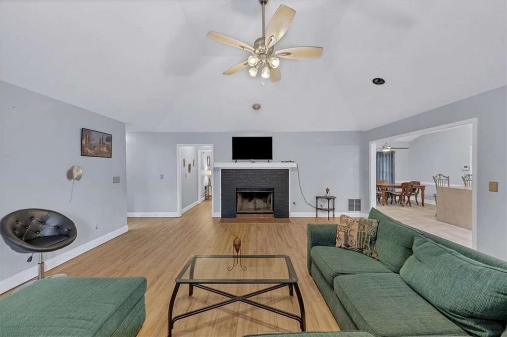 Welcome home to this beautifully maintained ranch-style retreat nestled in a quiet, established subdivision! If you love privacy and prefer a stepless layout, this is the perfect match. As you arrive, you'll be greeted by a long driveway ideal for accommodating multiple cars and you can't miss the charming covered front porch that extends the length of the home, perfect for morning coffee or relaxing outdoors. Inside, gleaming hardwood floors lead you into the inviting family room featuring vaulted ceilings, recessed lighting, and seamless flow into the spacious eat-in kitchen with granite countertops and a bay window. Just off the family room, the large enclosed sunroom with built-in shelving provides additional space for entertaining or unwinding. The oversized primary suite boasts two large closets, a spa-like ensuite with dual sinks, and a soaking tub-your personal retreat after a long day. Three additional generously sized bedrooms offer plenty of space for family or guests, with one perfectly suited for a home office or formal dining room. French doors open to a large extended patio overlooking the private backyard perfect for gatherings or quiet evenings outdoors. This home truly blends peace and convenience, located just minutes from shopping, dining, and major highways. Don't miss your chance to call this tranquil gem your new home! 1 year home warranty. Motivated seller!