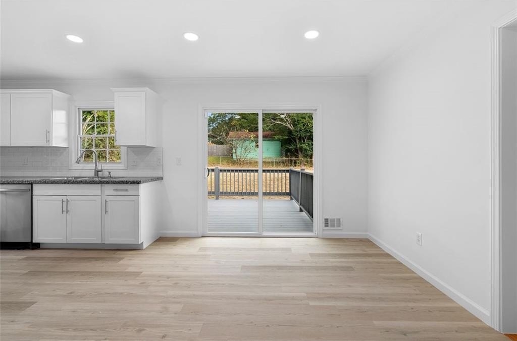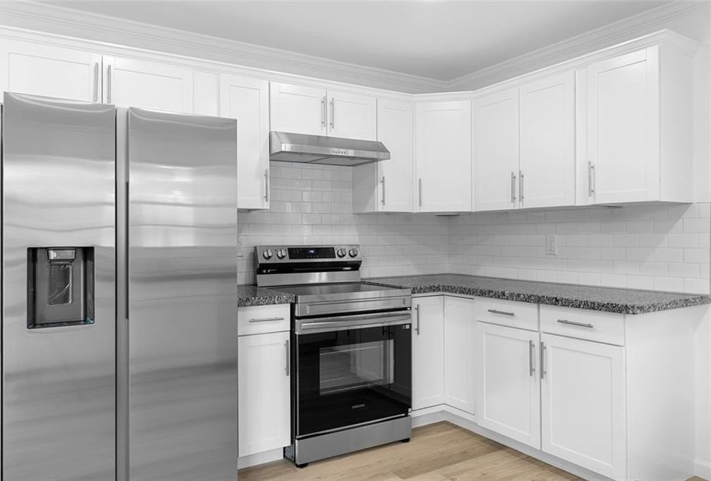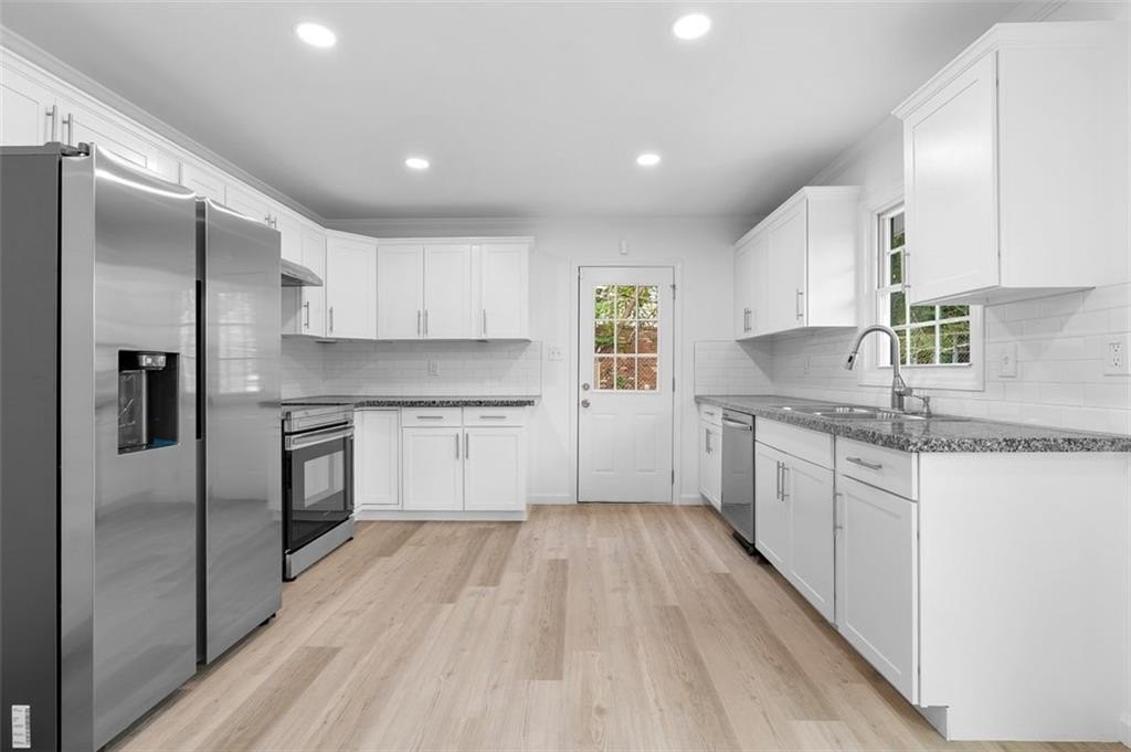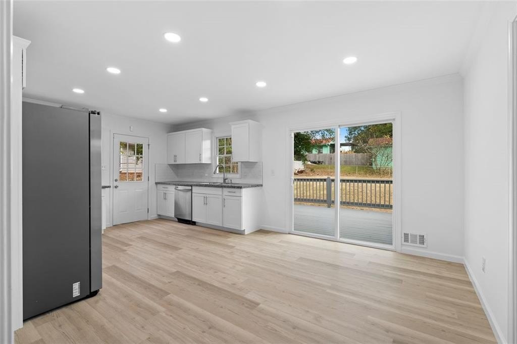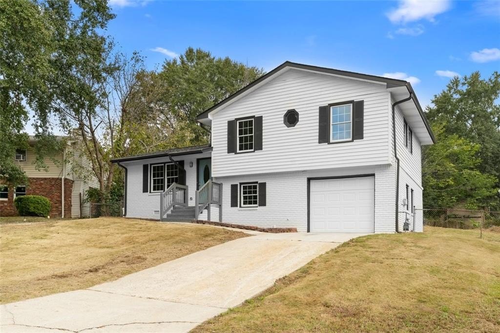 Discover your dream home in this beautifully updated split-level gem, boasting 4 spacious bedrooms and 3.5 bathrooms—all without the burden of HOA fees! Step into a modern kitchen that's a chef's delight, featuring sleek white shaker-style cabinets, luxurious granite countertops, and top-of-the-line stainless steel appliances, including a refrigerator, dishwasher, and stove. The inviting breakfast/dining area floods with natural light and offers stunning views of the expansive new deck—perfect for morning coffee or evening gatherings.