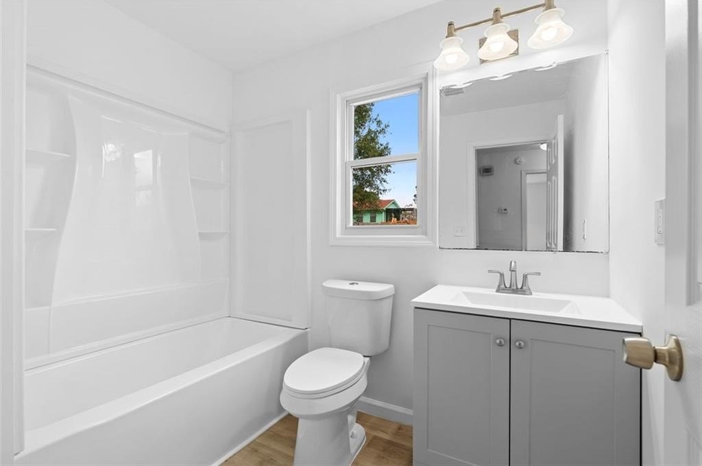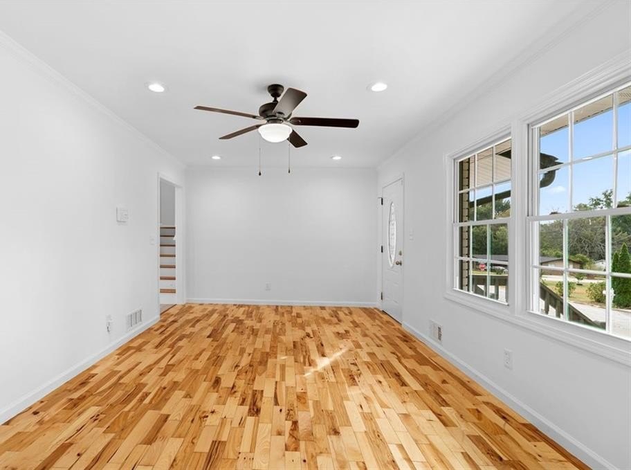Venture outdoors to your private oasis: a fully fenced backyard with ample space for pets to roam, kids to play, or hosting unforgettable barbecues. Upstairs, unwind in the generous master suite, complemented by two elegantly updated bathrooms and gleaming new hardwood floors throughout for that fresh, timeless appeal.