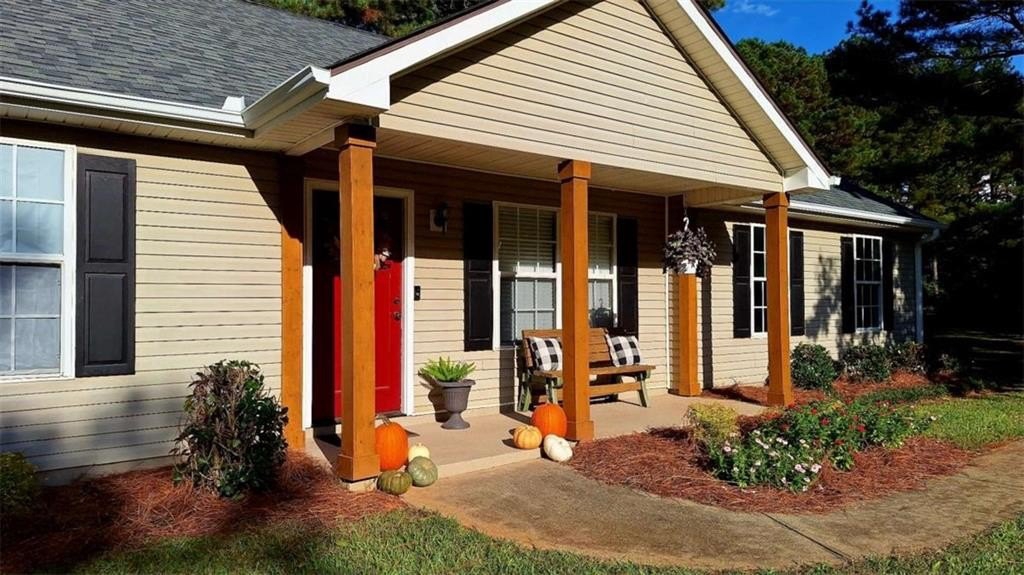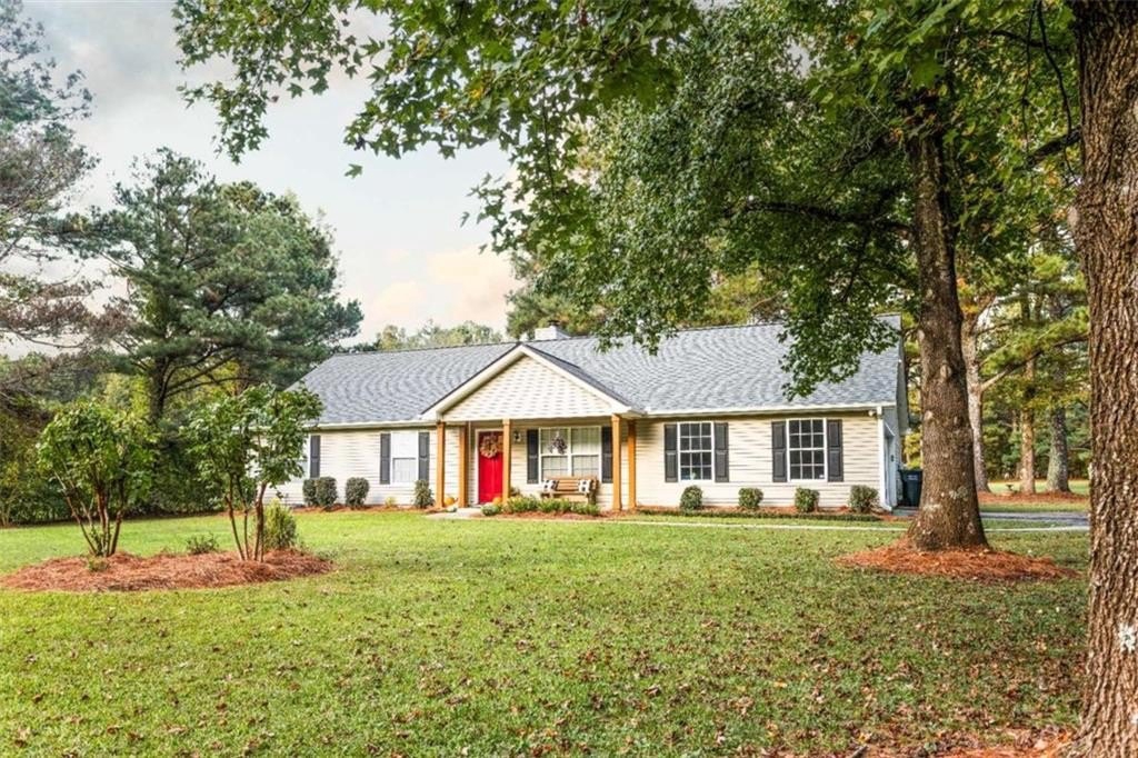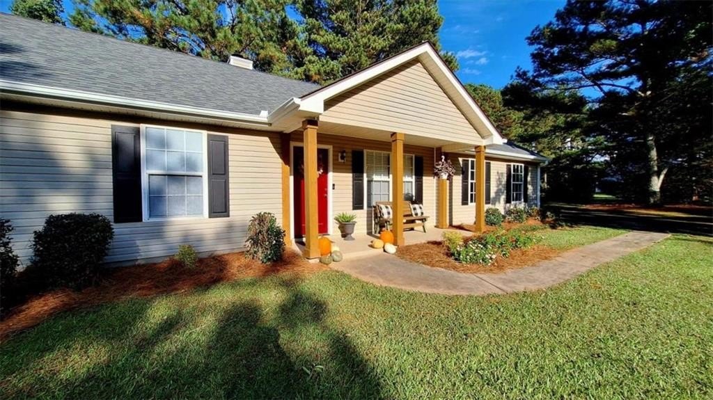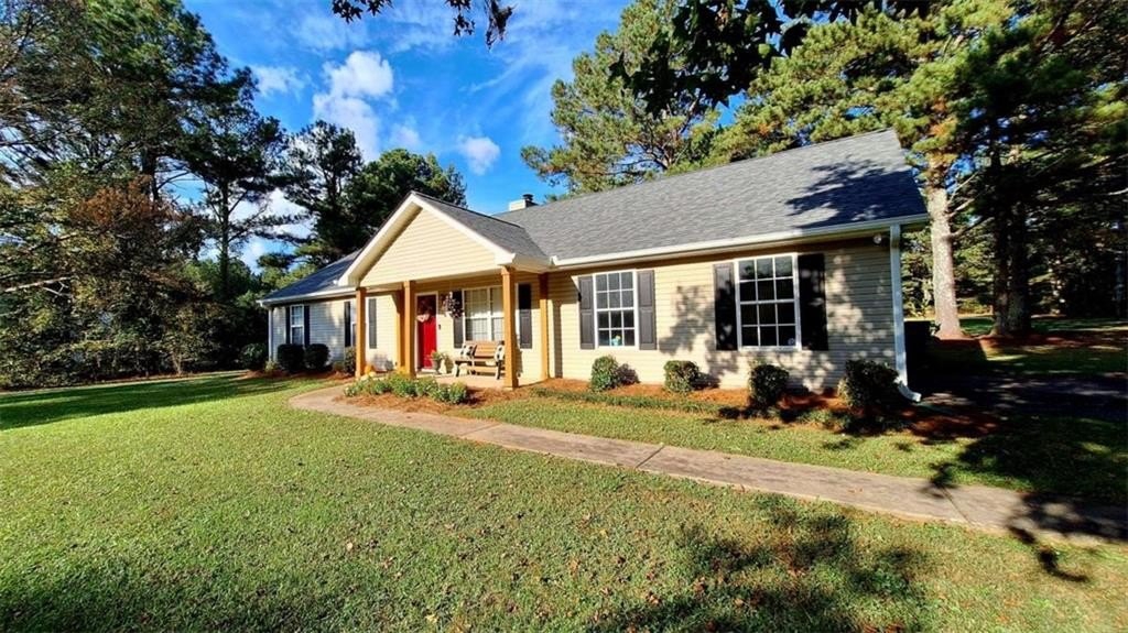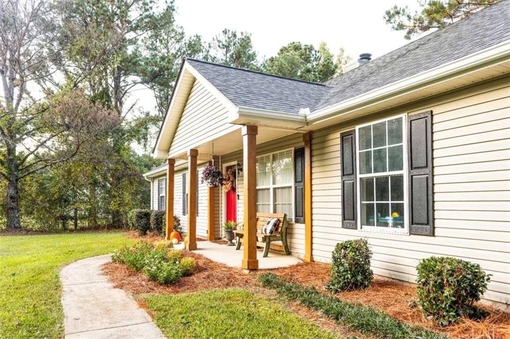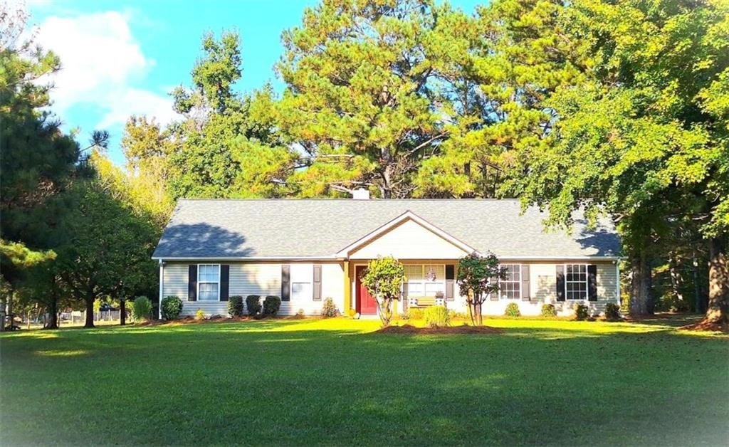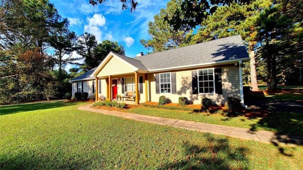 Welcome home! This 3 bedroom /2 bath ranch style home w/2 car side entry garage, sits on 2 level acres in the country. Not in a subdivision. No covenants or HOA fee's. Plenty of room to park your RV, Boat, trailers, ATV's, equipment etc. Hall bath with quartz vanity top. Owner's suite with seperate shower & garden tub and quartz vanity top. Kitchen with white quartz countertops, a breakfast bar, table area w/sliding doors out to the covered patio. Entertain friends and family in this huge backyard. Gather around the firepit area for smores. Also, a storage building sits further back. E-Z access to HWY 78 and 316. Just mins to Athens area. *This property is located in a USDA eligible zone for 100% financing.