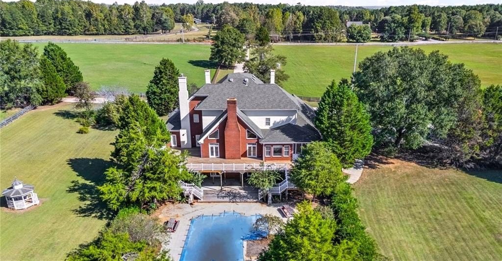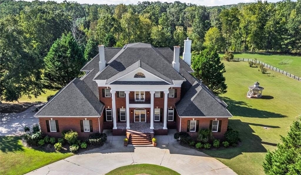 Live the Equestrian Dream. Beautiful Fox Run Farms is located in a quiet all-farm corridor of upscale farms, family farms and equestrian properties in Mansfield GA. For those seeking the "country-life" and charm of small-town living, yet quick accessibility to Athens, Atlanta, Aiken and Lake Oconee, this idyllic farm will capture your heart. WITH TWO RESIDENCES, this 47 acre equestrian estate holds endless possibilities, from a family compound, to a full-fledge equestrian center, a potential wedding/event venue, an income-producing property, as well as a fabulous long-term investment. The dual-entrance estate (farm/equestrian side) and (main residence entrance) hosts dual residences (main residence/farm residence) on the 47 picturesque acres of natural beauty, including a two-acre lake, rich established pastures, mature hardwoods, and a tranquil setting. The elegant iron-gated entrance invites you to the farm, followed by a picturesque 550 feet paved tree-lined drive, with a welcoming fountain enhancing the classic architecture of this brick beauty. Beautifully landscaped, there are breath-taking views of all the surrounding pastures and not a sound to be heard! Exhibiting timeless quality, the interior of this custom home is a lovely blend of "classic" (the gorgeous entry staircase) with 2025 "comfortable" (the open floorplan off the huge kitchen, the stone-stacked hearth in family room, the outdoors-in style featuring a brand new (huge) deck running the entire length of home). Perfect for entertaining and gathering, this open concept fills the home with light and overlooks the beautiful pool and gardens area. Dine al-fresco on the "Southern-living" screened porch off breakfast area, or entertain lavishly on the huge rear deck. The large kitchen features 6-burner gas stove, double ovens, wine fridge, center island, stone countertops and backsplash, beautiful mill-work and breakfast area. The primary suite on main level opens to rear deck, includes fireplace and oversized bath with a custom dress-in cedar closet. Two front-facing rooms ( one a formal dining, the second could make a lovely home office on main) complete the main-floor footprint. The second-level (with rear staircase) features a loft, and 4 additional bedrooms with large closets, two baths. The terrace level (2120 square feet) is partially-finished, stubbed for bath, has a safe room, beaucoup storage space, and opens to outdoor spaces ( shaded patio) then pool. With its own exterior entrances, this space could easily become an in-law suite or apartment for extended family. With an internationally-renowned trainer in the neighborhood, you and your horses can live happily ever after on this fabulous equestrian estate! Entirely fenced and cross-fenced, entirely FENCED road frontage, a 2 acre lake, 14-stall well-constructed barn (runouts and over-sized stalls), separate well for barn, two arenas (uncovered, sanded, lighted), equip storage, shavings shed, parking, separate farm entrance and separate drive corridor to home, numerous flat established pastures (some shaded), hay pastures, woods on property for trails, move-in ready for horses. A 2024 NEWLY- CONSTRUCTED immaculate 3 bedroom/2 bath residence on second story of barn, spacious, lovely and never-lived-in with views of pastures and horses. Pastures are established, well-drained and NO flood zone! Mansfield is located 45 miles from Athens, 48 miles from Atlanta, 55 miles from Macon and 125 miles from Aiken. Mansfield has the charm of a small town yet access to all the amenities and conveniences of a larger city; proximity to several parks and forests for trail riding, close to Lake Sinclair and 45 miles to Lake Oconee. It's quick access to I-20 offers the unique blend of peaceful country living, yet with quick access to metro counties, airports, etc. Fox Run farms is awaiting its new family, and is move-in ready for you, your horses, trainers, barn help, and extended family. Schedule your showing today.