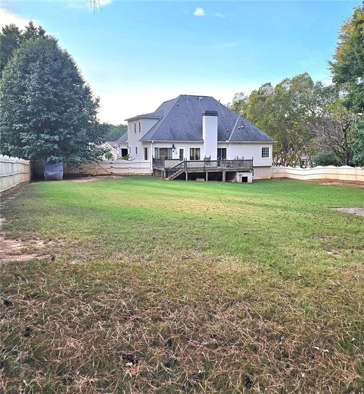 Welcome home to this newly renovated, spacious, well-maintained 5 bdrm/3.5 bath home located in the heart of Fayetteville with a Master on the Main. This home features an inviting entrance with gorgeous double doors, a two-story foyer leading to a formal living room or private office with oversized viewing windows, a formal dining room, and a separate family room with hardwood floors throughout the main level. The Kitchen offers Black and Stainless steel appliances, granite countertops, a gas cooktop with six burners, a walk-in pantry, an oversized island, a mini beverage bar, a double oven, a breakfast room, two dishwashers, and an open concept full view of the spacious Family Room with a fireplace and a beautiful custom accent wall. The main floor consists of the Master Suite with a large custom walk-in closet. This home boasts plenty of space with two more levels of living and entertaining space, and a large private fenced-in back yard with a large deck. Located minutes from dining, shopping, medical and Trilith Studios!