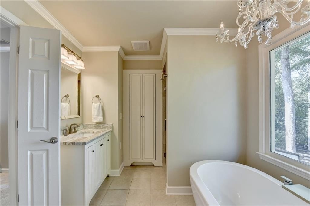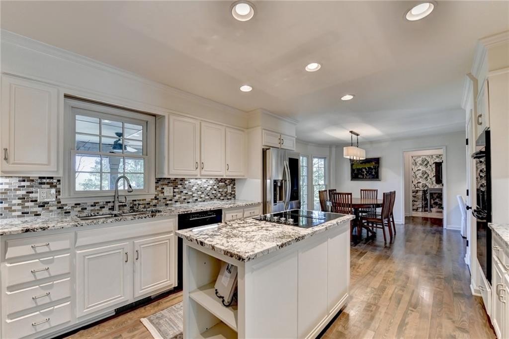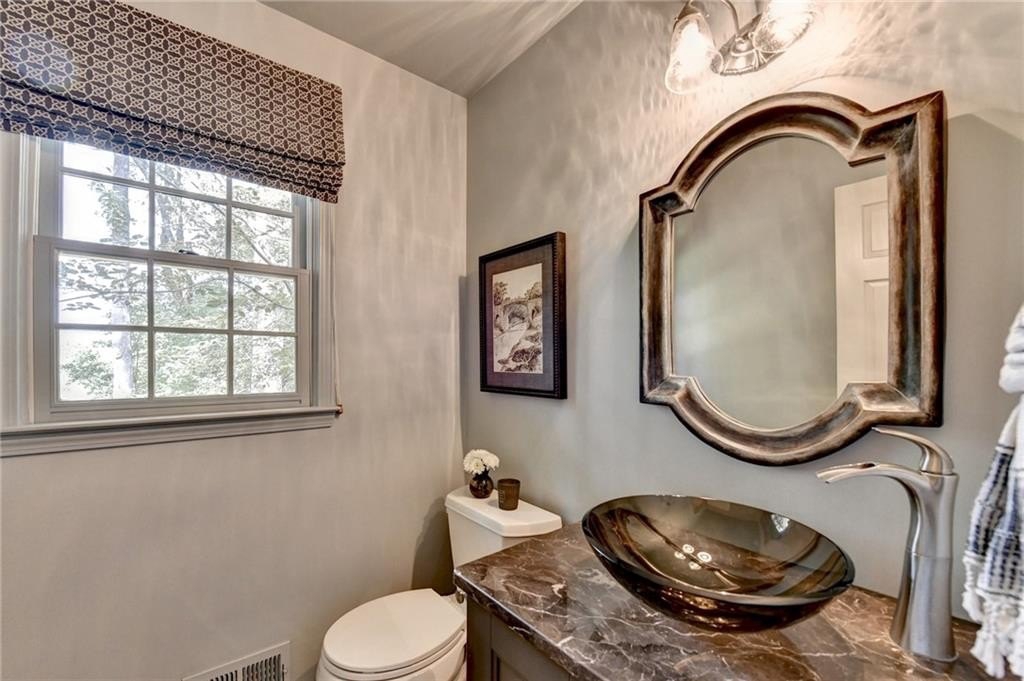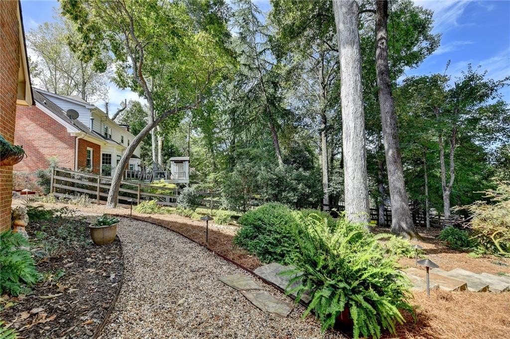 This beautifully transformed home is waiting for you – lovingly updated with soft neutral paint colors, elegant finishes, and thoughtful lighting in every room. This home feels warm and inviting from the moment you walk in. One of the most impressive features is the outdoor space, where a spacious covered porch overlooks a backyard with extensive stonework, a winding stone pathway, and a cozy firepit perfect for gathering. Other recent upgrades include a new driveway with brick inlay and Jeldwen windows throughout. Inside, hardwood floors lead from the foyer to a dining room and a den, both with elegant molding. The den features French doors and can also work as an office. Beyond the foyer you will find an eat-in kitchen with fantastic views of the backyard. This Chef’s kitchen has hardwood flooring, beautiful stone countertops, pantry closet, center island, double self-cleaning convection ovens, and a built-in desk. The kitchen flows into a vaulted Great Room with a floor-to-ceiling brick fireplace and direct access to the covered porch and backyard. The spacious main floor laundry room features travertine flooring, a linen closet, and a sink. The updated powder room has upgraded tile flooring and a vanity with a granite countertop and vessel sink. Upstairs you will find hardwood flooring throughout the hallway plus a separate linen closet. The Primary bedroom features a tray ceiling and dual custom closets. The remodeled Primary bath has a vaulted ceiling, porcelain tile flooring, a beautiful soaking tub, a separate shower, separate vanities with granite countertops, and a linen closet. Three secondary bedrooms all have walk-in closets, one with a custom closet. The shared hall bathroom has a granite countertop. A back staircase adds extra convenience. The unfinished terrace level is ready for your vision. The owners created custom design plans for a future remodel and are happy to share them. River Station is an active swim/tennis community located along the Chattahoochee River with 4 lighted tennis courts, 3 pickleball courts, a pool, a playground, and year-round community events. Top rated schools include Simpson Elementary and Paul Duke STEM High and this home is convenient to a number of private schools including Wesleyan, Greater Atlanta Christian, Cornerstone Christian, Providence, and Davis Academy. The city of Peachtree Corners has it all with fantastic shopping and dining, parks along the Chattahoochee River, and concerts and community events throughout the year. Come see all this home has to offer.