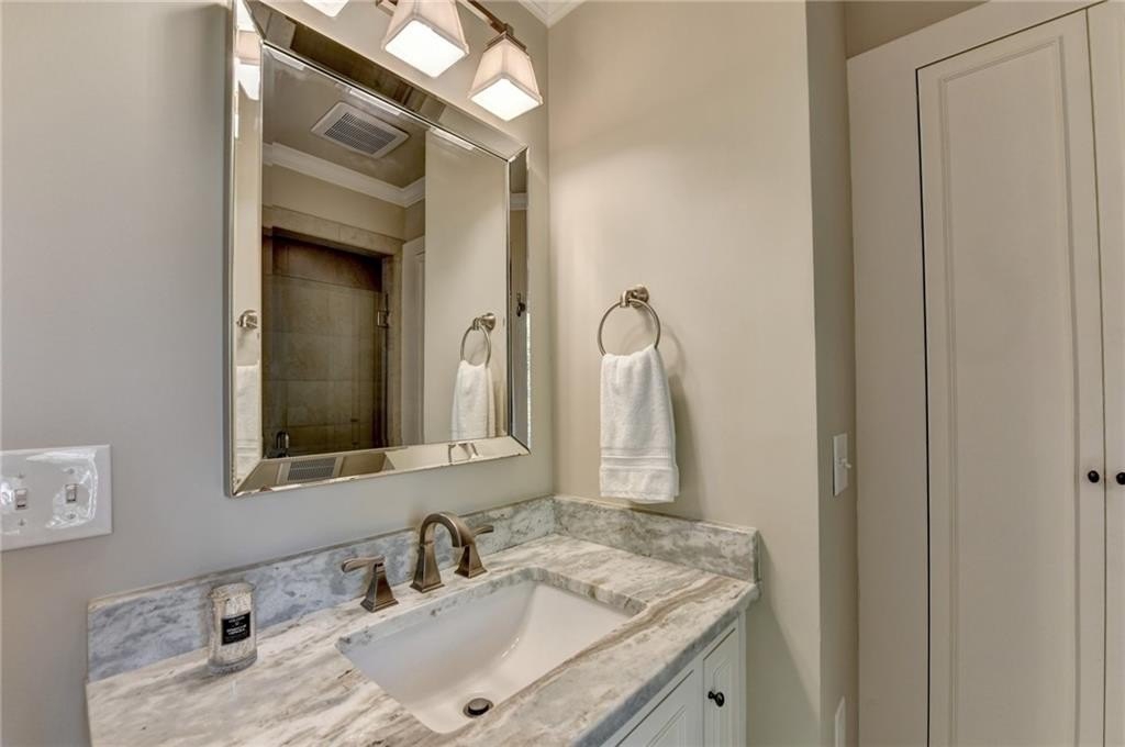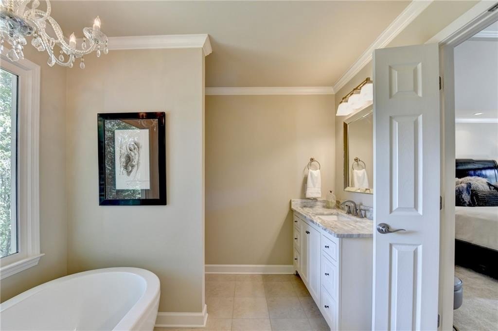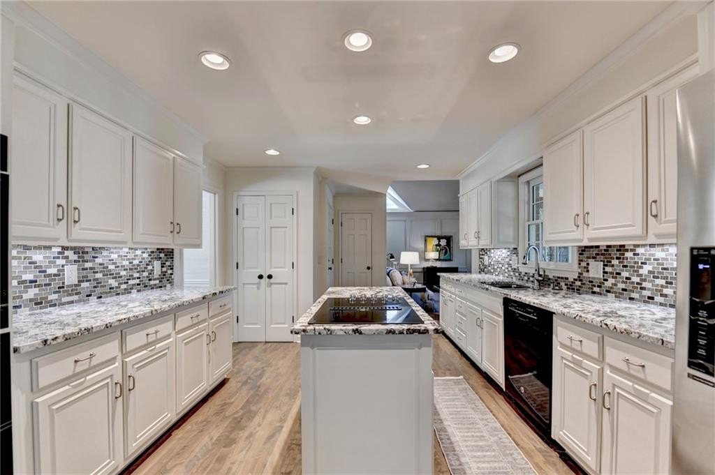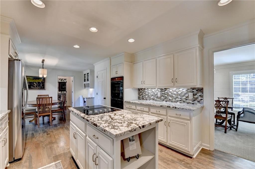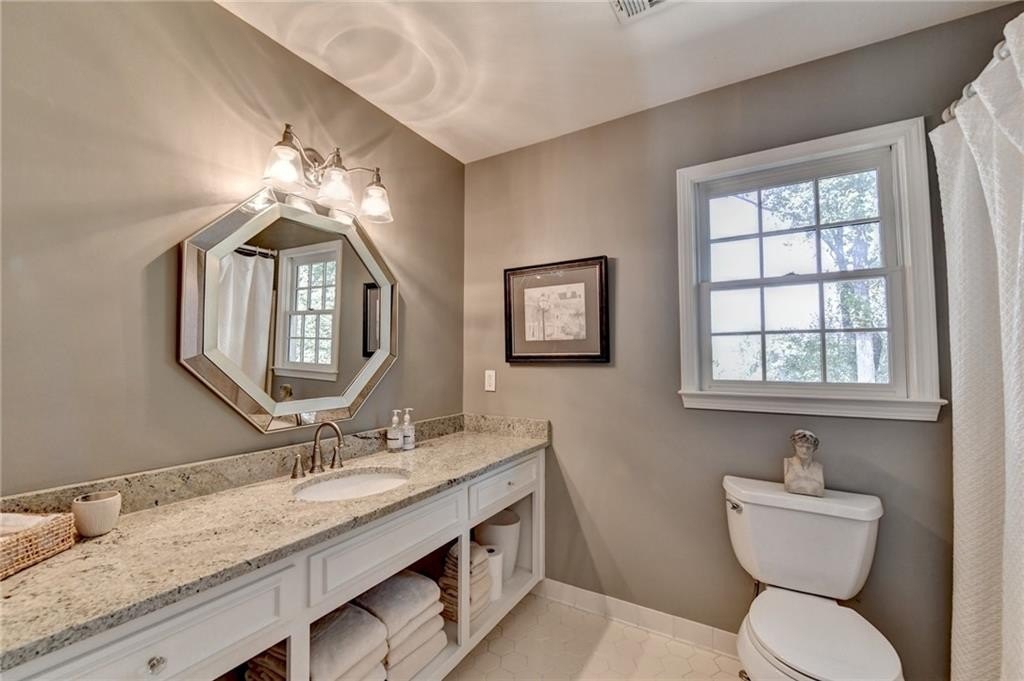 This beautifully transformed home is waiting for you – lovingly updated with soft neutral paint colors, elegant finishes, and thoughtful lighting in every room. This home feels warm and inviting from the moment you walk in. One of the most impressive features is the outdoor space, where a spacious covered porch overlooks a backyard with extensive stonework, a winding stone pathway, and a cozy firepit perfect for gathering. Other recent upgrades include a new driveway with brick inlay and Jeldwen windows throughout. Inside, hardwood floors lead from the foyer to a dining room and a den, both with elegant molding. The den features French doors and can also work as an office. Beyond the foyer you will find an eat-in kitchen with fantastic views of the backyard. This Chef’s kitchen has hardwood flooring, beautiful stone countertops, pantry closet, center island, double self-cleaning convection ovens, and a built-in desk. The kitchen flows into a vaulted Great Room with a floor-to-ceiling brick fireplace and direct access to the covered porch and backyard. The spacious main floor laundry room features travertine flooring, a linen closet, and a sink. The updated powder room has upgraded tile flooring and a vanity with a granite countertop and vessel sink. Upstairs you will find hardwood flooring throughout the hallway plus a separate linen closet. The Primary bedroom features a tray ceiling and dual custom closets. The remodeled Primary bath has a vaulted ceiling, porcelain tile flooring, a beautiful soaking tub, a separate shower, separate vanities with granite countertops, and a linen closet. Three secondary bedrooms all have walk-in closets, one with a custom closet. The shared hall bathroom has a granite countertop. A back staircase adds extra convenience. The unfinished terrace level is ready for your vision. The owners created custom design plans for a future remodel and are happy to share them. River Station is an active swim/tennis community located along the Chattahoochee River with 4 lighted tennis courts, 3 pickleball courts, a pool, a playground, and year-round community events. Top rated schools include Simpson Elementary and Paul Duke STEM High and this home is convenient to a number of private schools including Wesleyan, Greater Atlanta Christian, Cornerstone Christian, Providence, and Davis Academy. The city of Peachtree Corners has it all with fantastic shopping and dining, parks along the Chattahoochee River, and concerts and community events throughout the year. Come see all this home has to offer.