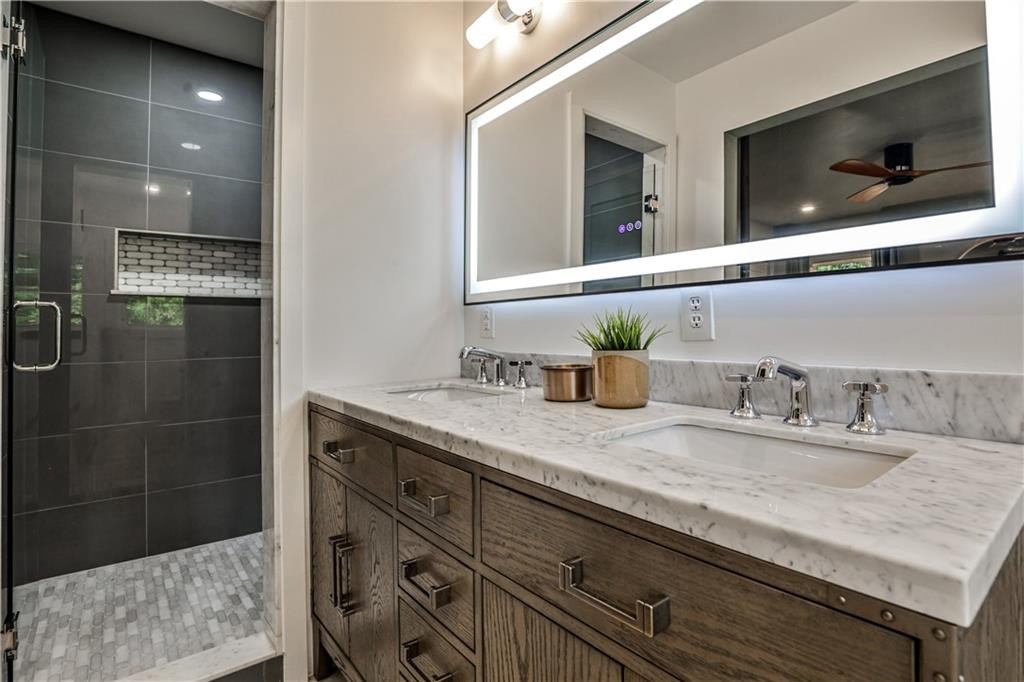 Retreat to the spacious primary suite featuring a large, tiled walk-in shower and double vanity. Thoughtful extras abound—don’t miss the dog wash in the laundry room (pet parents, rejoice!). The lower level with and garage both feature epoxy floors for a polished look and practical durability.