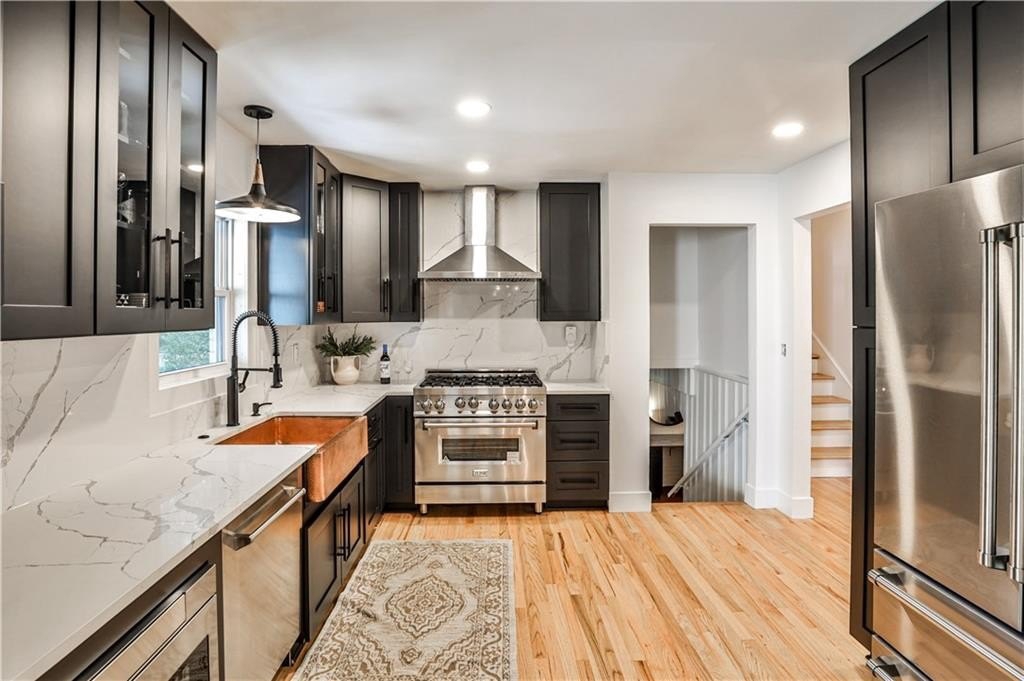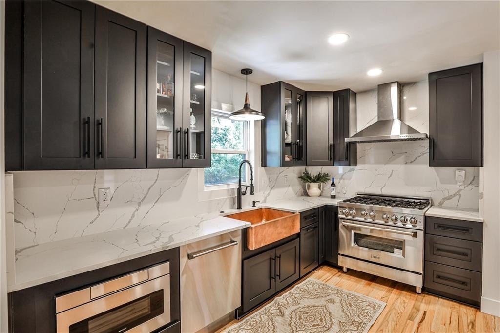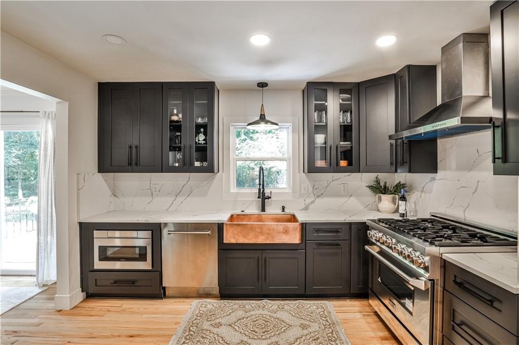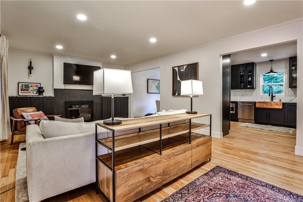 Completely reimagined, this stylish mid-century gem blends timeless lines with a top-to-bottom renovation. Nearly everything is NEW: windows, roof, doors, kitchen, gas fireplace, driveway, and more. No expense was spared on this renovation. Inside, hardwood floors run throughout sun-filled living spaces, including two generous living rooms—perfect for everyday living and easy entertaining. The chef’s kitchen shines with quartz countertops, ZLINE appliances, modern cabinetry, and a stylish dry bar for coffee or cocktails. The home even features a hard-to-find oversized garage.