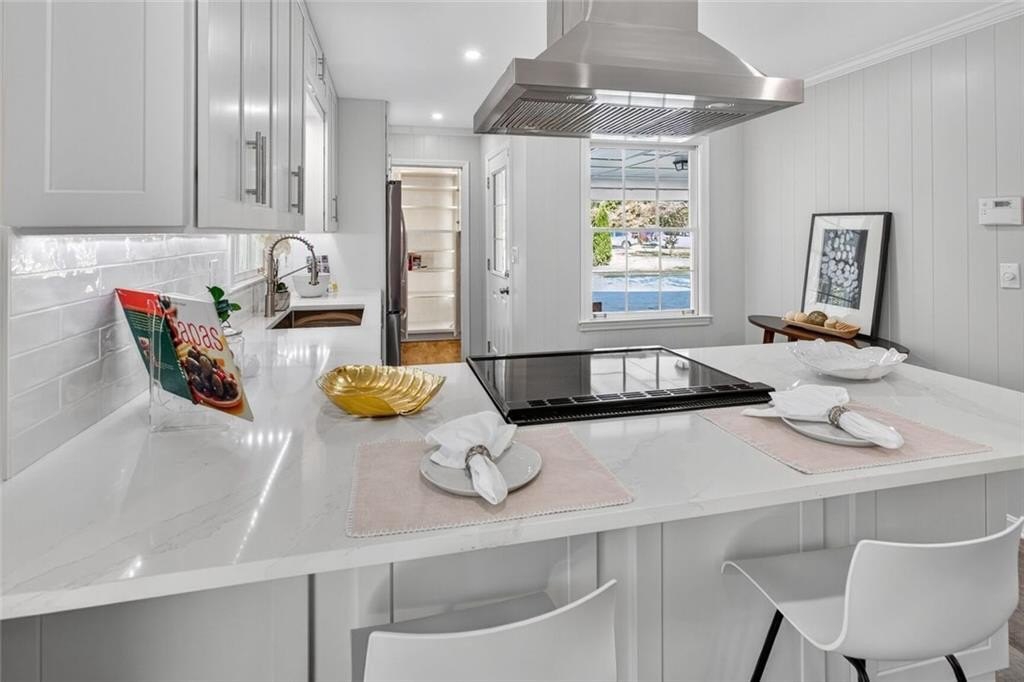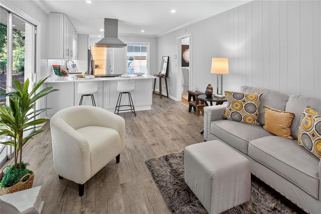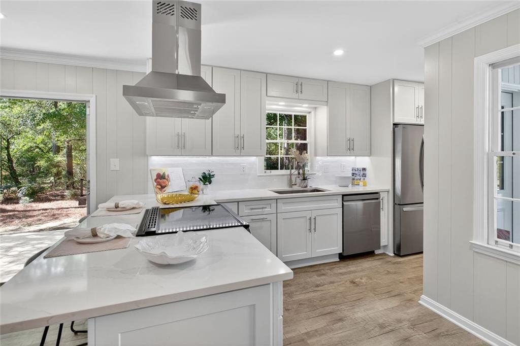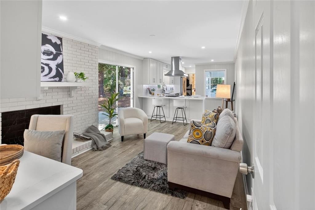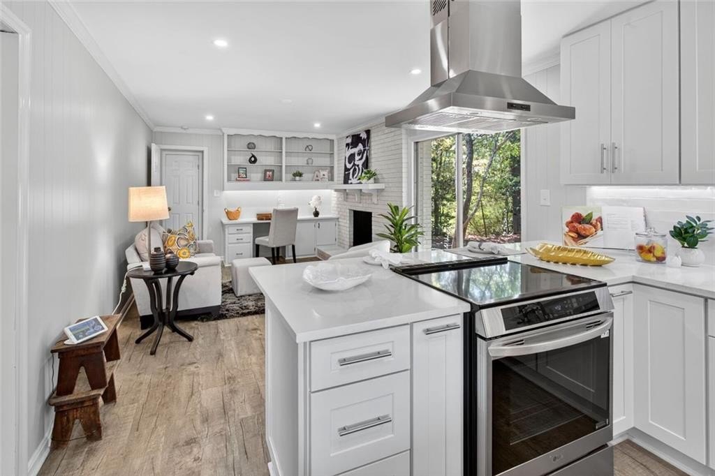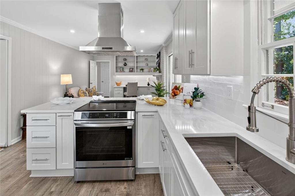 Almost like new! Filled with sought-after major renovations from 2021/2022 and many more in 2025, this outstanding one level home, on a flat cul-de-sac lot, welcomes the most discerning buyers. The kitchen and laundry room were completely renovated in 2025 and now are gleaming. Open to the family room, the kitchen features quartz countertops, soft close drawers, a wonderful drop down sink, faucet and disposal, and thoughtfully designed cabinetry with great lighting. Stainless steel appliances are all brand new. The stacked SS washer/dryer is full size, with an incredible lighted pantry next to it, all so convenient to the kitchen. Around 2021 a new roof was installed and the bathrooms were gutted and replaced with bright, modern features. At that time, most of the ceilings and walls were replaced. The kitchen/laundry/family rooms now boast flooring of luxury vinyl planks (LVP), as well as the sizable storage room in the carport. The remaining hardwood floors have been beautifully refinished. The house has been painted throughout the interior and exterior, showcasing "on trend" colors along with new lighting fixtures. Another major upgrade was the September 2025 total concrete replacement of both the driveway and walkway - a game changer. The backyard features views of Stone Mountain. The fortunate new homeowners will have a place to call their own that has been thoughtfully reimagined.