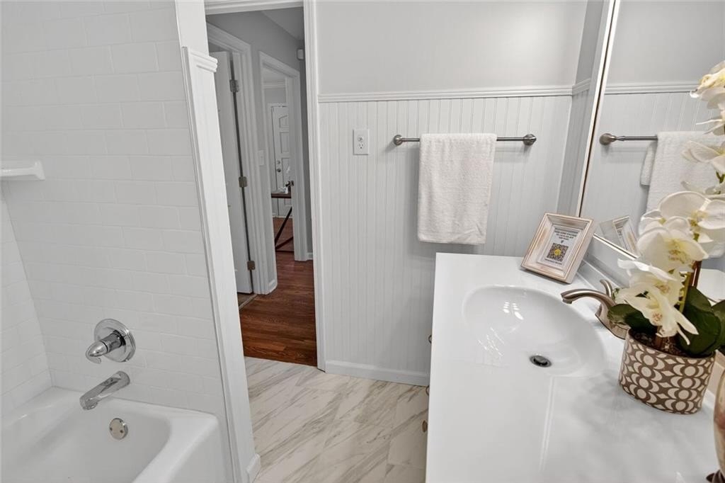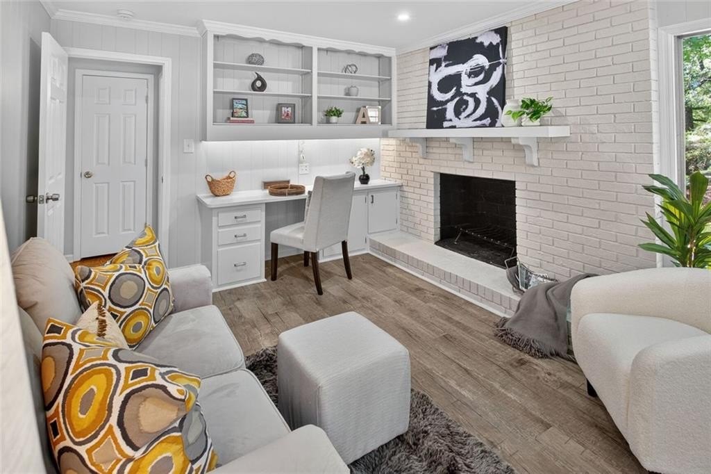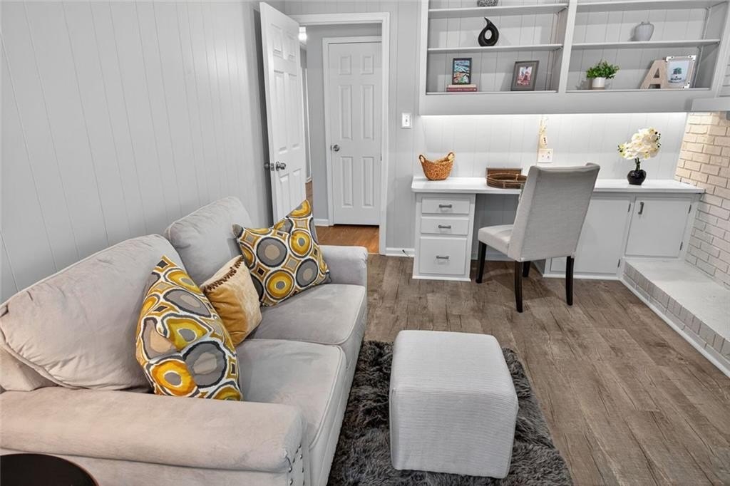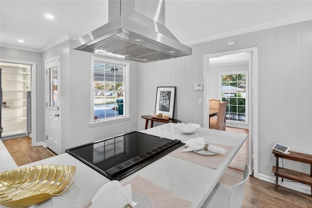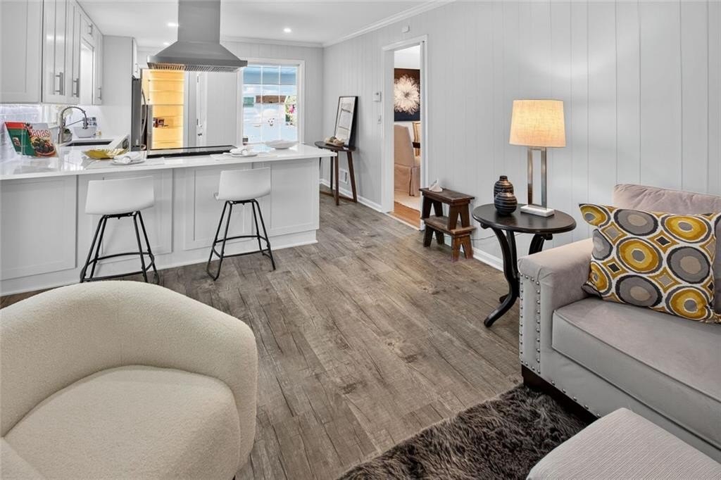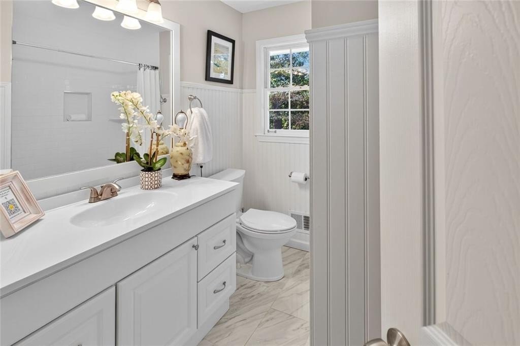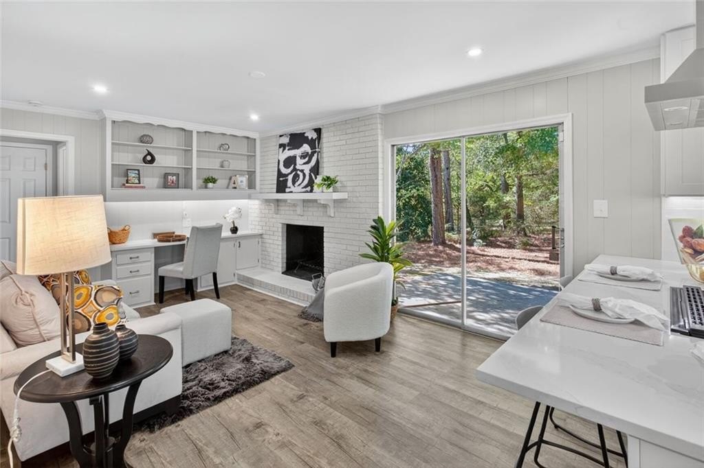 Almost like new! Filled with sought-after major renovations from 2021/2022 and many more in 2025, this outstanding one level home, on a flat cul-de-sac lot, welcomes the most discerning buyers. The kitchen and laundry room were completely renovated in 2025 and now are gleaming. Open to the family room, the kitchen features quartz countertops, soft close drawers, a wonderful drop down sink, faucet and disposal, and thoughtfully designed cabinetry with great lighting. Stainless steel appliances are all brand new. The stacked SS washer/dryer is full size, with an incredible lighted pantry next to it, all so convenient to the kitchen. Around 2021 a new roof was installed and the bathrooms were gutted and replaced with bright, modern features. At that time, most of the ceilings and walls were replaced. The kitchen/laundry/family rooms now boast flooring of luxury vinyl planks (LVP), as well as the sizable storage room in the carport. The remaining hardwood floors have been beautifully refinished. The house has been painted throughout the interior and exterior, showcasing "on trend" colors along with new lighting fixtures. Another major upgrade was the September 2025 total concrete replacement of both the driveway and walkway - a game changer. The backyard features views of Stone Mountain. The fortunate new homeowners will have a place to call their own that has been thoughtfully reimagined.