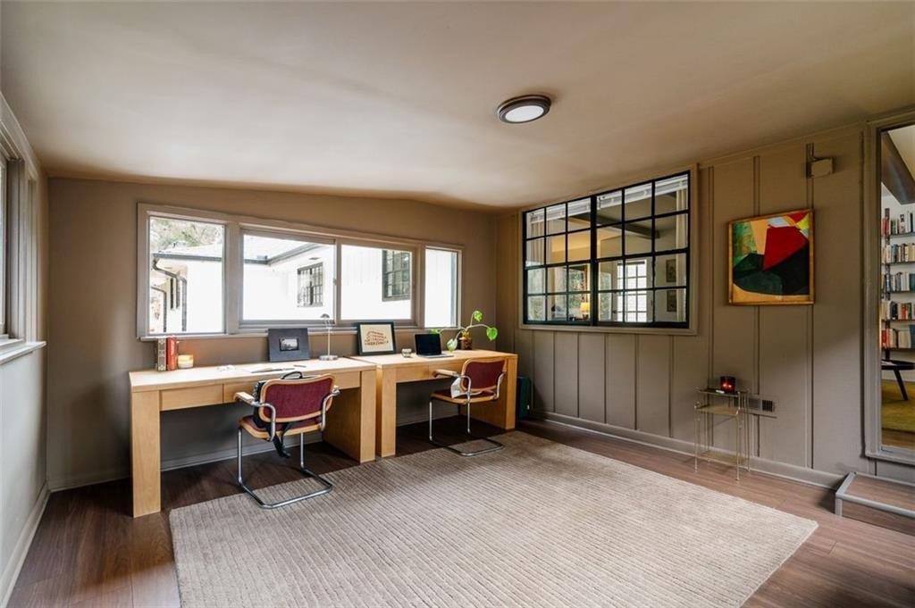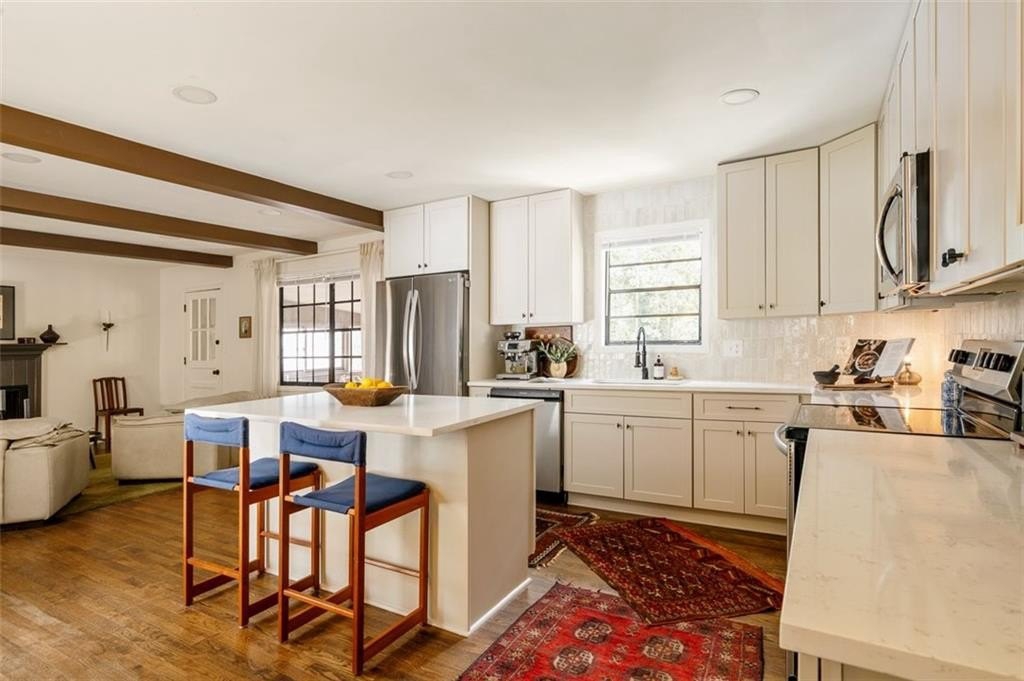 This charming mid-century ranch delivers Intown proximity without the high price tag and features an outdoor space you'll never want to leave. This home is packed with character and features a great layout, boasting real hardwood floors throughout the main level, a gorgeous light-filled sunroom, and a large kitchen with updated cabinetry, backsplash, and a built-in breakfast nook. The home offers peace of mind with extensive 2020 updates, including a new roof, HVAC and hot water heater. Beyond the main level, a large basement with two exterior doors and connected water offers fantastic potential for an in-law suite, short term or long term rental, storage, or a home gym. The picturesque backyard oasis is where you'll want to spend every weekend, perfect for entertaining with a brand new fire pit, large patio, and a paver patio with a pergola. The brand new 6ft privacy fence encloses the yard which is filled with a stunning willow tree, a wildflower garden, blueberry and blackberry bushes, and lovely fragrant plants like white jasmine and rosemary. Location is everything, and you'll be just 15 minutes from BeltLine access, EAV, Grant Park, and Reynoldstown, 20 minutes from Downtown Decatur, and only 5 minutes from I-20 and I-285.