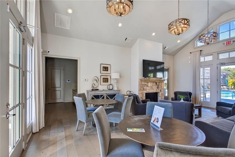 Tucked away in Brookhaven's best-located community, 1956 Skyfall Circle offers rare privacy with a wooded back view-not facing Buford Highway. This upgraded end-unit townhome features 10' ceilings, wood beams, a stone fireplace with shiplap, and designer tile and countertops throughout. The chef's kitchen with oversized island anchors the open floor plan and opens to both light-filled living and dining areas, plus an extended deck overlooking the trees. Upstairs, the primary suite wows with a soaking tub, walk-in shower for two, dual vanities, and a spacious closet. The lower level includes a 4th bedroom or office with full bath and covered patio. Enjoy a 2-car garage plus 2-car driveway, community saltwater pool, clubhouse, private dog park and unparalleled access to some of Atlanta's best dining. Comparable homes in the community lack this level of finish or privacy, making 1956 Skyfall Circle a rare opportunity to own the most upgraded floor plan in the best location, without the premium price tag. Minutes to Town Brookhaven (15+ restaurants and Costco), Brookhaven Village, and walkable to the best of Buford Highway-this is the perfect mix of privacy and ease, city convenience, and style.