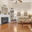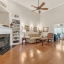 Continuing down the hall, the home opens up into a warm and inviting family room. You’ll notice gleaming hardwood floors, a cozy gas fireplace framed in elegant granite, and built-in bookshelves for extra charm and storage.