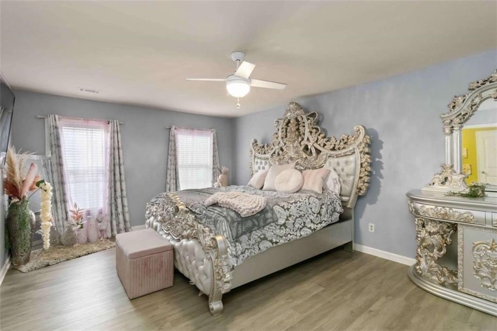 Welcome to this spacious 5-bedroom, 2.5-bath home offering nearly 2,700 sq. ft. of living space in a well-maintained subdivision. This two-story residence blends modern comfort with timeless style. The main level features an open floor plan with a bright family room and cozy fireplace, along with a large kitchen that flows seamlessly into the dining and living areas-perfect for entertaining or everyday living. A bedroom and full bath on the main level provide ideal accommodations for guests or in-laws. Upstairs, you'll find four additional bedrooms plus a versatile family sitting area, including a private owner's suite with generous closet space and a relaxing en-suite bath. With plenty of flexibility for a home office, playroom, or guest room, this home adapts easily to your lifestyle. The backyard supplies room for outdoor living, gardening, or play, while the community itself boasts resort-style amenities including a pool, tennis courts, playground, basketball courts, and more. Move-in ready and nestled in a welcoming neighborhood, this property is a must-see.
