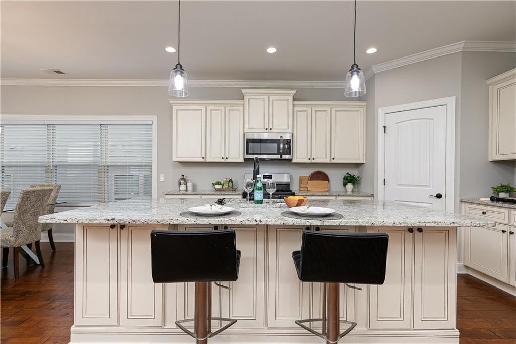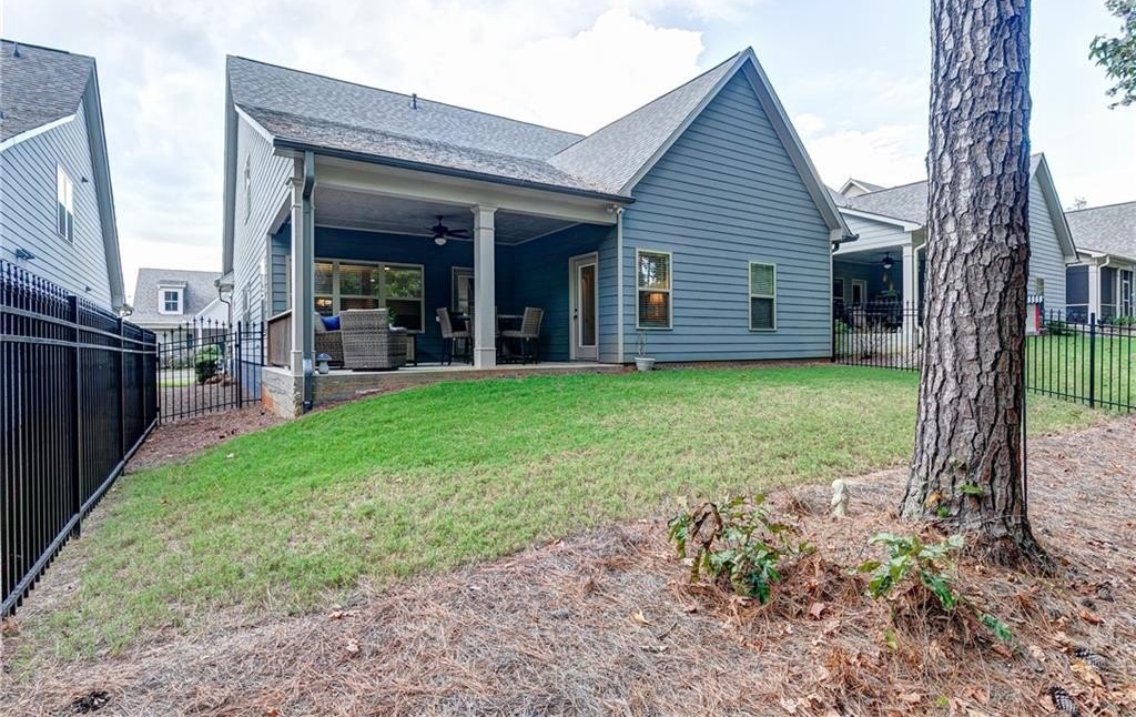 Welcome Home to 3100 Patriot Square, Marietta, GA 30064! This better-than-new ranch, built in 2019 and impeccably maintained, features 3 bedrooms and 3 full baths and is nestled within a gated 55+ active adult community. Offering thoughtful upgrades, elegant finishes, and a low-maintenance design, this exceptional home truly outshines new construction—perfectly tailored for today’s active adult lifestyle seeking comfort, quality, and convenience. Welcome guests from the charming rocking-chair front porch, into the large inviting foyer where you’ll immediately notice the gleaming hardwood floors, designer lighting, and open, airy layout—ideal for both relaxed living and effortless entertaining. At the heart of the home, the gourmet kitchen impresses with abundant soft-close white cabinetry, granite countertops, a stylish tile backsplash, stainless steel appliances, an oversized walk-in pantry, and a large island that opens to the dining area and spacious family room. The family room features hardwood flooring and a cozy stone fireplace—perfect for quiet evenings or hosting friends. Step outside to the covered back porch overlooking the beautifully landscaped, fenced backyard—a tranquil space to enjoy morning coffee or unwind at the end of the day. The owner’s suite, conveniently located on the main level, offers a vaulted ceiling, ceiling fan, and a generous walk-in closet with custom built-ins. The spa-inspired ensuite bath showcases a large, fully tiled walk-in shower, dual vanities, and soft-close cabinetry—combining style and comfort. A secondary bedroom and full bath with tile flooring and marble countertops on the main level provide flexibility for guests, a home office, or a hobby room. Upstairs, you’ll find a spacious third bedroom and full bath with tile flooring, soft-close cabinetry, and marble countertops—perfect for visiting family or friends. The second floor also boasts a large unfinished area, offering an abundance of storage or the potential to create a fourth bedroom, office, or flex space tailored to your needs. Additional highlights include a brand-new roof, energy-efficient systems, and meticulous care throughout. Located in a beautifully maintained 55+ gated community, residents enjoy a peaceful, friendly atmosphere with easy access to shopping, dining, medical facilities, Historic Marietta Square, and Kennesaw Mountain. This home seamlessly blends elegance, comfort, and convenience in one of Marietta’s most desirable active-adult neighborhoods.