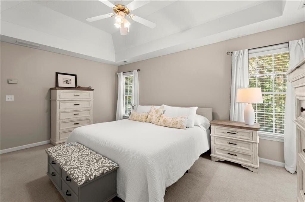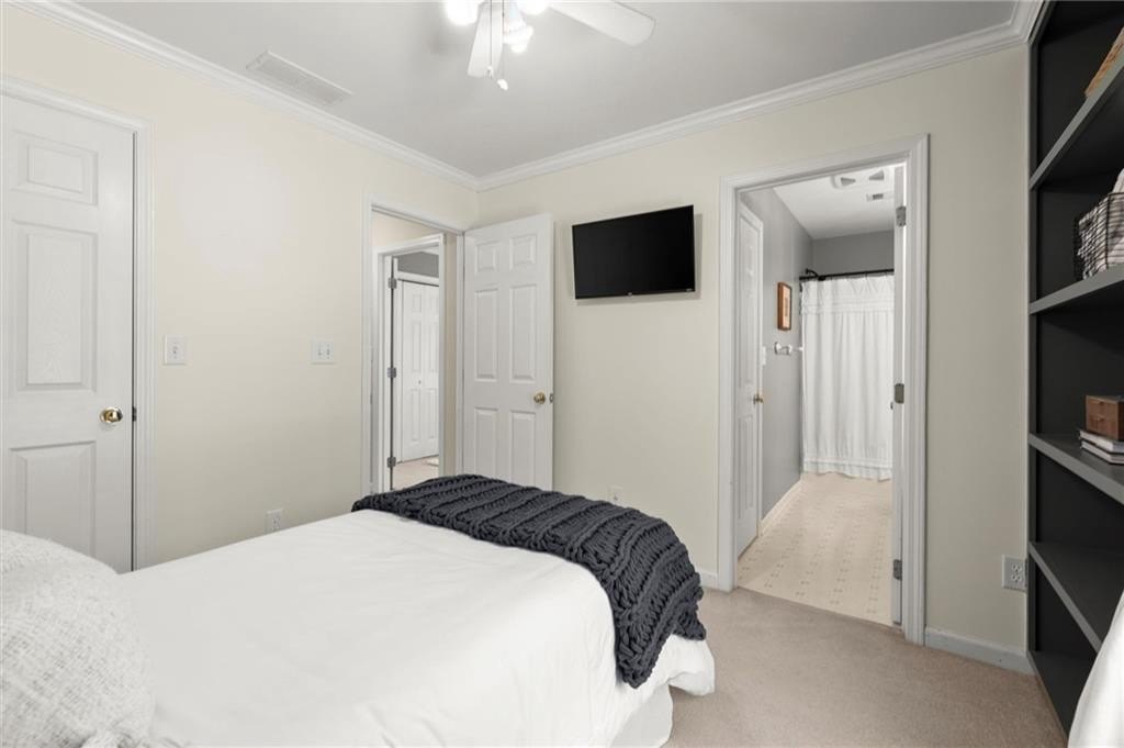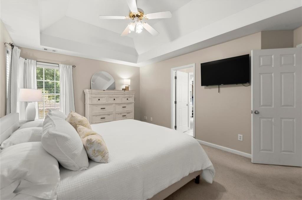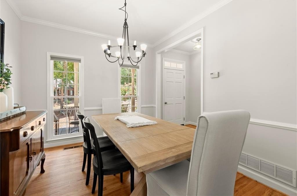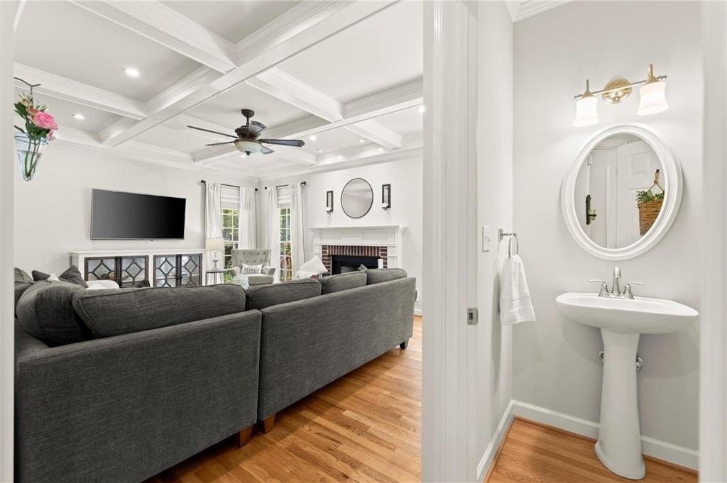 Welcome to this picture-perfect home nestled on a premium cul-de-sac lot in the desirable Orange Shoals Greenbelt community. From the moment you arrive, the inviting front porch and spacious front yard set the tone for lots of charm and character! Step inside to a light-filled foyer flanked by a separate dining room, leading into a beautifully updated kitchen with stone countertops, designer backsplash, and newer appliances. The kitchen opens to an expansive deck that overlooks a serene, wooded backyard—your private retreat with direct access to miles of community trails. The fireside family room with coffered ceilings and gleaming hardwoods offers a cozy yet refined space to unwind. Upstairs, the charm continues with a spacious Primary Suite and spa-inspired bath, three secondary bedrooms, a computer nook, and thoughtful touches like built-ins and designer lighting. The fully finished terrace level adds versatility with a full bath, two separate flex rooms including one with a ventless fireplace and 5th bedroom space(currently used as a home office). Enjoy fall evenings on the well appointed deck, by the firepit, or unwind under the covered patio. Located less than 5 miles from top-rated schools (K-12), shopping, dining, Northside Cherokee, quaint downtown areas like Ball Ground and Canton, the Cumming City Center, as well as a hop and a skip from Milton|Alpharetta areas. This home offers peace, privacy, and access to a vibrant, nature-loving community.