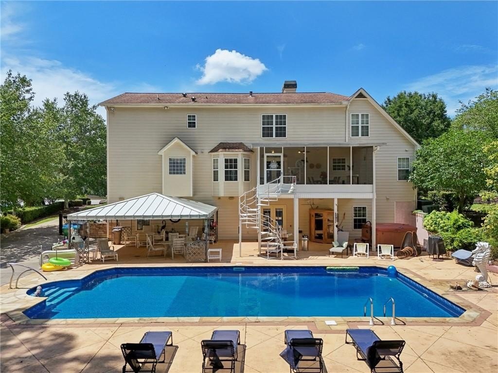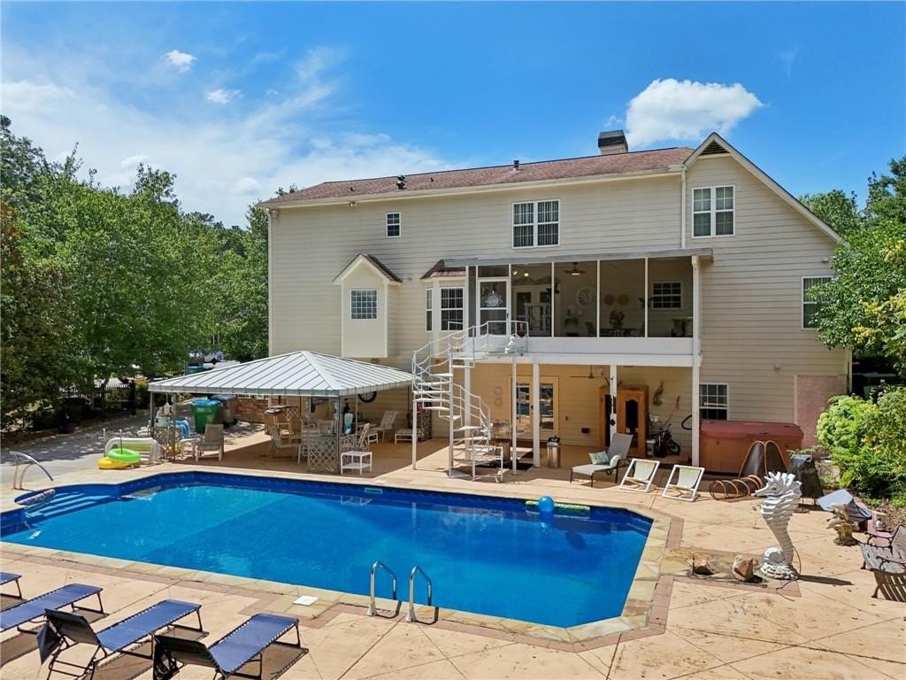 It is a joy to present this incredible, one owner homestead on 2.5+/- acres. Viewing this beautiful property takes some time and is so much fun! Curb appeal abounds with a circular driveway, and tons of poured concrete offering abundant parking space for vehicles, trailers, campers, boats, etc. Warm covered, rocking chair front porch, columns and stone exterior with a wide stone staircase leading to front door. Walk inside to an open family room with built in bookcases and hardwood floors, dining room, kitchen area that is extremely functional and well-appointed including a butler's pantry. Very peaceful 12x20 screened in porch attached to kitchen area for additional seating. Master suite on main level is spacious(18x18) with California closet system in large walk-in closet, and attached master bath is to die for. Heated tile floors, split his/her vanities, LED mirrors with TV inlaid, garden tub, and a resort style, walk-in shower with dual side jets, overhead rain shower, 6 temperature controls, and more. Walk upstairs to what could be a teen suite/in-law apartment. Three large bedrooms, sitting area, and full bath round out a very usable second floor. Travel downstairs to an open, and bright, fully finished terrace level. Immediately greeting you is a fantastic, pub style bar setup, and a very large gathering space with tile floors. Two additional bedrooms and yet another full bathroom, as well as a cavernous laundry room, and incredible storage in the basement. Exit the terrace level into a backyard oasis. Legendary pool parties, family gatherings, and good times were made for this space! 20x40 inground pool with new liner that is 11 FEET deep at its deepest, complete with pool house containing all equipment, and robotic cleaner. Expansive, 24x16 covered space for those that prefer the shade over tanning by the pool. Outdoor kitchen, natural gas grill, jacuzzi spa, and sauna included with this staycation paradise. The good vibes continue after sundown with an abundance of backyard lights to illuminate the space after dark. Regrettably, sometimes duty/responsibility calls, and if you need to get some work done in the backyard, opportunities abound. Multiple storage buildings and workshops allow for near limitless storage, or amazing storage and workspace for an entrepreneur or home business. 16x32 building with loft, 16x16 rear storage building, and backyard is kept secure with an electric gate, and CCTV security system. Great school district, and easy access to interstate 20, major conveniences a short drive, including tons of restaurant and shopping options. I could go on and on, but an in-person visit is a must for this one. Until then, please enjoy our full suite of photographs, aerial shots, and 3-D virtual walk through of this stunning family estate. When you're ready to be wowed, book a tour with your real estate professional, and it would be our pleasure show you this beautiful property!