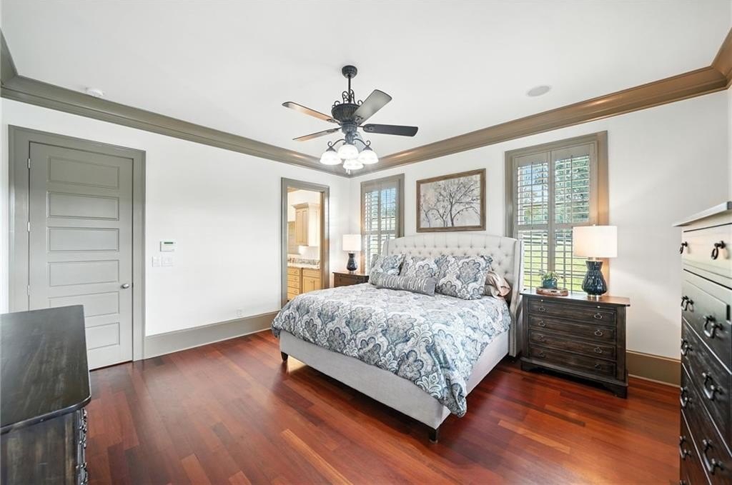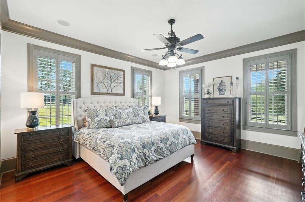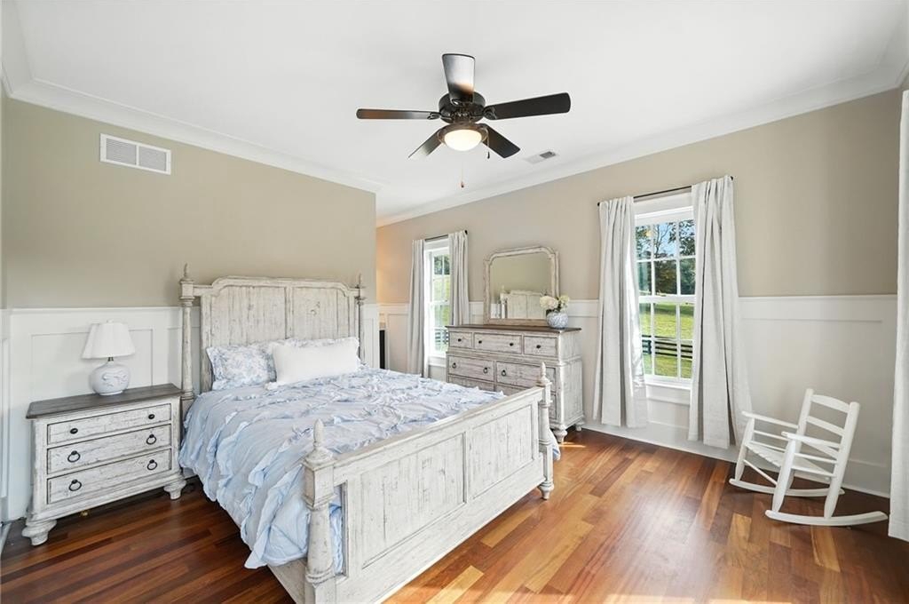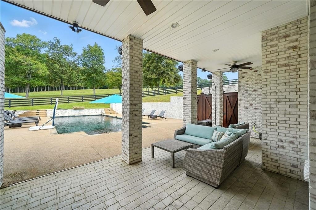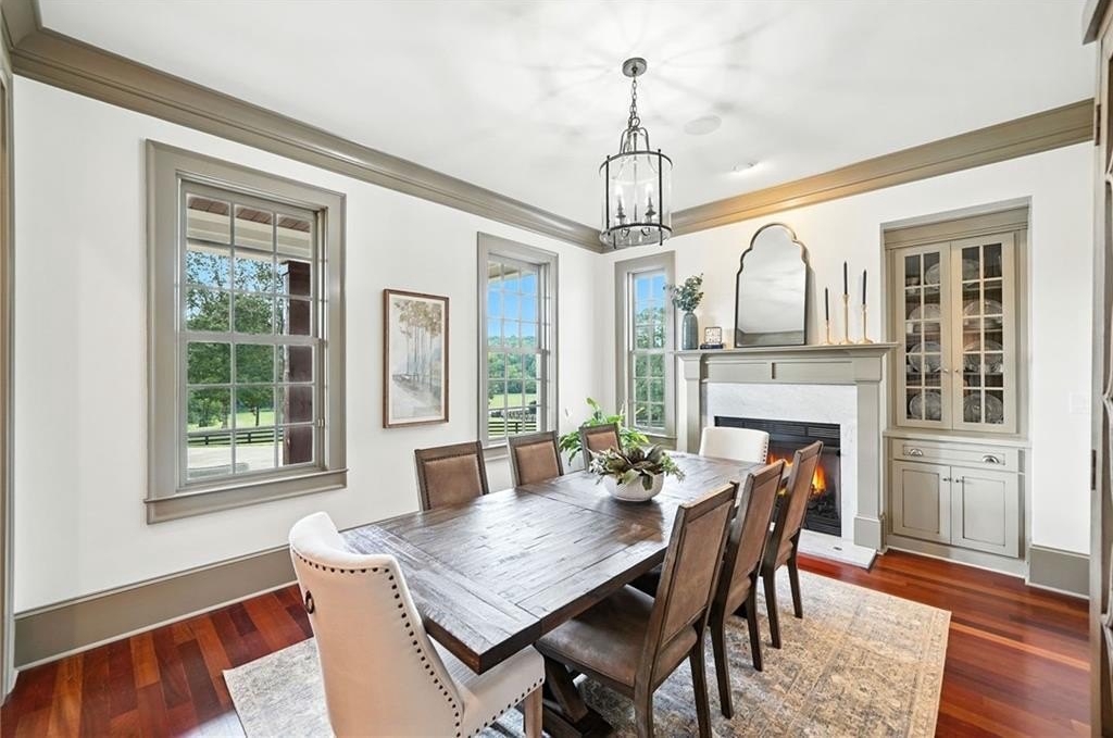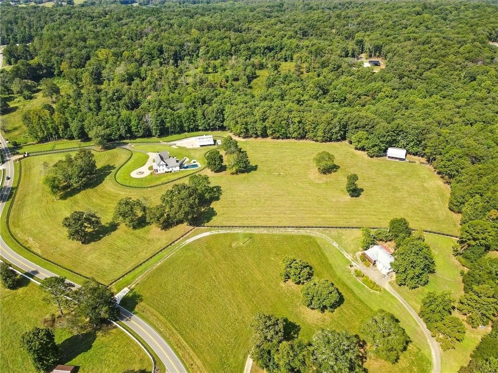 Prepare to be captivated by this extraordinary 18+ acre estate, a timeless Colonial Williamsburg masterpiece in the heart of sought-after Cherokee County. Fully fenced and gated, this property offers endless possibilities as an equestrian haven, private mini farm, or peaceful retreat with panoramic hilltop views. Two barns, subdivided pastures, and a sparkling PebbleTec pool anchor the grounds, framed by rolling hills and a quiet creek-lined rear border. The inviting front cedar porch showcases long-range views, while a detached garage with breezeway and loft offers potential guest or apartment space. A circular drive completes the perfect combination of classic charm and modern function. The elegant 6,500+ square foot main residence blends modern farmhouse design with refined craftsmanship. Freshly painted throughout, it features five bedrooms and five and one half baths. Brazilian cherry floors flow across the main level, where the formal dining room with fireplace, built-ins, and detailed millwork sets a warm and elegant tone. The light-filled gourmet kitchen includes marble countertops, a large island with prep sink, farmhouse sink, custom cabinetry, and a full butler’s pantry. The adjacent dining area opens to a screened porch overlooking the pool and pastures. The main-level family room centers on a fireplace with custom built-ins and beadboard ceiling. The luxurious primary suite features crown molding, a dual-entry custom closet, and a spa-like marble bath with soaking tub, marble shower, and double vanity. The main-level laundry room provides custom cabinetry and a utility sink. Every detail, including Baldwin solid brass hardware, reflects thoughtful design and quality craftsmanship. Upstairs, wide-planked stairs lead to a loft landing with built-ins and a study nook. Three spacious bedrooms each offer private ensuite baths, one with a clawfoot tub, along with a second laundry room. The third floor includes two loft spaces that are ideal for guest rooms, an office, or a play area. The terrace level offers a third fireplace, gym area, fifth bedroom suite, full bath, laundry closet, and abundant storage. Outdoor living shines with a screened porch featuring hardwood floors and a fourth fireplace overlooking the PebbleTec pool with ozone purification, fountain, and waterfall. Lounge and covered patio areas create an entertainer’s dream, while an under-deck system provides year-round outdoor enjoyment. The main barn with loft apartment adds incredible versatility. It includes a bedroom loft, full bath, and kitchenette with separate utilities and Wi-Fi, making it perfect for guests, rental income, or multigenerational living. Below, three oversized garage bays with high ceilings accommodate RVs or large vehicles, with workshop cabinetry and a stove stub for a potential studio or hobby space. A converted fitness area and fenced pastures support goats, chickens, or horses. The upper barn with tack room, currently used for boat storage, was originally designed with five 12x13 stalls and can easily convert back for equestrian use. A large fenced pasture and four-board fencing surround the property, supported by irrigation for lush grounds. A charming air-conditioned playhouse with electricity adds a whimsical touch, ideal for children or as a creative workspace. This rare property combines architectural elegance, modern comfort, and breathtaking land. Whether your dream is equestrian pursuits, multigenerational living, or a private sanctuary minutes from modern conveniences, this estate delivers the perfect balance of beauty, privacy, and possibility.