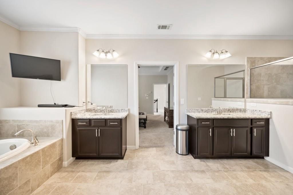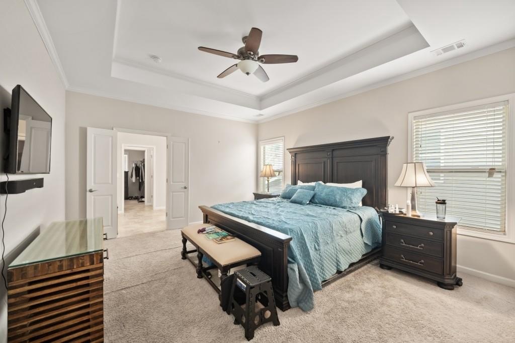 ? Beautiful Two-Story with Dream Kitchen & Spacious Primary Suite! ? Welcome home to this stunning two-story residence that truly has it all style, space, and location! Step inside the foyer where elegance greets you with a formal dining room framed by columns on one side and a flexible room on the other perfect as a home office, playroom, or sitting area. The main level flows effortlessly into a warm and inviting living room with a cozy corner fireplace, opening to a chef's kitchen designed to impress! Here you'll find sleek black cabinetry, gleaming granite countertops, a large island with bar seating and sink, double wall ovens, gas cooktop, built-in microwave, and a French-door refrigerator with dual freezer drawers and water/ice dispenser. A bright breakfast nook, wrapped with corner windows, invites sunshine inside and leads to the patio for seamless indoor-outdoor living. Upstairs, retreat to the massive primary suite with tray ceiling and a spa-like bathroom featuring dual vanities, a soaking tub, tiled shower, and an expansive walk-in closet. Another bedroom also offers its own private bath and walk-in closet, while two additional bedrooms share a full bathroom with hall access. Convenience is at your fingertips with the laundry room upstairs and a generous linen closet nearby. Details like LVP flooring on the main, new carpet in select rooms, canned lighting, and a rear-entry garage add to the home's appeal. Whether entertaining in style or relaxing in comfort, this property delivers the perfect balance of modern finishes and everyday convenience. ?? Centrally located near schools, dining, shopping, and commuter routes this one won't last long!
