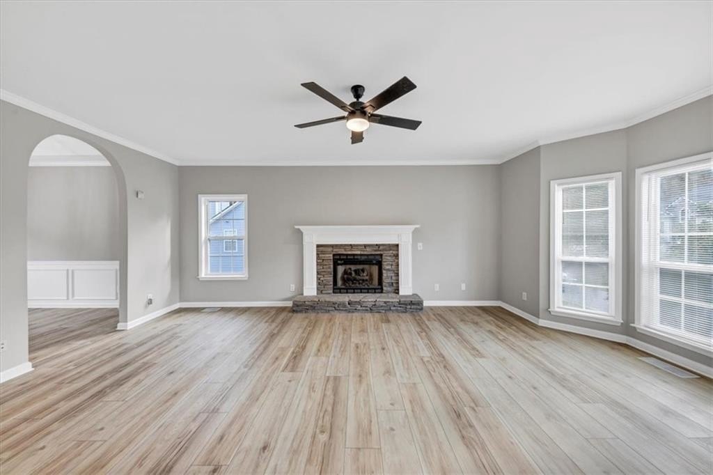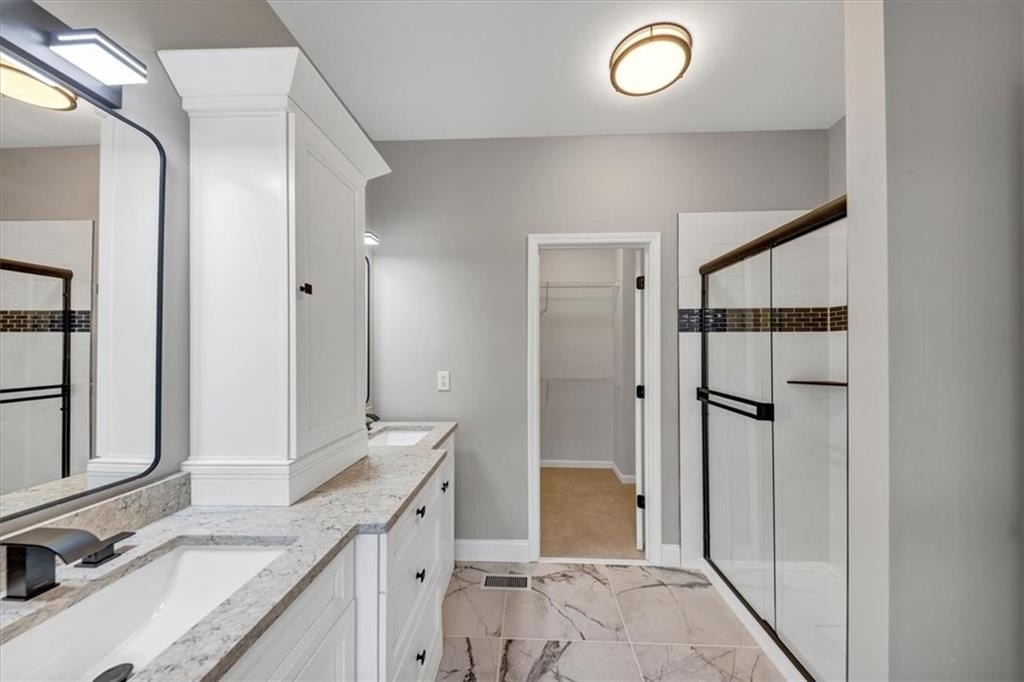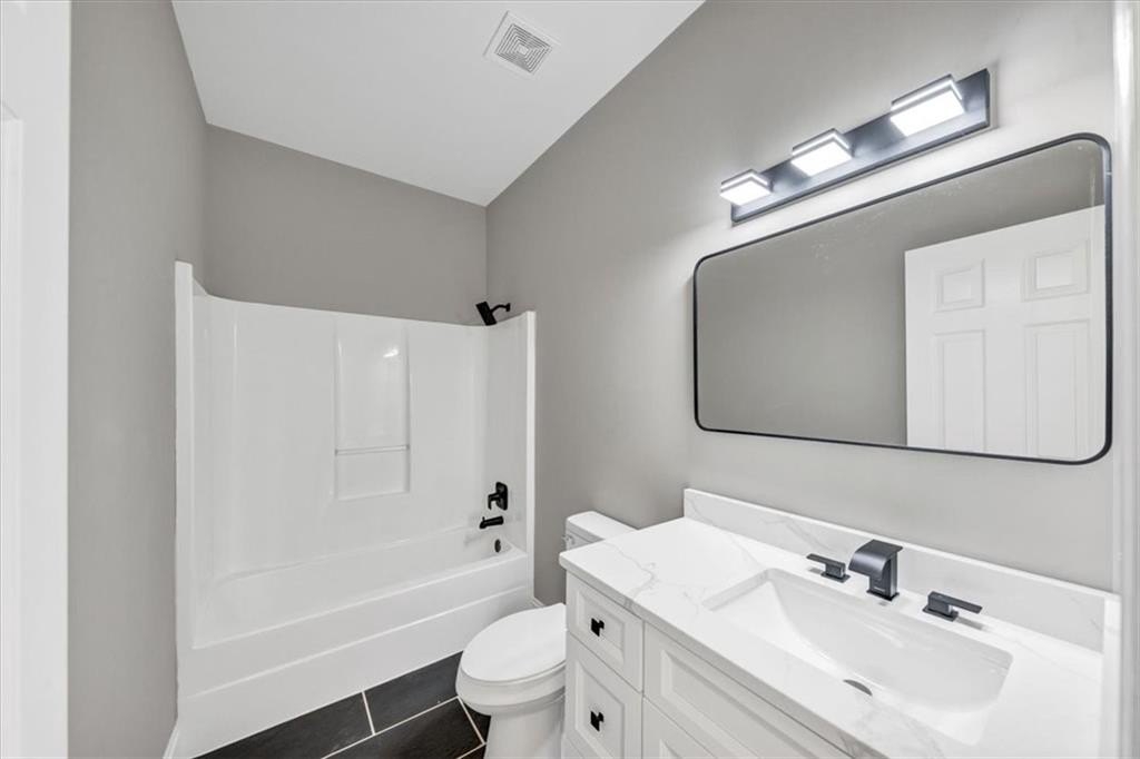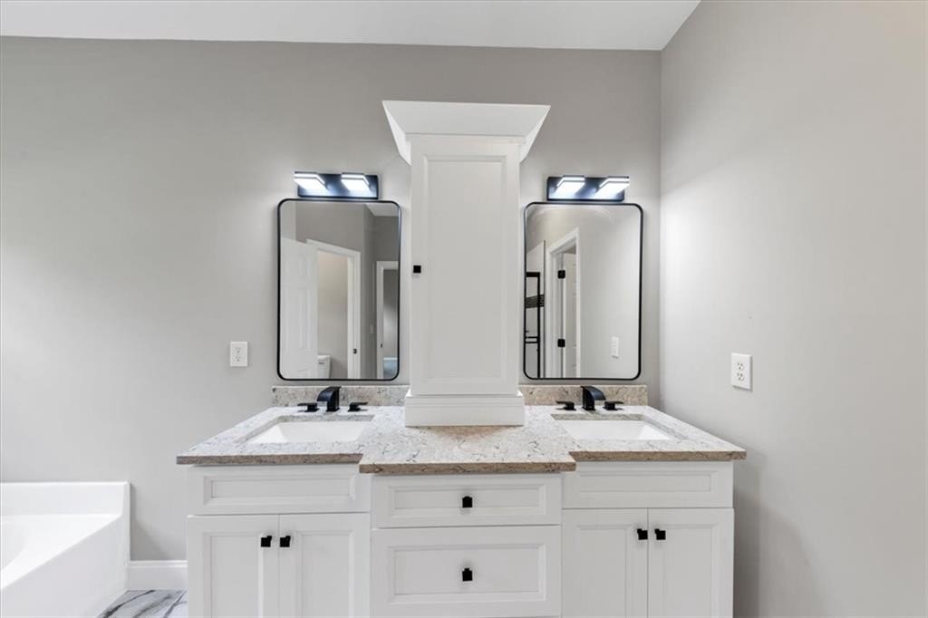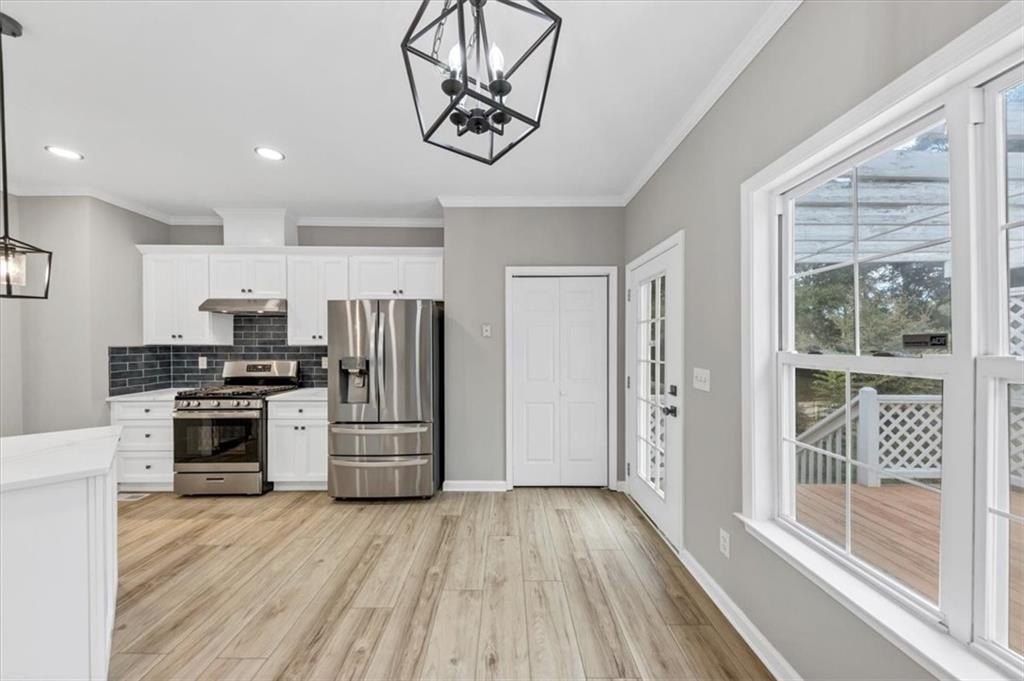 Amazing renovation located just 2.5 miles from the heart of Downtown Woodstock! From the moment you walk through the front door, you’ll be amazed by the space, natural light, and modern upgrades this home has to offer. The main level features new LVP flooring throughout (with new carpet in the bedrooms), an open and spacious family room with a stone fireplace, and a separate dining room with judges paneling. The kitchen is absolutely stunning—complete with all-new white shaker cabinets (including an island), quartz countertops, a gorgeous glass tile backsplash, stainless steel appliances, a pantry, and a bright breakfast area. The main-level guest bath has also been beautifully updated with new cabinetry, a quartz countertop, new toilet, and striking black tile flooring. All bedrooms are generous in size, especially the primary suite located at the back of the home, which boasts a tray ceiling and an incredible spa-like bath featuring modern tile flooring, a double vanity with quartz top and center tower for extra storage, a beautiful walk-in tile shower, garden tub, private water closet, new toilet, and a spacious walk-in closet. The lower level is equally impressive with an oversized second family or entertainment room, a fourth large bedroom with walk-in closet, and a third fully renovated bath showcasing new cabinetry, quartz countertop, designer tile floor, new toilet, and a Jacuzzi tub/shower combo. The laundry room is also conveniently located on this level. Additional highlights include a rare three-car garage (nearly unheard of in this price range!) and a large, level, and mostly private fenced-in backyard—perfect for outdoor entertaining. Other updates include fresh paint throughout, all new light fixtures, new door hardware, and brand-new flooring across the entire home.