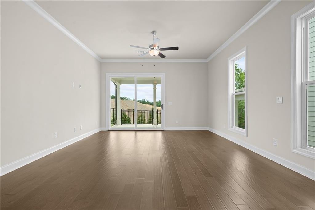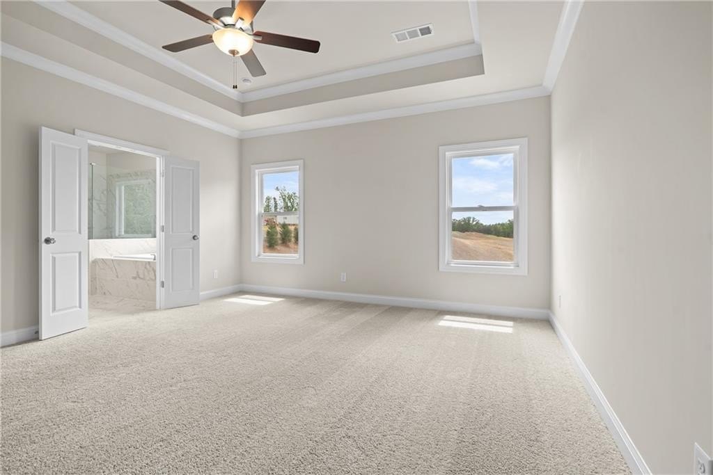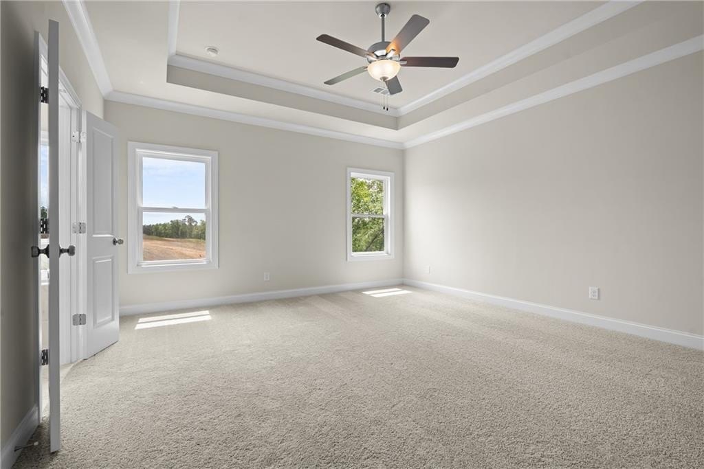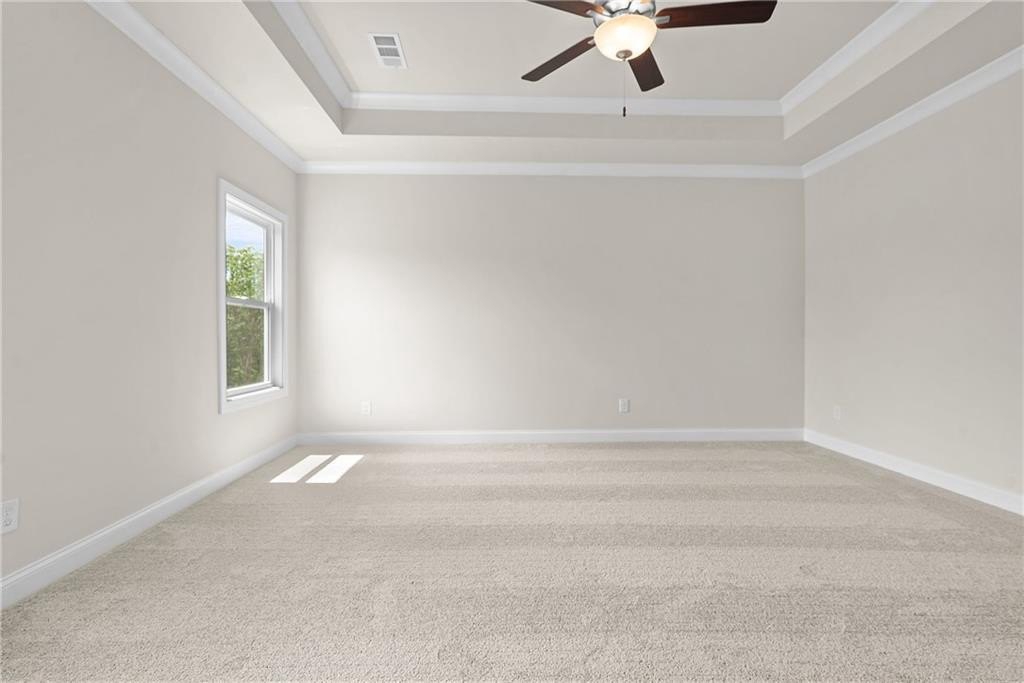 On the second level, you’ll find the luxurious owner’s suite with a 10-foot tray ceiling, providing a peaceful retreat. The media room is also located on this floor, perfect for entertainment and relaxation. The third level features Bedroom 5, offering additional privacy and flexibility. Enjoy outdoor living with a covered patio, and take advantage of the community amenities, including a pool, park, and playground. Located just a few miles from Interstate 400, 15 minutes from Lake Lanier, and less than 2 miles from Cumming City Center with its boutique shopping and unique restaurants, this home combines modern comforts with prime location benefits. [The Carter]