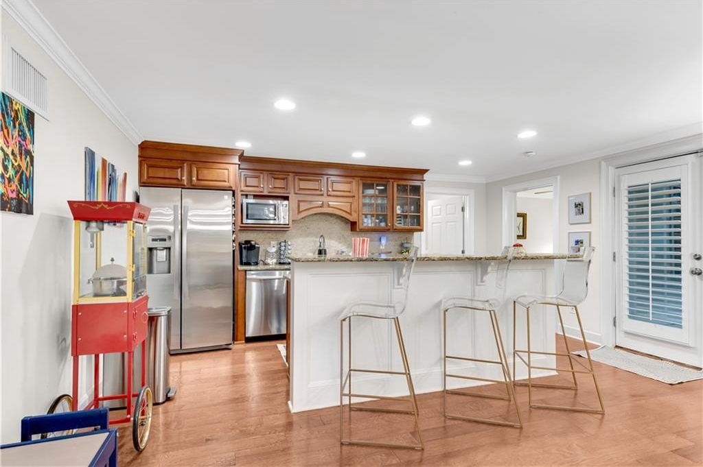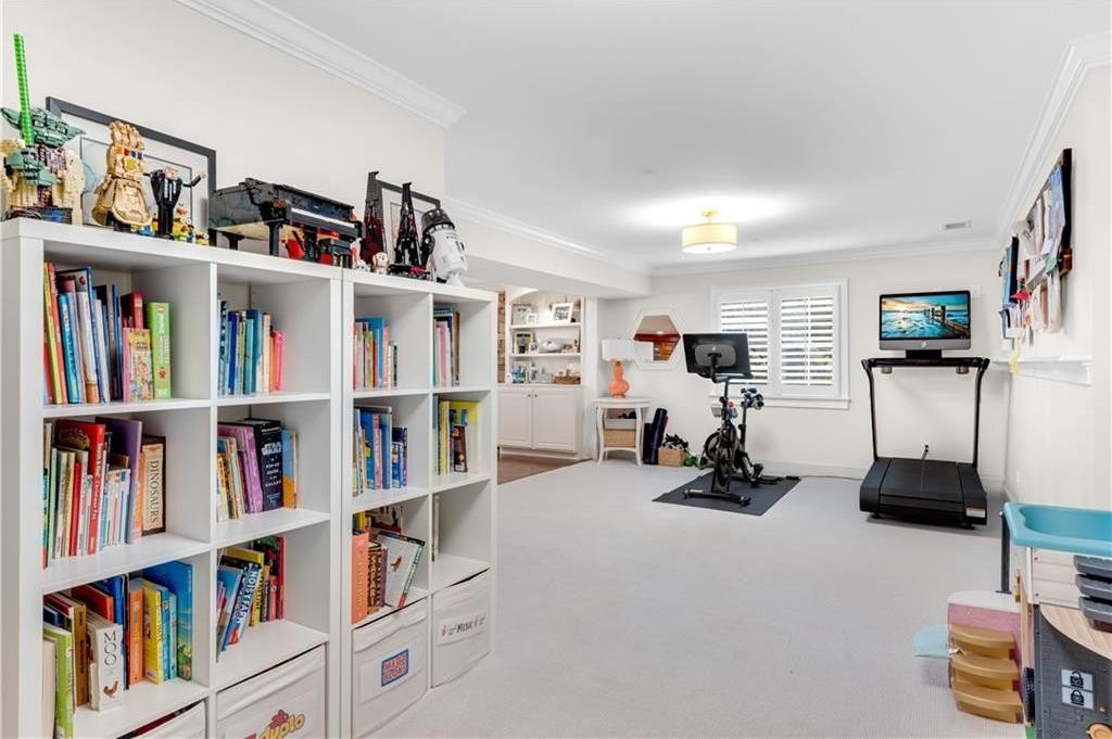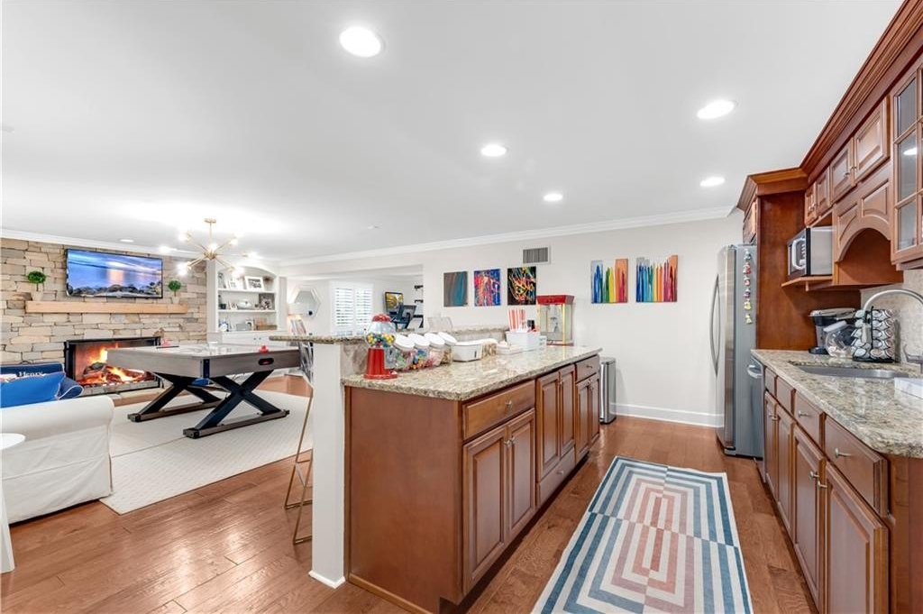 The Terrace Level Is an Entertainer’s Dream With a Spacious Recreation/Media Room, Fireplace With Custom Built-Ins, and a Full Kitchenette/Bar. There’s Ample Space for a Home Gym, Movie Nights, or Game Days, Plus a Private Guest Bedroom and Full Bathroom — Ideal for Overnight Visitors or Multi-Generational Living.