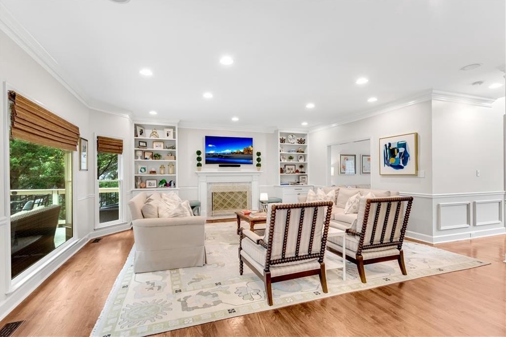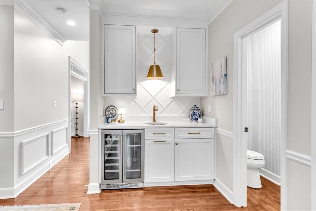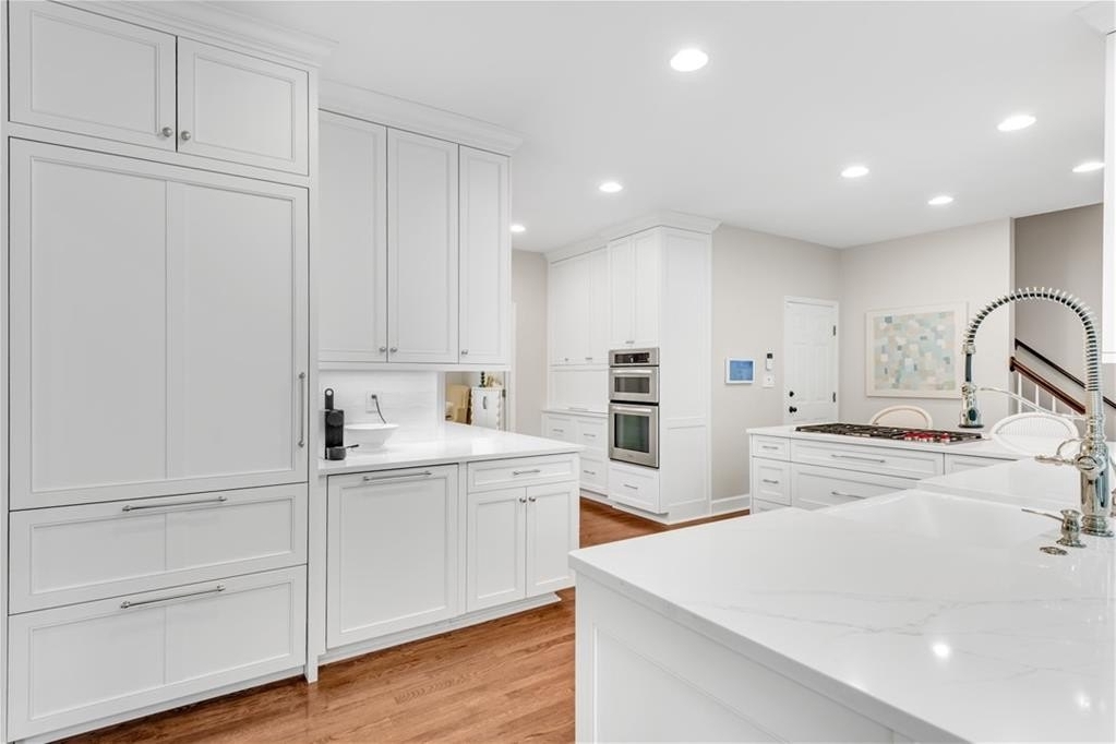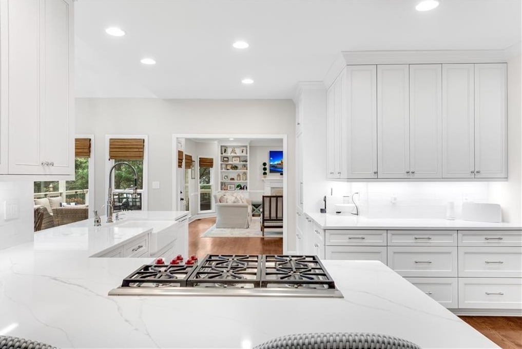 Step Through Elegant Double Front Doors Into a Grand Two-Story Foyer That Opens to the Formal Living and Family Rooms. Gleaming Hardwood Floors Flow Throughout the Main Level, Enhancing the Timeless Appeal of the Home. The Heart of the Home Is the Chef’s Kitchen, Outfitted With High-End Custom Shaker Cabinetry, Quartz Countertops, and Premium Appliances Including a Sub-Zero Refrigerator, Wolf Gas Cooktop With Down Vent, KitchenAid Wall Oven, Two Bosch Dishwashers, and an Apron Front Sink. The Open-Concept Layout Connects the Kitchen to the Breakfast Area and the Inviting Family Room, Which Features a Gas Fireplace, Custom Built-Ins, and a Stylish Wet Bar With a Wine Fridge and Sink — Perfect for Entertaining.