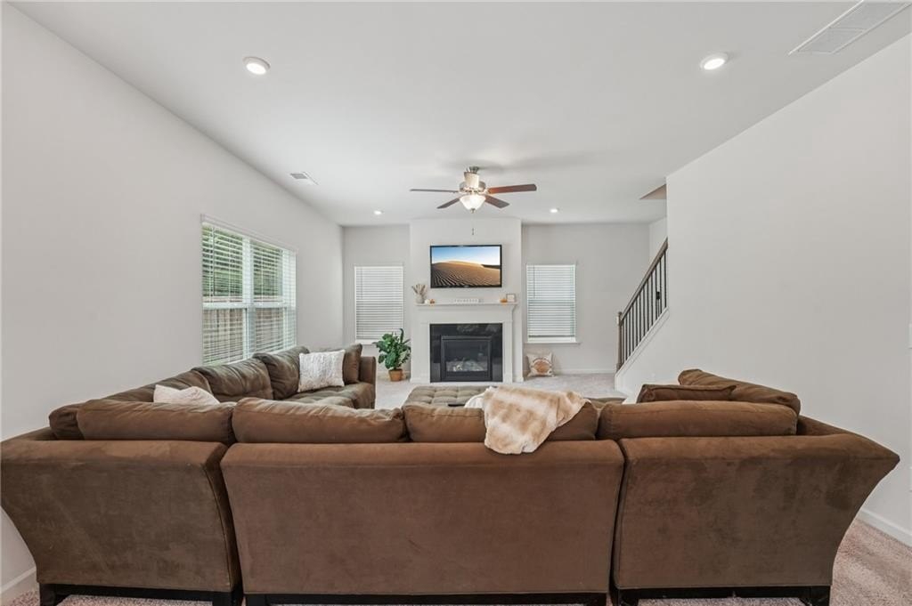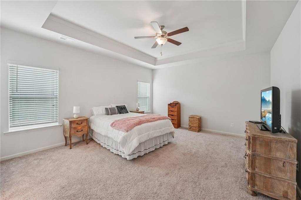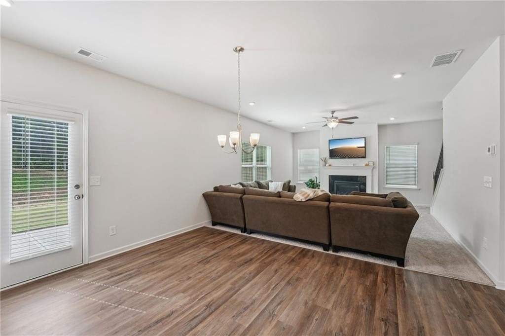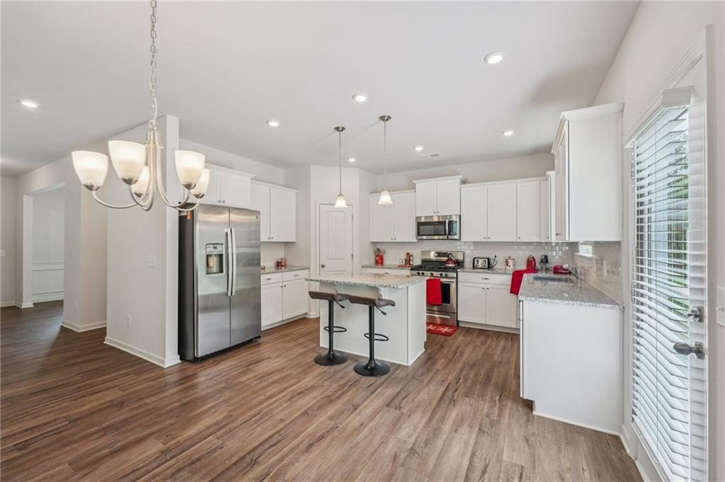 Just like new! 2023 build in the heart of Adairsville. This stunning 4-bedroom, 3-bath home offers the perfect blend of comfort, functionality, and style with trending finishes and thoughtful upgrades throughout. The open-concept main level is designed for both everyday family living and neighborhood entertaining, featuring luxury vinyl plank (LVP) flooring in the main living areas, and an abundance of natural light. The Family room features a view of the kitchen, an abundance of windows, a gas log fireplace and plenty of room for a large sectional. Included on the main level, is a spacious 4th Bedroom with walk-in closet—ideal for guests or multi-generational living. The gorgeous Kitchen is a true showstopper with a large center island, 5-burner gas range, and modern white custom cabinetry that combines beauty with functionality. Upstairs, the oversized Primary Suite is a true retreat, offering an oversized bedroom with space for a sitting area, huge walk-in closet, separate soaking tub and shower, double vanity, and private water closet. The Laundry Room is connected to the Primary Suite while providing convenient accessibility via hallway to the Secondary Bedrooms too. Upstairs you will also find a loft flex space for a play area, homework desk space, or a game room. Also upstairs, in addition to the primary bedroom you will find 2 additional bedrooms with walk-in closets. Step outside to enjoy the home’s premium lot that backs up to acres of trees. You will enjoy the private and level backyard with large patio, ideal for play, pets, entertaining and relaxing weekends. 2-car garage, level driveway and one step into the Kitchen level. The prestigious Aubrey Park community is close to great schools and shopping with an emphasis on safe neighborhood living. This home checks every box for your family!