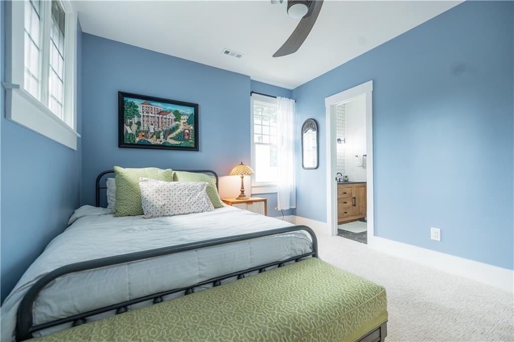 Gorgeous, light-filled 1920s Craftsman bungalow—fully expanded and meticulously renovated in 2022. This breathtaking home sits in the heart of Poncey-Highland, just steps from Freedom Park and within easy reach of Ponce City Market, the BeltLine, Inman Park, and historic Manuel’s Tavern. Convenient to Downtown, Midtown, and all major interstates, this spacious yet charming residence truly has it all—retaining its 1920s character while offering every modern Smart Home convenience. Designed with flexibility in mind, the floorplan easily accommodates multi-generational living with two primary suites and generous open living spaces. Every detail has been thoughtfully curated—from exquisitely renovated kitchen and baths to newer flooring, windows, doors, systems, and roof. Custom recessed lighting, Restoration Hardware fixtures, and Lutron controls complete the picture (full list of upgrades available). Main Floor Highlights: • Inviting front yard and classic rocking-chair front porch • Bright formal living room with glass French doors, sidelights, and a gas fireplace • Corner office with built-ins and four multi-light windows • Elegant formal dining room surrounded by original windows, open to both the living room and kitchen • Stunning butler’s pantry with Zephyr wine and beverage coolers • Gourmet kitchen featuring dark-stained cabinetry, brick accents, sleek dark quartz counters, and new Thermador® stainless appliances—including oversized refrigerator/freezer, gas cooktop with vent hood, dishwasher, and double wall ovens (one convection, one microwave). A massive island with statement pendants, Waterstone farm sink, and premium faucet anchors the space, opening seamlessly to the family room • Comfortable family room with built-ins and a second gas fireplace, opening to the kitchen and a large deck overlooking the private backyard • Beautiful powder room with custom iron bowl sink, brick, and tile accents • Spacious and bright main-level primary suite featuring two custom closets, ceiling fan, French doors to the deck, and a fully tiled bath with dual quartz-topped vanities, freestanding soaking tub, and oversized walk-in shower for two. Upstairs: • Second primary suite with large windows, double closets, and a fully tiled bath with quartz double vanity, expansive walk-in shower, and private water closet • Two additional guest bedrooms sharing a stylish Jack-and-Jill bath with period tile, dual quartz vanity, and tiled tub/shower combination • Bright and versatile bonus living or media space • Generous laundry room with space for side-by-side washer/dryer, utility sink, extra storage, and hanging area. Additional Features: • 1,100 sq. ft. bonus basement (pre-plumbed for a bath and easily finished) • Gated parking for multiple vehicles • Fully fenced and landscaped backyard with irrigation system • High-efficiency spray insulation • All new electrical and plumbing throughout (2022 renovation) • Abundant storage. An exceptional, walkable location close to Ponce City Market, Freedom Park, and Inman Park—combining timeless craftsmanship with thoughtful modern updates.