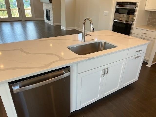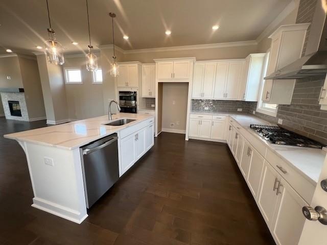 The main level embraces open-concept living, with oversized windows that let natural light pour in, creating an airy and inviting atmosphere. The spacious family room flows effortlessly to a classic Charleston-inspired front porch, ideal for evening conversations or morning relaxation. Toward the rear, a chef-style kitchen takes center stage with 42” soft-close cabinets, quartz countertops, under-cabinet lighting, and premium stainless steel appliances. The adjacent dining space opens to a covered back deck—perfect for outdoor meals or a quiet evening overlooking the landscaped backyard.