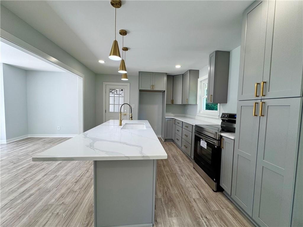 The main level of this home is a fabulous space to entertain, it's inviting cozy and open concept. The beautifull kitchen and dining area are both open to the living room. The Isla with New quartz countertops with special stone sink is perfect and envolps a unique atmosphere.