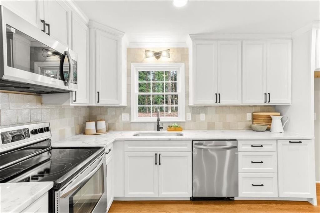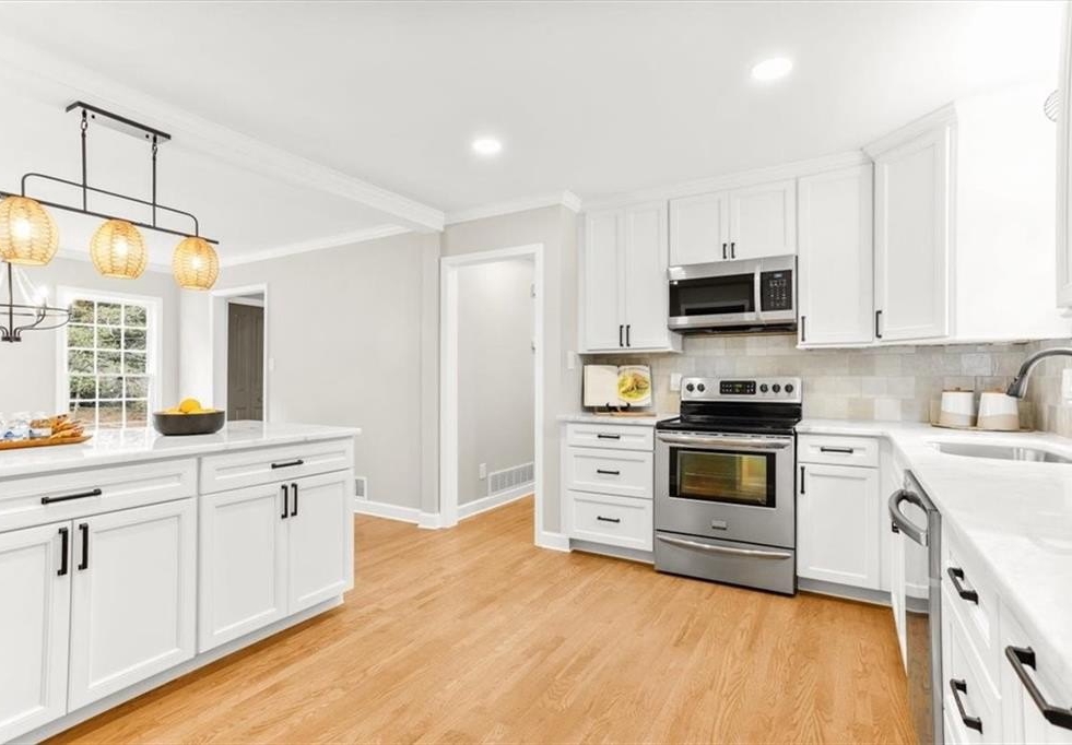 This home is a showstopper!!!! Completely renovated from top to bottom, this East Cobb beauty blends timeless design with modern function. Featuring a stunning custom kitchen with marble countertops, white subway tile backsplash, stainless steel appliances spacious bedrooms, fully remodeled baths, and every detail has been thoughtfully curated.