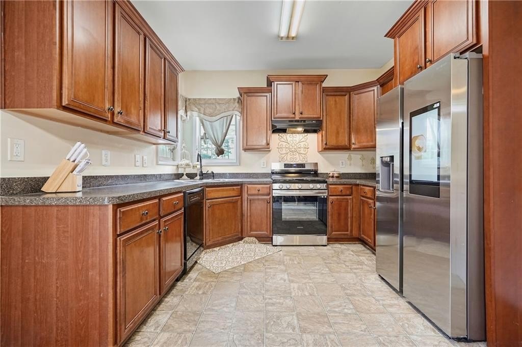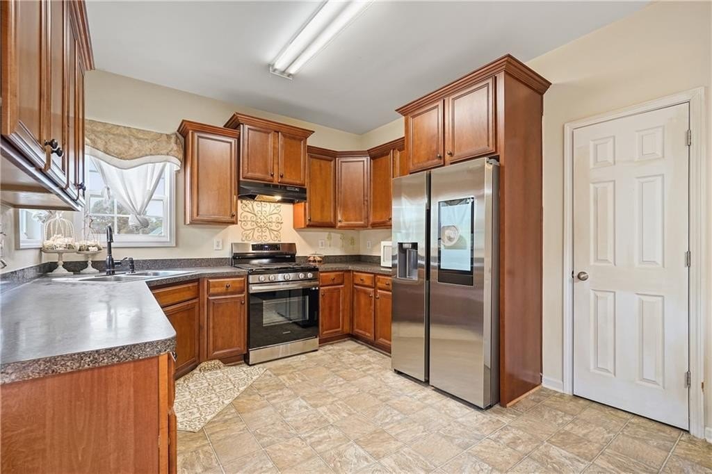 Timeless design meets everyday comfort. Nestled on nearly two-thirds of an acre, this residence offers a serene setting close to Lake Allatoona, with effortless access to shopping, dining, and entertainment; an ideal blend of tranquility and convenience. Step inside and discover vaulted ceilings that crown the spacious fireside family room, anchored by a charming brick hearth that instantly feels like home. The open-concept kitchen overlooks the family room, creating the perfect space for gathering and entertaining, and features stainless-steel appliances and ample cabinetry for both style and function. Retreat to the owner’s suite, a peaceful haven showcasing double tray ceilings and an elegant en-suite bath with ceramic tile flooring, a soaking tub, a separate shower, dual vanities, and a generous walk-in closet. The unfinished basement offers endless potential to expand your living space, create a home gym, recreation room, home office, media room, or guest suite to fit your lifestyle needs. Step outside to the rear deck, where you can relax or entertain while overlooking the private, level, and wooded backyard—a true outdoor sanctuary. With its combination of classic charm, modern livability, and expansion potential, this home delivers everything today’s buyers desire in a prime location near one of North Georgia’s premier lakes and destinations. Special Note: Seller to offer a paint allowance for buyer with acceptable offer.