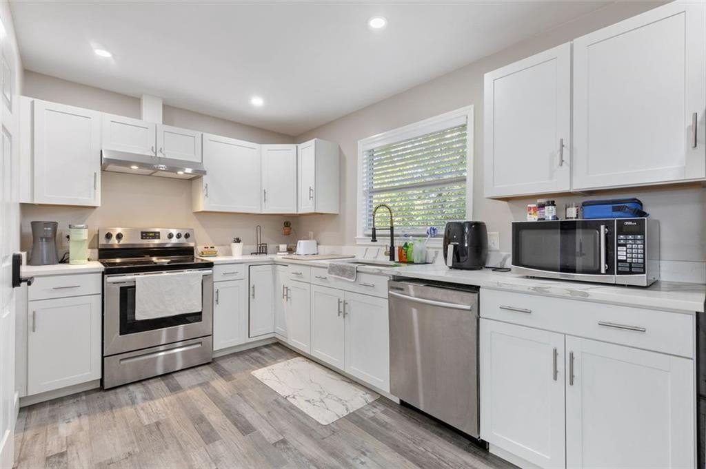 RARE FIND TWO HOMES IN ONE, JUST STEPS FROM LAKE LANIER! Fully renovated top to bottom, this property offers 2 separate living spaces perfect for multi-generational living, rental income, or Airbnb. Upper level features 3 beds, 2 baths, kitchen, laundry, living & dining. Lower level has 2 beds, 1.5 baths, 2 living areas, full kitchen, laundry & private entry. Both levels have new appliances, quartz counters, modern finishes & separate laundry rooms. New deck, flooring, lighting, paint & more. Minutes from marinas, parks, shopping & medical. Live in one, rent the other! Must see!