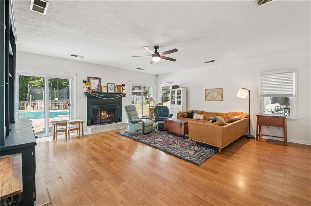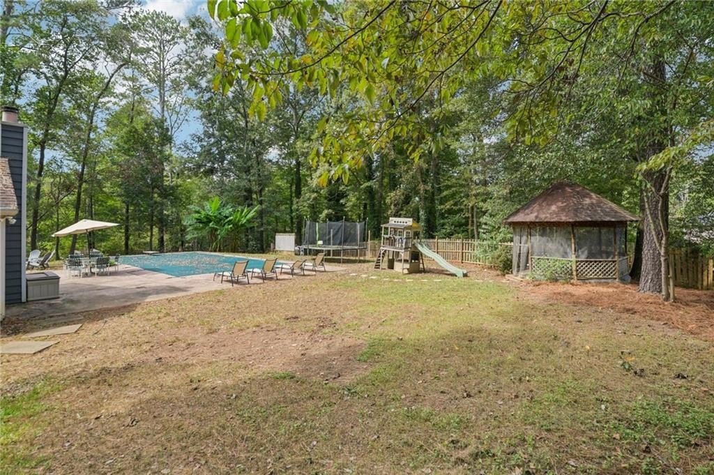 Beautifully Updated 3-bedroom, 2-bath home featuring an in-ground saltwater pool. Walk through the front door to be welcomed by an entry foyer with original parquet flooring and a bonus room perfect for an office or playroom. The remodeled kitchen offers recently updated modern appliances, a large island with breakfast bar, and plenty of storage. Newly added, bright living room overlooks the pool and includes a cozy fireplace. Upstairs find the primary suite and 2 spacious secondary bedrooms. The backyard is a dream with a beautiful salt water pool that has had all systems recently updated, a patio and gazebo perfect for entertaining. HVAC, furnace and and water all replaced within the past few years. Located on a quiet street that dead-ends at the Lilburn Greenway Trail, with easy access to downtown Lilburn’s park, splash pad, shops, restaurants, and music venue.