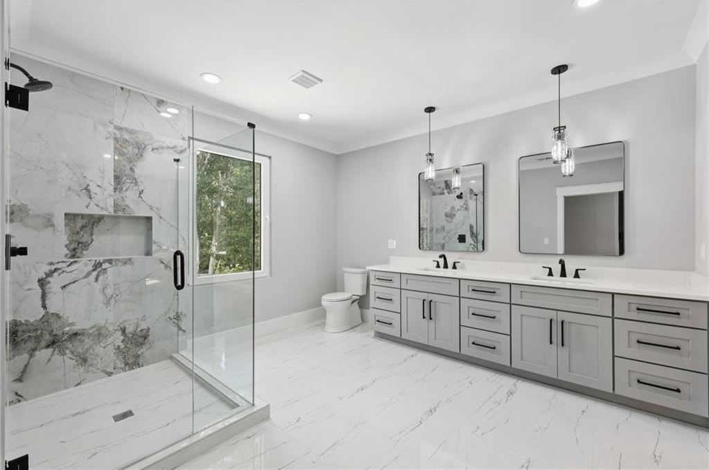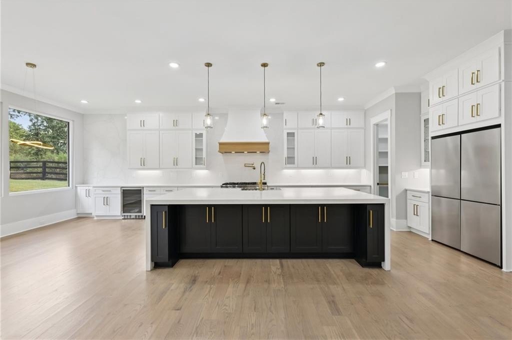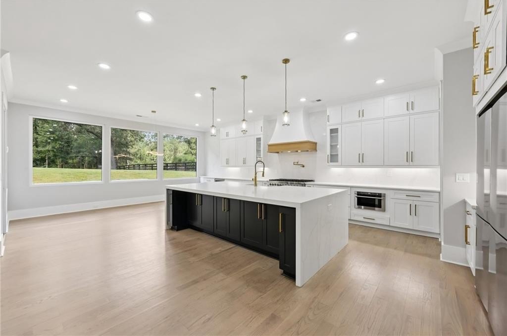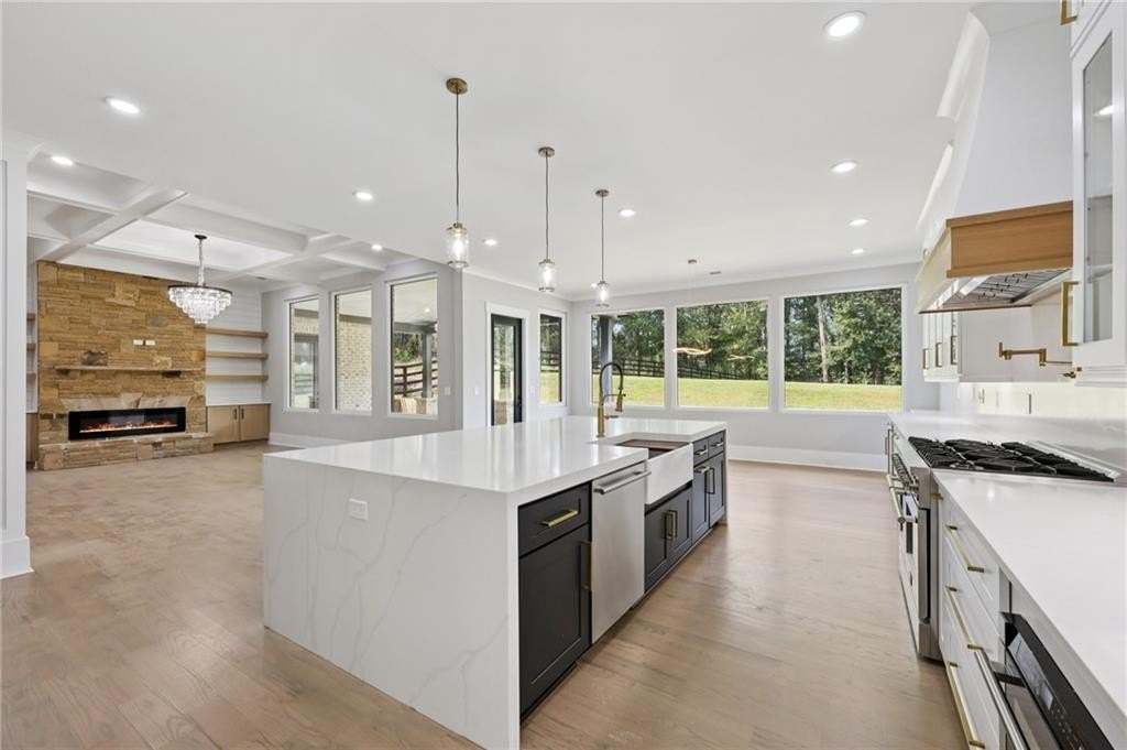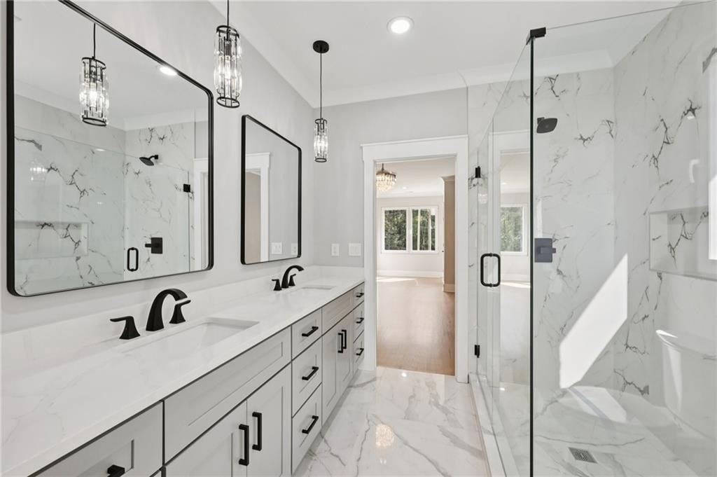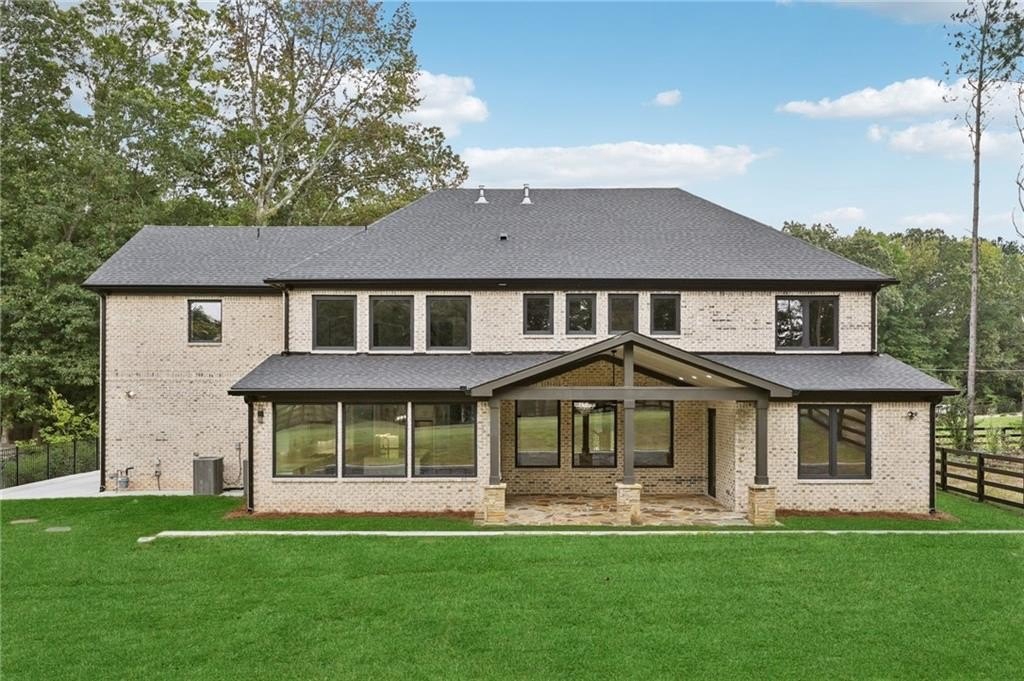 Welcome to this stunning custom-built brick estate situated on a fully fenced and privately gated 0.68 acre lot, offering the perfect blend of privacy, luxury, and convenience. Featuring 5 bedrooms and 5.5 bathrooms, this home delivers exceptional craftsmanship and thoughtful design throughout. A grand double-door entrance welcomes you into a soaring 22-foot foyer that sets the tone for the impressive interior. True cherry hardwood flooring spans the main level, while imported European windows bathe the home in natural light. Ten-foot ceilings add volume and elegance to the open-concept layout. The main floor features a private office with custom built-in shelving, ideal for working from home or managing household affairs. A convenient half bathroom serves guests with ease. The spacious living room showcases a beautiful fireplace with custom built-ins and opens seamlessly to the gourmet chef’s kitchen, fully equipped with a 48-inch stainless gas range with double ovens, 48-inch refrigerator, vented hood, microwave drawer, farmhouse sink, and a double quartz waterfall island. A dry bar with beverage refrigerator and large walk-in pantry offer additional luxury and function. The primary suite on the main level offers a peaceful retreat with a spa-inspired en-suite featuring a frameless glass shower, soaking tub, designer tilework, and an expansive walk-in closet. A large laundry room with sink, a well-appointed mudroom, and epoxy-coated garage floors complete the main level. Upstairs, you’ll find four generous secondary bedrooms. Two serve as junior primary suites with private en-suite bathrooms and walk-in closets, while the remaining two are connected by a Jack and Jill bathroom, each also with walk-in closets. A secondary living room with fireplace offers the perfect media, play, or lounge space. Step outside to the covered flagstone patio overlooking a level private backyard, ideal for an outdoor oasis or future pool. The home is pre-wired for exterior security, equipped with a central vacuum system, and includes a tankless hot water heater for energy efficiency and endless hot water. Prime location just minutes from Highway 316, Interstate 85, Downtown Lawrenceville, the Mall of Georgia, and Gwinnett Exchange for shopping, dining, and entertainment.