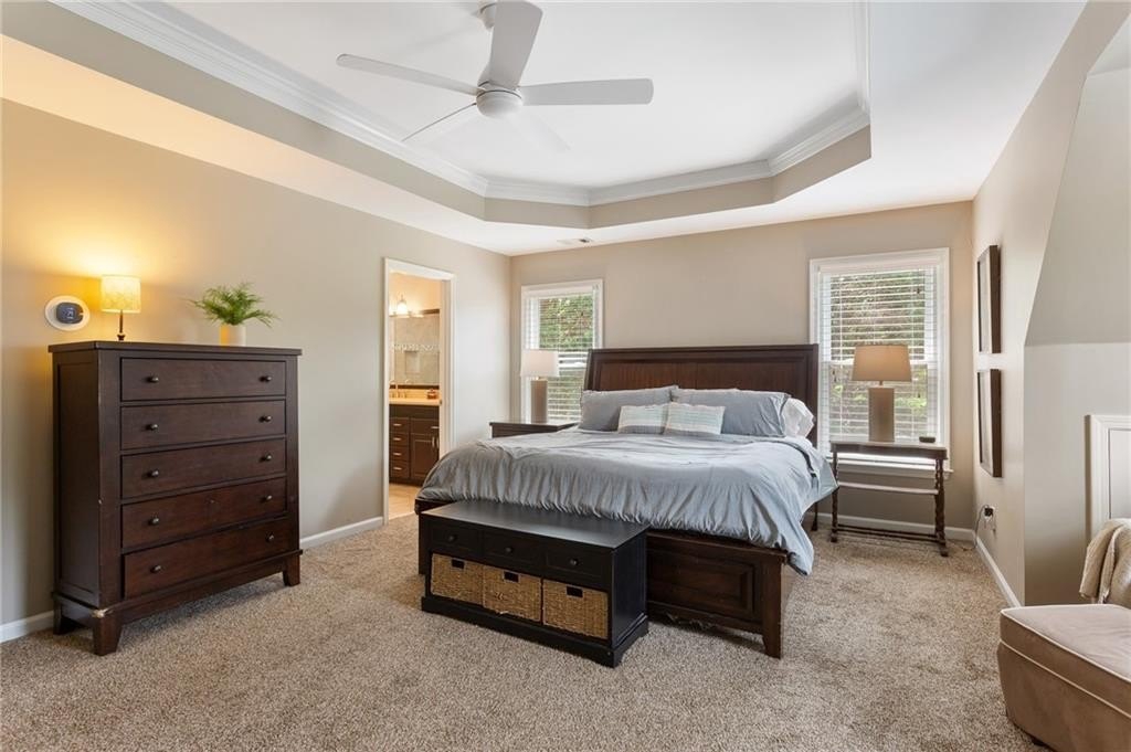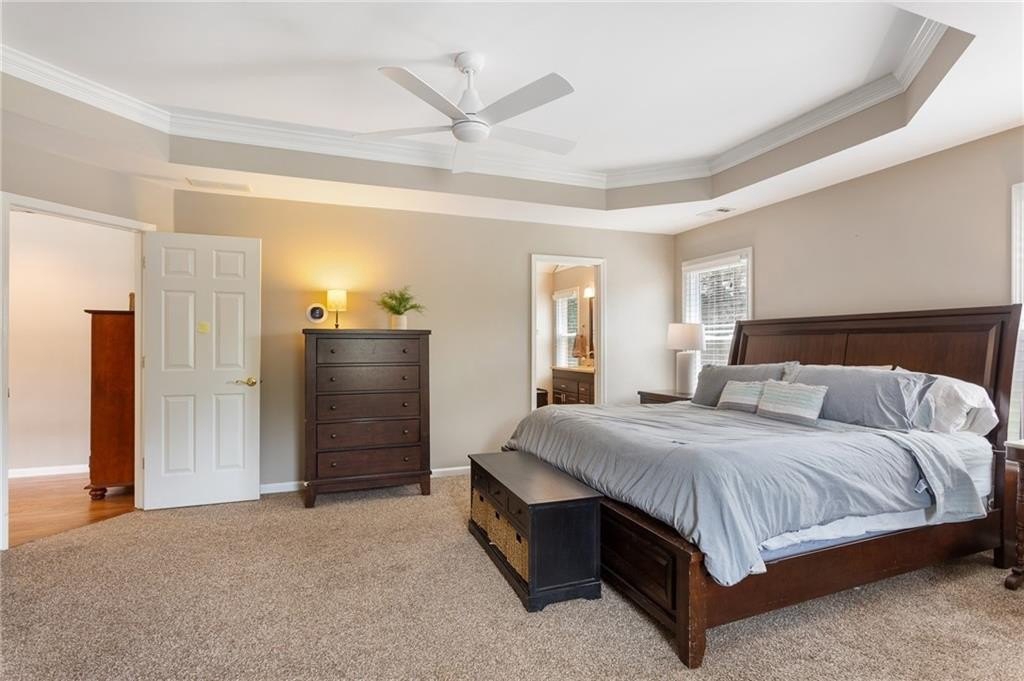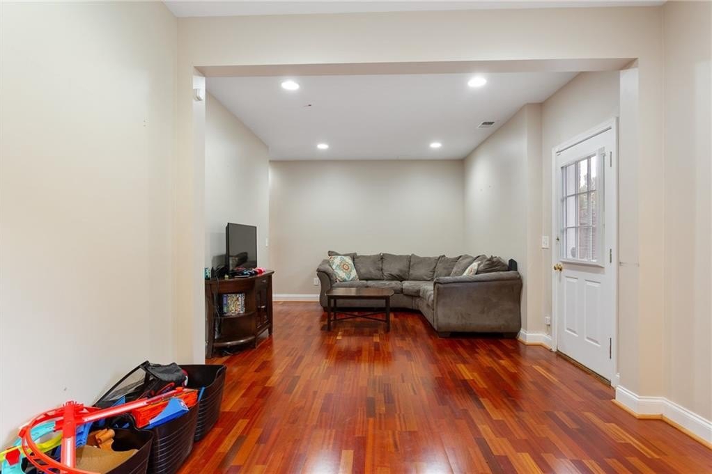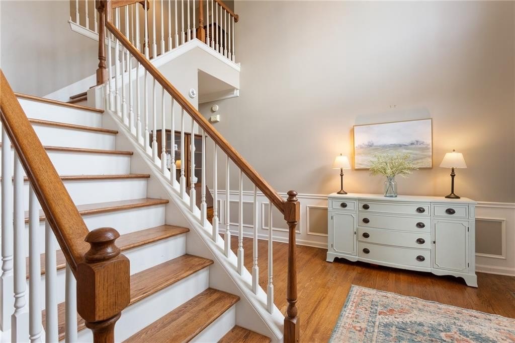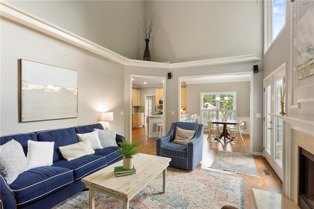 Welcome to 4059 Vinings Mill Trail – Located in the Sought-After Olde Vinings Mill Community. This beautiful, 5-bedroom, 3.5-bath home sits on a premium corner lot with stunning curb appeal, is just steps from community amenities including a pool, playground, and tennis courts. As you enter, you're welcomed by a two-story foyer and gleaming hardwood floors throughout the main level. The open-concept kitchen features granite countertops, a gas range, custom cabinetry, and an extended island overlooking the breakfast nook and spacious living room. Enjoy natural light from the wall of windows at the rear of the home, offering peaceful views of the lush, garden-style backyard. Additional main floor highlights include a formal dining room and a separate sitting room or flex space. Upstairs, the oversized primary suite includes a cozy reading nook, walk-in closet, and an updated en suite bath with double vanity and walk-in shower. Three additional bedrooms and a full bath offer flexible space for guests, children, or a home office. The fully finished basement is perfect for entertaining, relaxing, or multi-generational living. With a large bedroom, full bath, and walk-out access, it’s ideal for an in-law suite. There's also a generous unfinished storage area. Perched on a gentle hill with a flat driveway, this home is conveniently walkable to Ivy Walk’s shops and restaurants, close to the Silver Comet Trail, and just minutes from I-285 and I-75 for easy commuting. Don't miss this incredible opportunity — schedule your showing today!