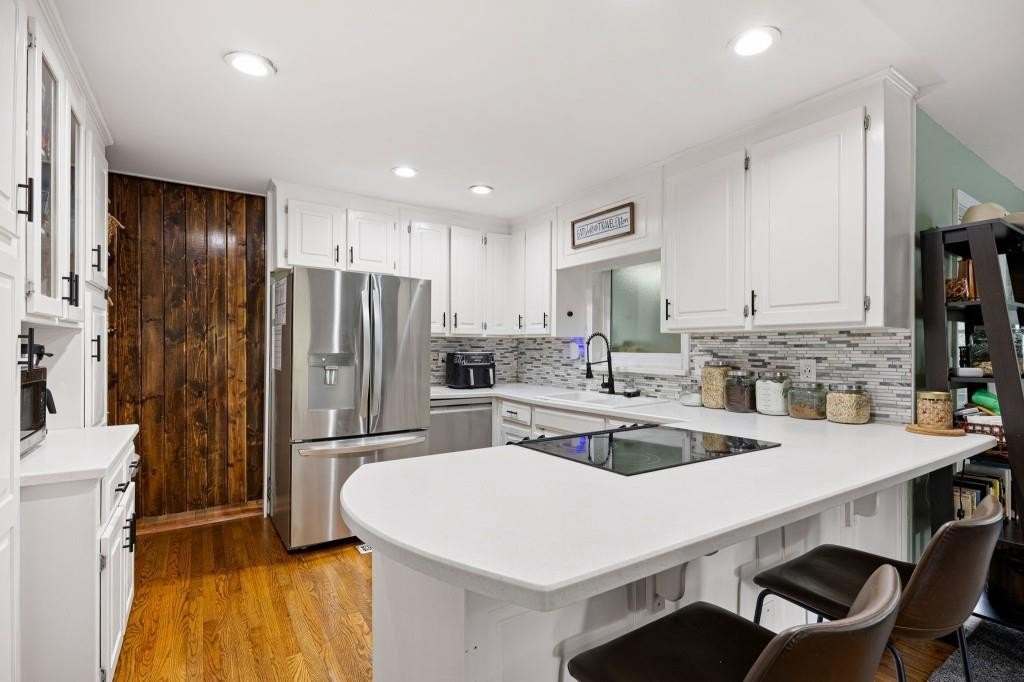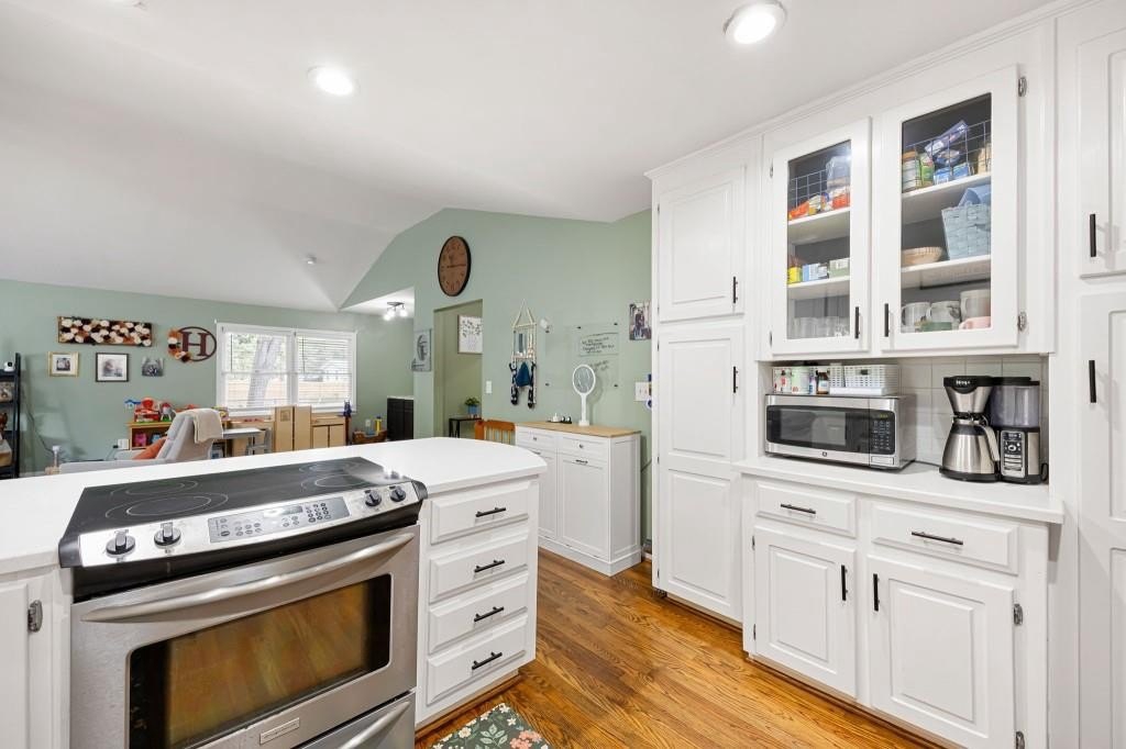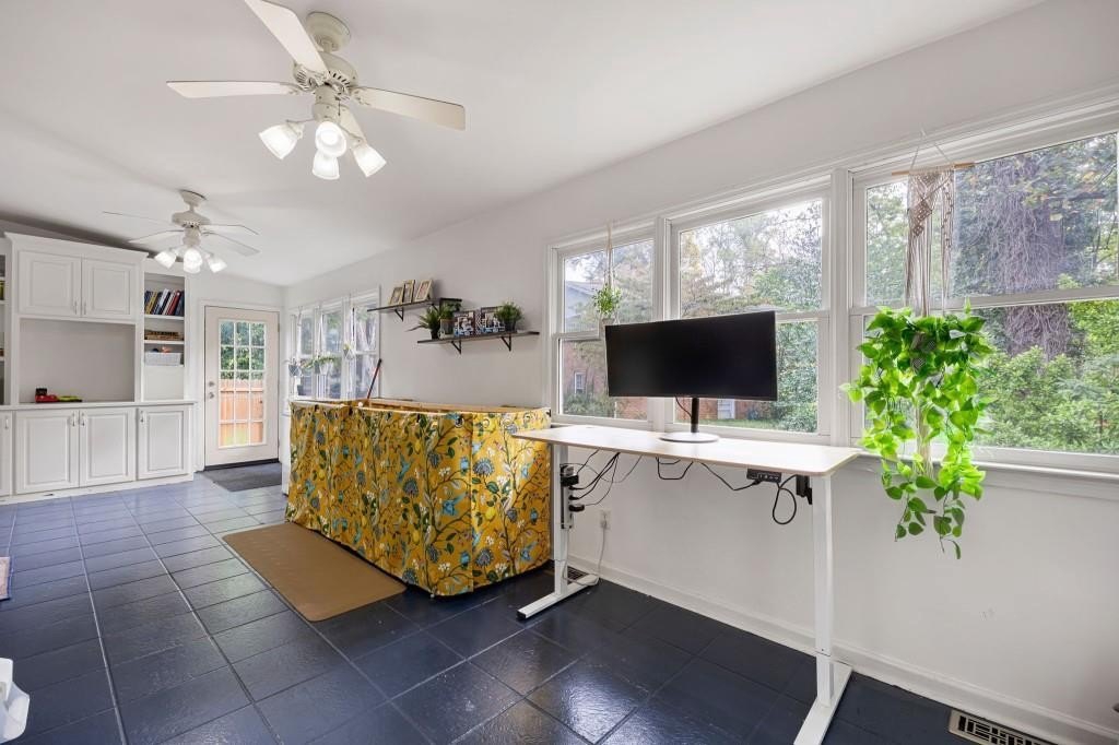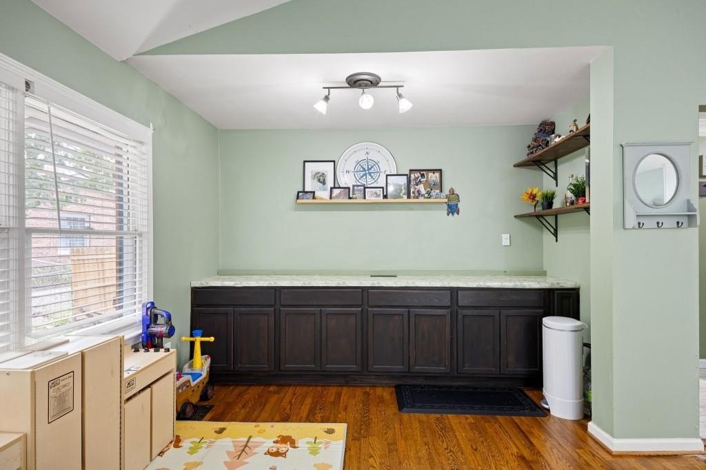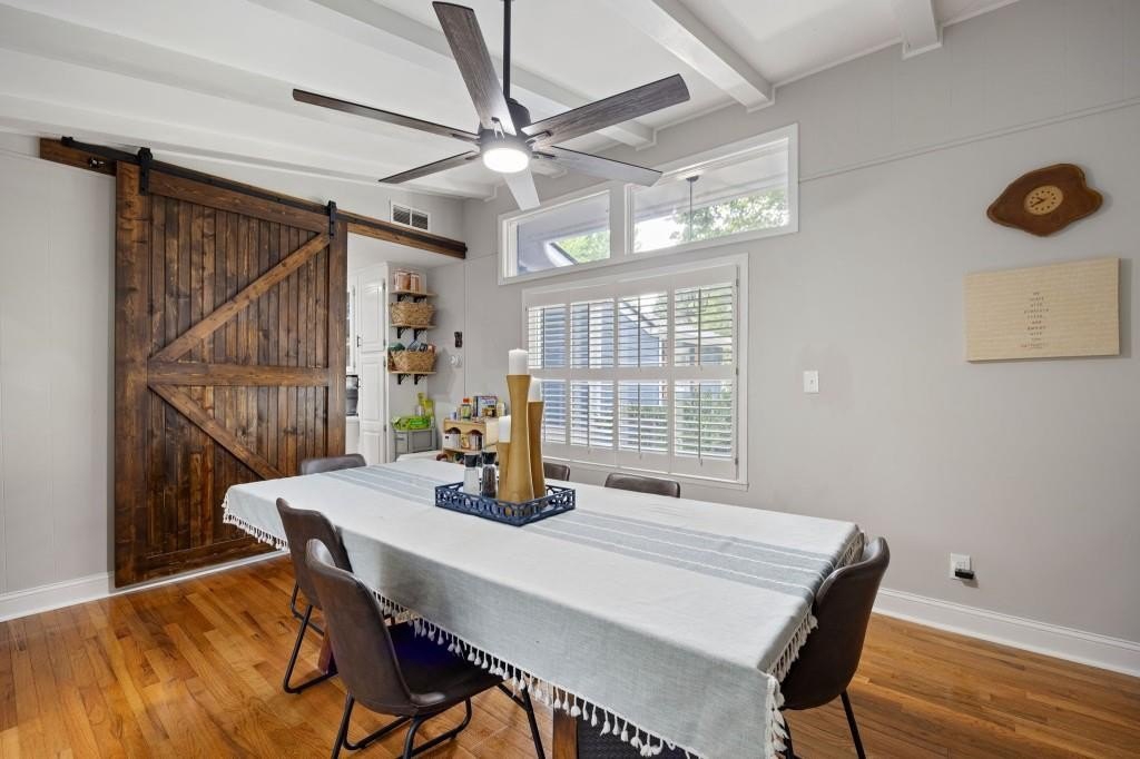 Discover East Cobb ease in the charming Dogwood Park neighborhood! This beautifully maintained ranch blends timeless character with thoughtful updates & an unbeatable location. From the moment you step inside, you'll feel right at home with a welcoming foyer that opens into a oversized family room featuring custom built-in cabinetry, perfect for extra storage or display. The bright, renovated kitchen offers white cabinetry, stylish backsplash, and a hidden barn door leading to a spacious dining room, creating the perfect setting for gatherings or everyday meals. Natural light fills the sunroom, offering a cozy retreat for morning coffee or a quiet reading nook. Down the hall, you'll find well-sized secondary bedrooms and a beautifully renovated hall bath featuring a tiled shower. The primary suite includes a custom built-in closet and an updated ensuite with a double vanity and tiled tub/shower combo, combining functionality with a fresh modern touch. Outside, the fenced yard invites you to unwind or entertain, with brick pavers leading to a charming side patio area. Additional highlights include a 4 year old roof, 5 year old water heater, fresh interior and exterior paint, plantation shutters, updated light fixtures, and a two-car carport with excellent storage space. The landscaped yard and well-cared-for details throughout make this home truly feel loved and move-in ready! Zoned for highly sought-after schools, including Wheeler High - home to the renowned Magnet STEM program - this East Cobb gem offers both everyday comfort and a vibrant lifestyle. Enjoy the best of parks, schools, and convenience with Terrell Mill Park and Cochran Shoals trails just moments away, plus quick access to The Battery & Truist Park, Marietta Square, Smyrna Market Village, East Cobb Avenues, Merchants Walk, and more - all from your charming Dogwood Park retreat!