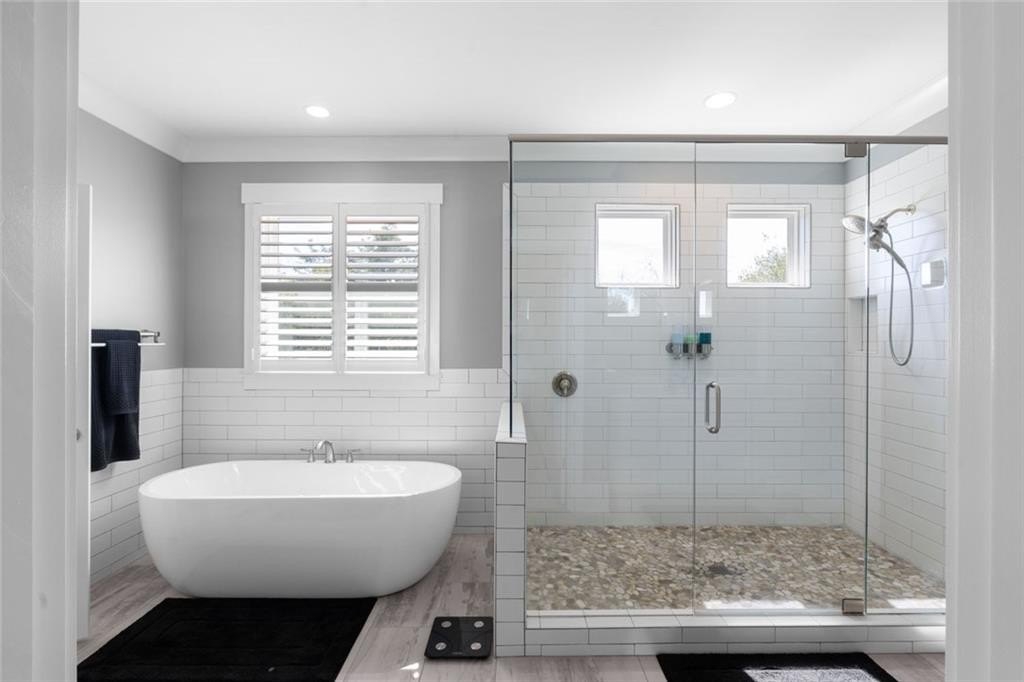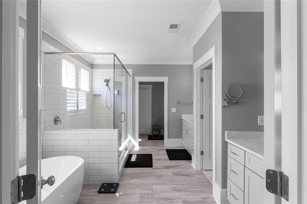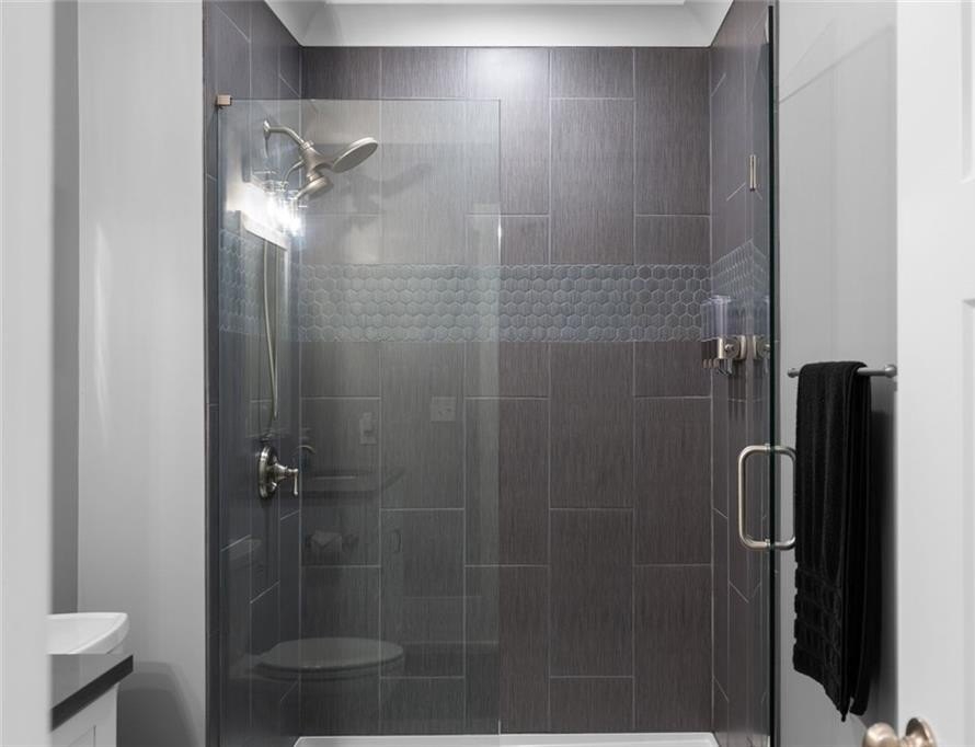 Upstairs, the luxurious owner’s suite is a true retreat featuring a spa-inspired bathroom with a soaking tub, separate frameless glass shower, dual vanities, and a generous walk-in closet. Three additional large secondary bedrooms with ample closet space and two full bathrooms complete the upper level.