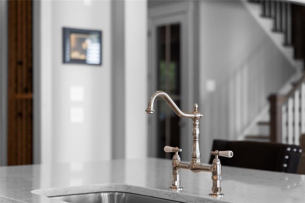 The main floor guest suite, privately located at the rear of the home, provides comfort and convenience for visitors or extended family.
