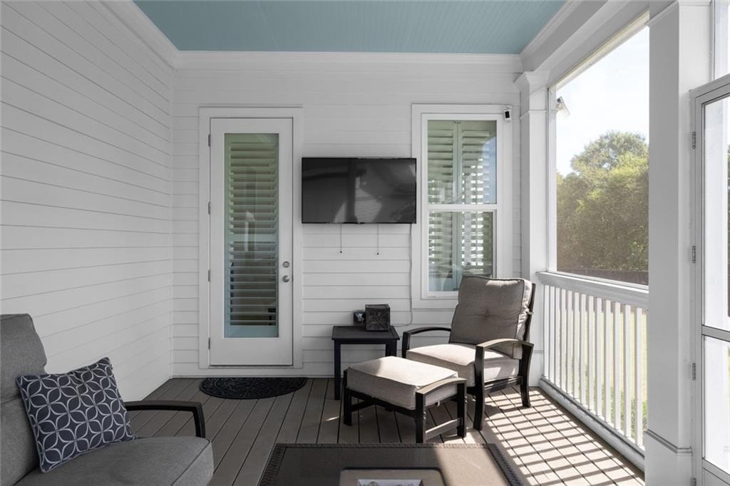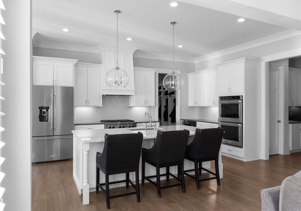 The gourmet chef’s kitchen is the heart of the home, offering custom cabinetry, high-end stainless steel appliances, a large center island with seating, quartz countertops, and a walk-in pantry. The kitchen seamlessly flows into the great room, highlighted by a cozy fireplace and walls of windows that fill the space with natural light. Enjoy indoor-outdoor living on the screened and covered porch, ideal for year-round entertaining.