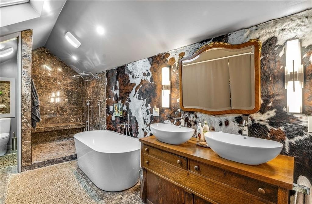Relax outdoors on the 42’ Trex deck or in the 8’x15’ Michael Phelps Swim Spa while taking in winter views of downtown. The expansive, privacy-fenced backyard includes an outdoor shower and pet bath sink.