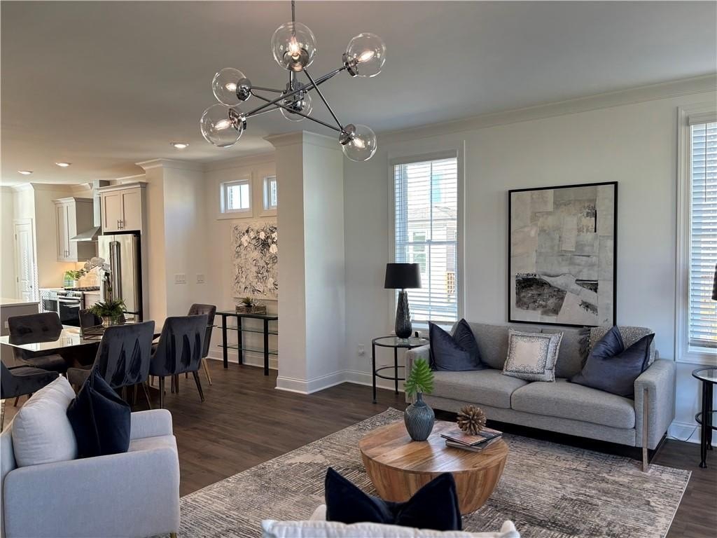 Welcome to your NEW MODEL HOME end unit that offers breathtaking views of Sawnee Mountain and combines thoughtful design with everyday functionality. This WEST facing home has plenty of sunlight. The model has upgraded lighting, tile, countertops, and all of the appliances so it is truly move-in ready! The home can close in December/January and is INVESTOR friendly.