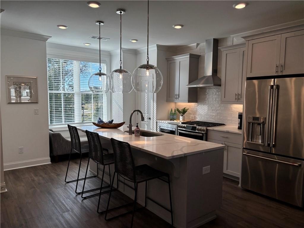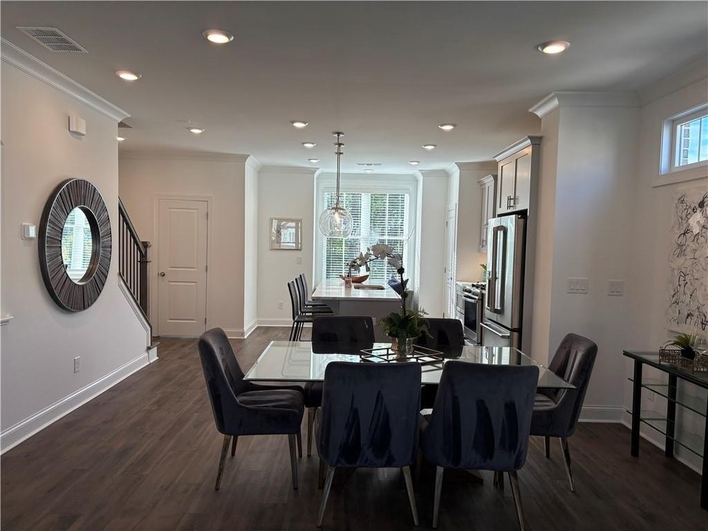 Step inside this spacious three-story townhome, where modern living meets elegant style. The terrace level features a private bedroom and full bath, ideal for guests, a home office, or flex space. On the main level, you'll find an open-concept layout with 9-foot ceilings, a gourmet kitchen with a large island, and a seamless flow into the dining and family room, highlighted by a beautiful fireplace. The space has natural light, and the large deck is perfect for sipping your morning coffee or enjoying sunset views.